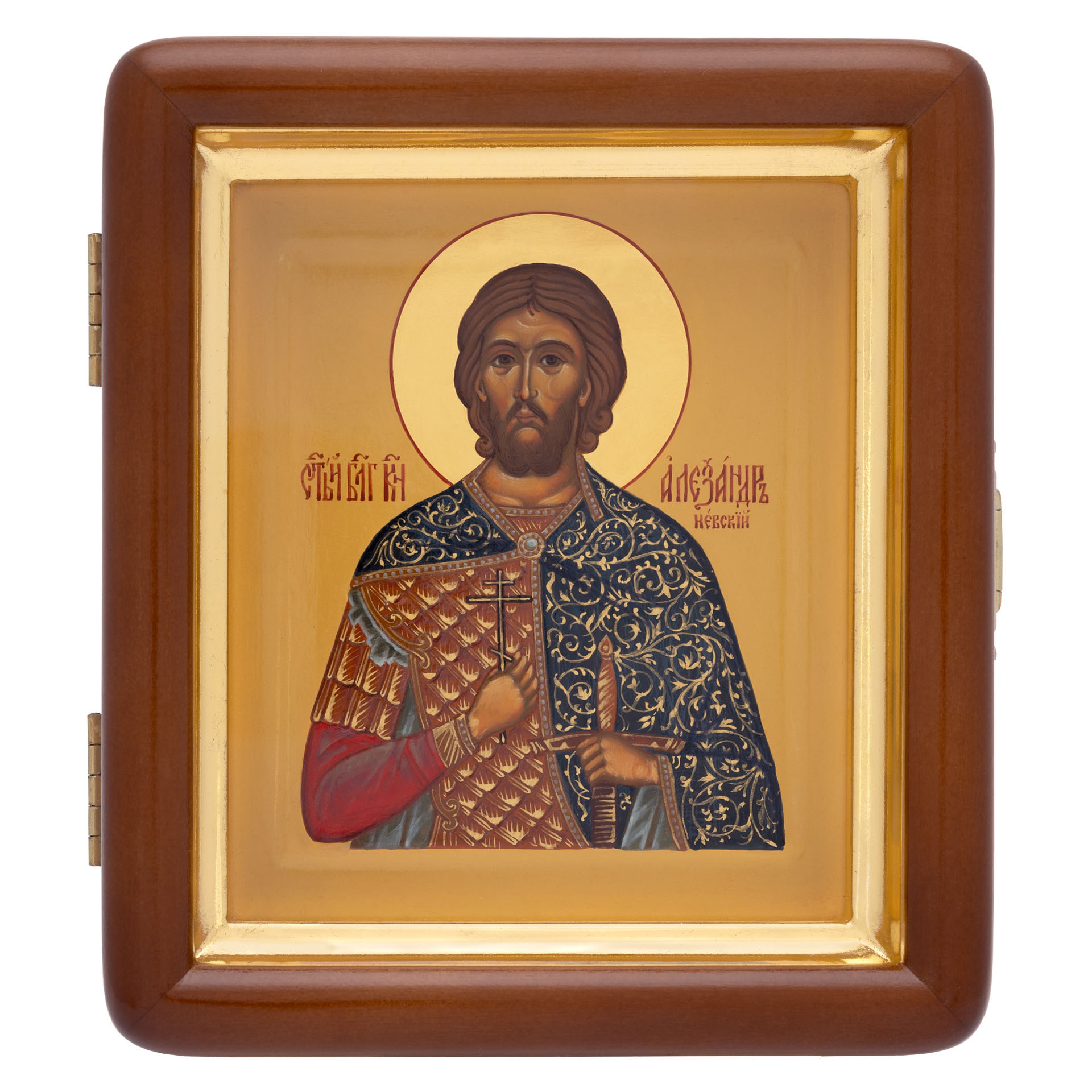 Икона живописная на доске в киоте 11х13 темпера, золоченый нимб, ковчег, киот №1 Александр Невский, 01541