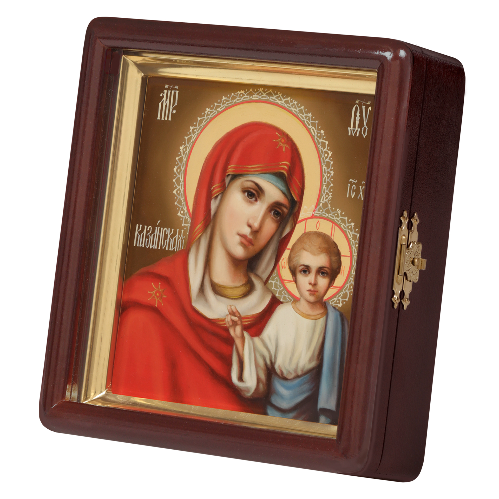 Икона живописная на доске в киоте 13х15 масло, киот №1 Казанская БМ, 05644