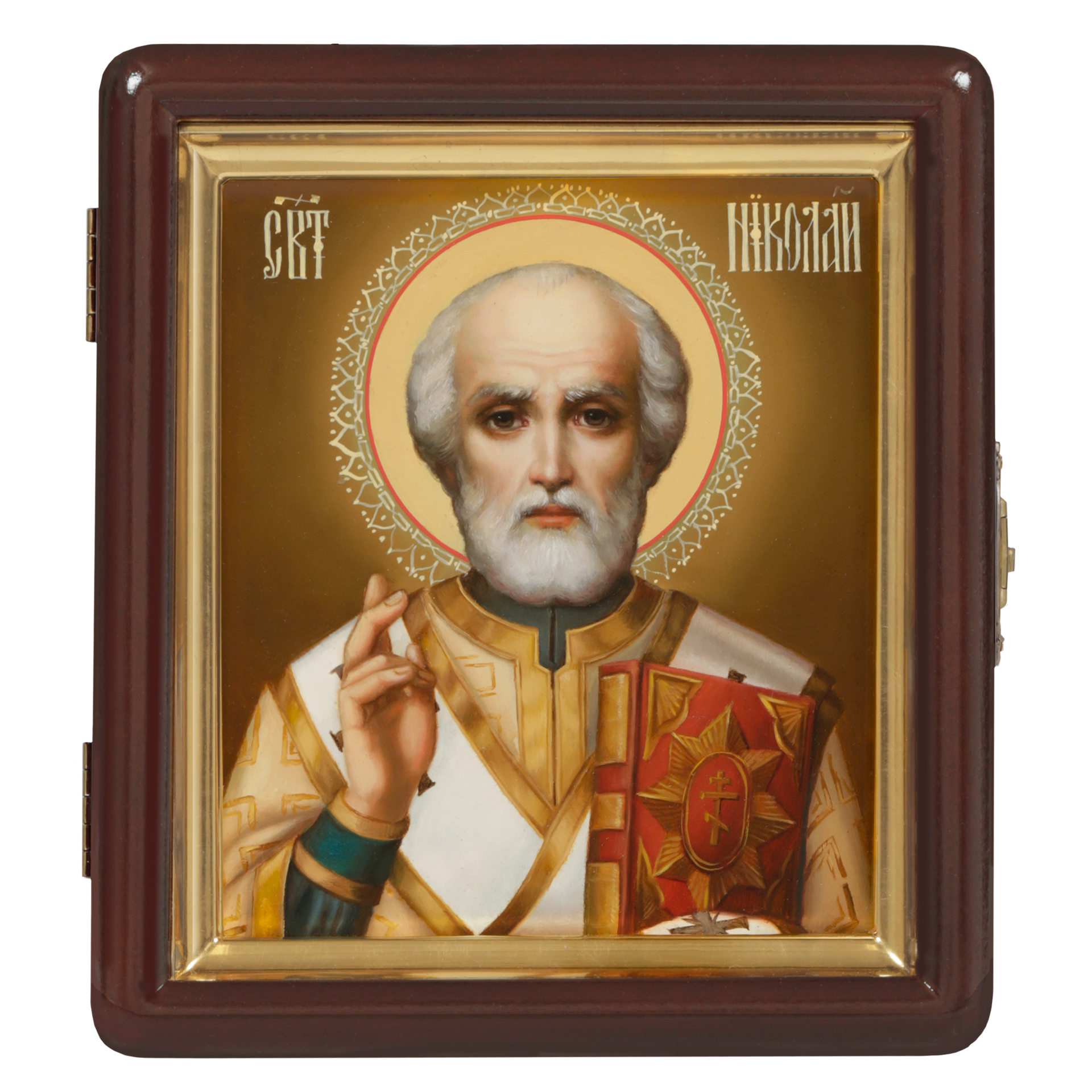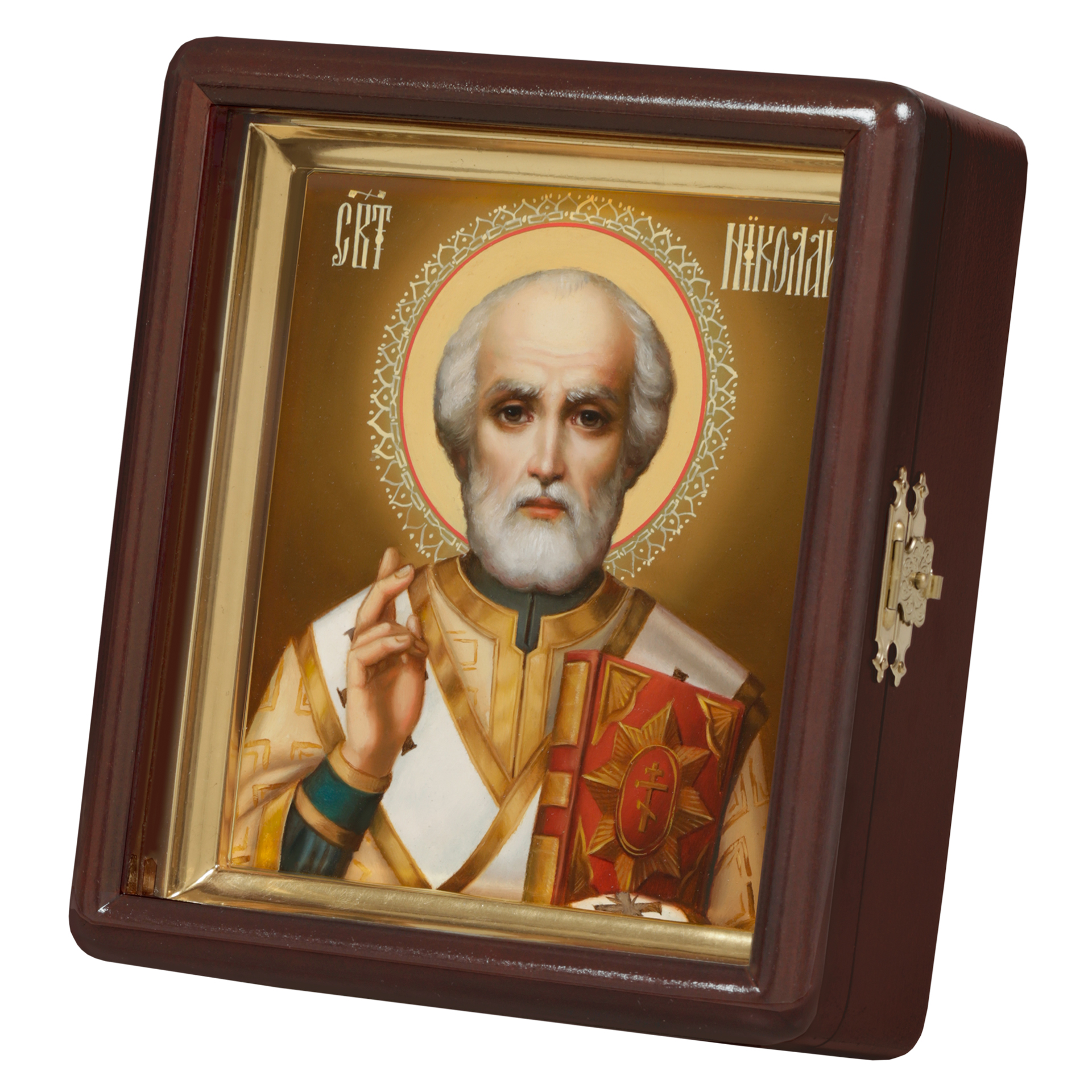 Икона живописная на доске в киоте 13х15 масло, киот №1 Николай Чудотворец, 05645