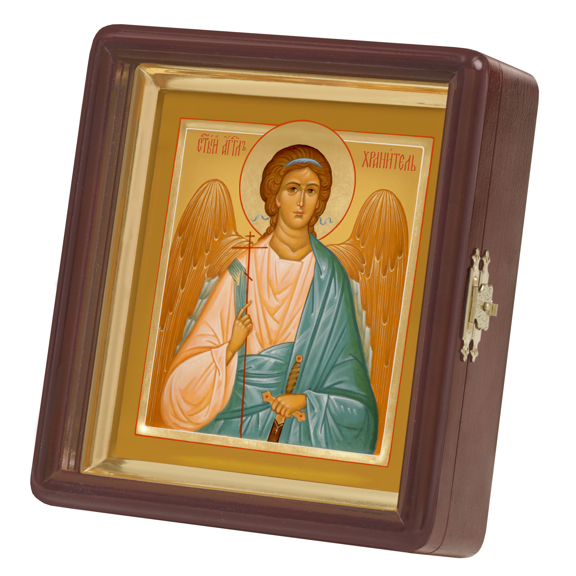 Икона живописная на доске в киоте 13х15 темпера, золоченый нимб, ковчег, киот №1 Ангел Хранитель, 05594