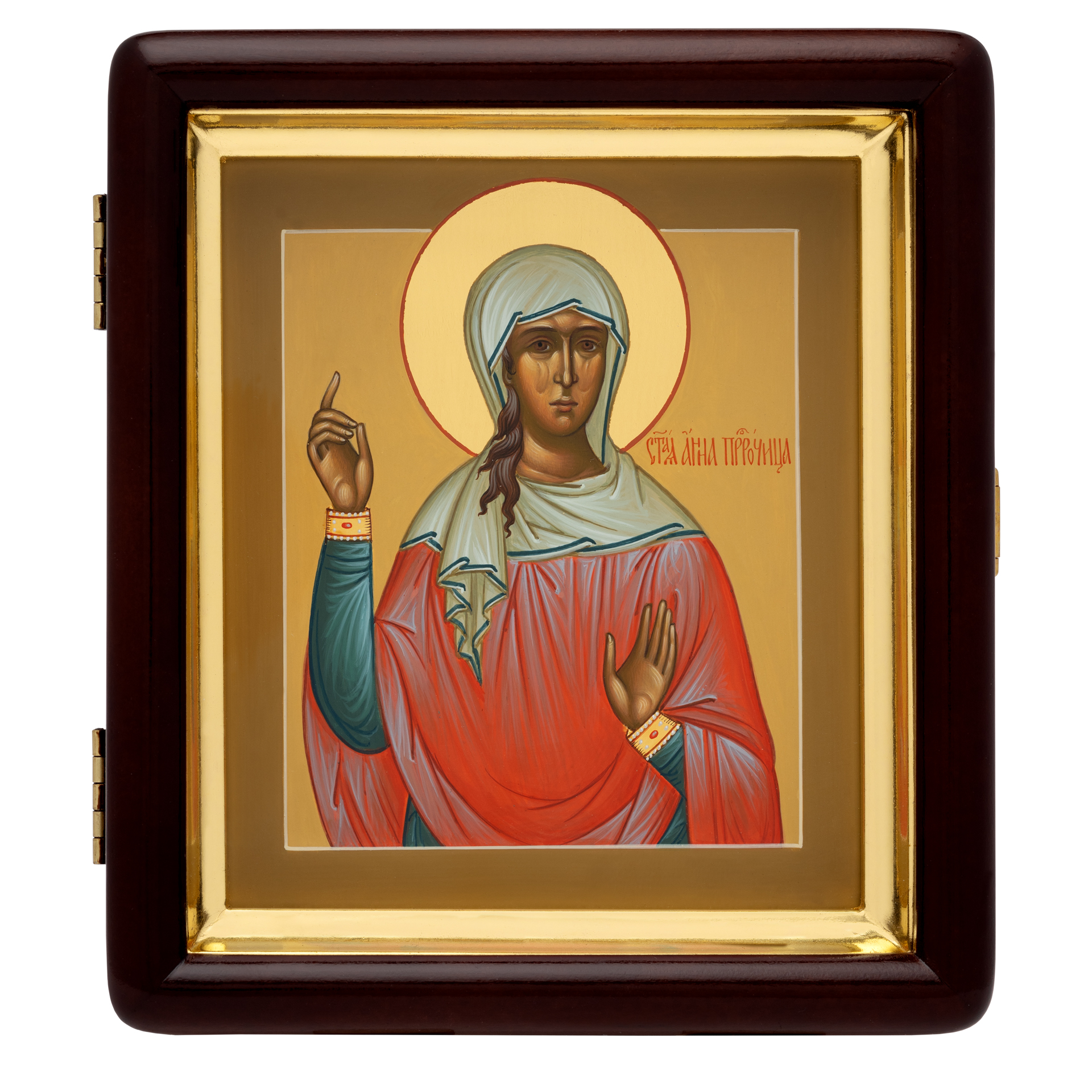 Икона живописная на доске в киоте 13х15 темпера, золоченый нимб, ковчег, киот №1 Анна Пророчица, 03924