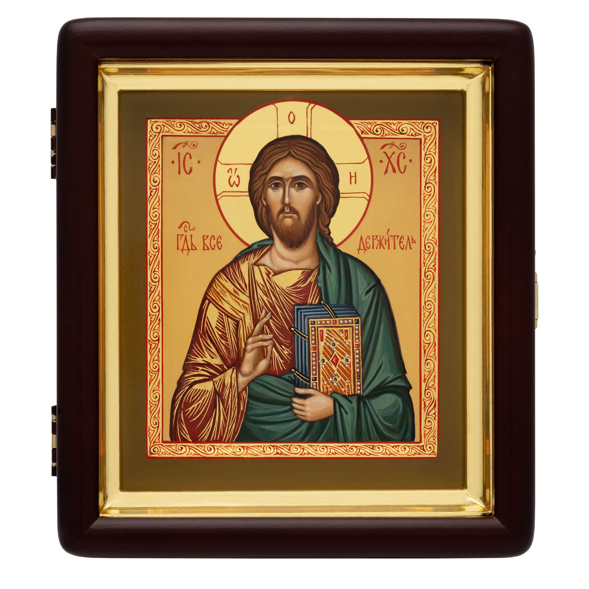 Икона живописная на доске в киоте 13х15 темпера, золоченый нимб, ковчег, киот №1 Спаситель, 02604