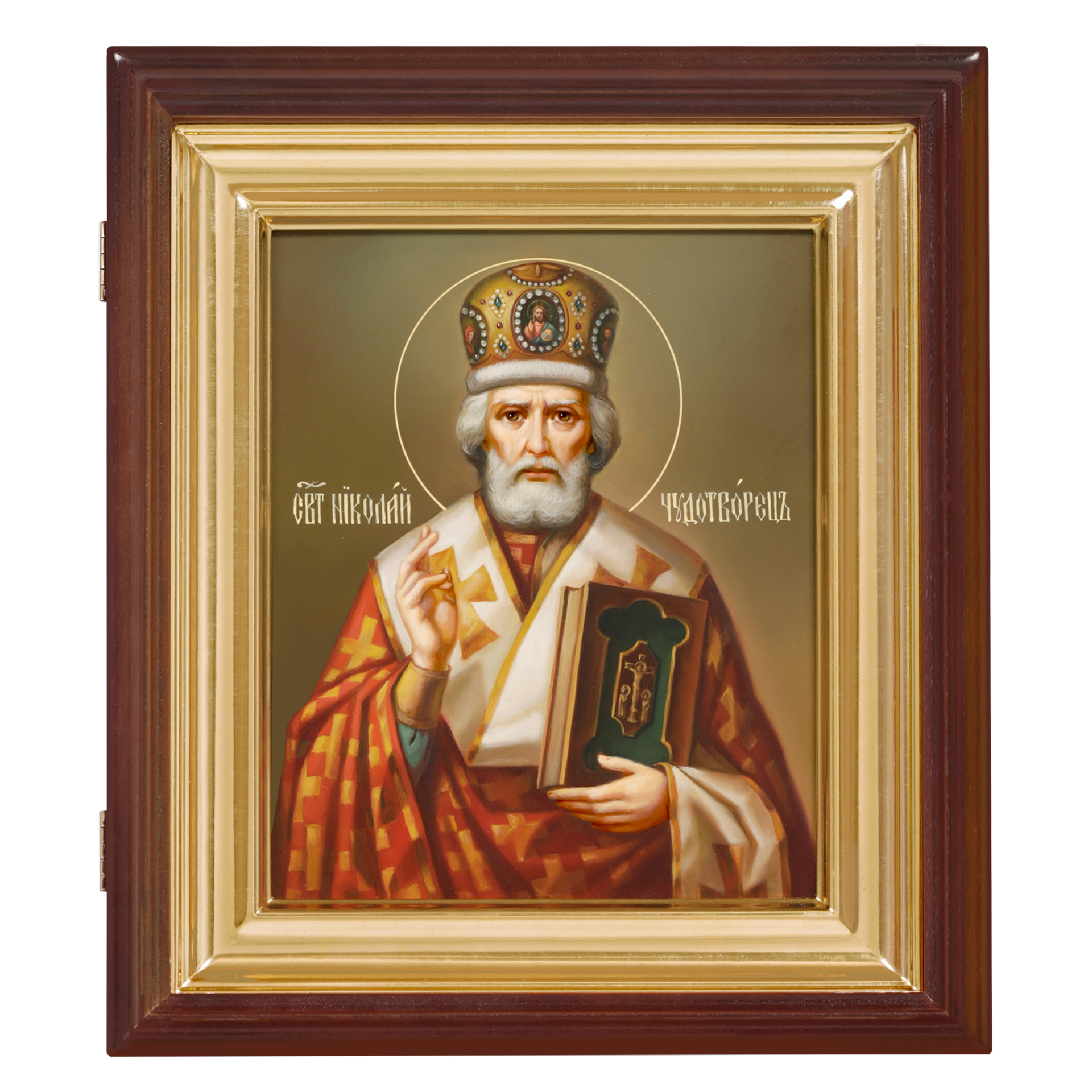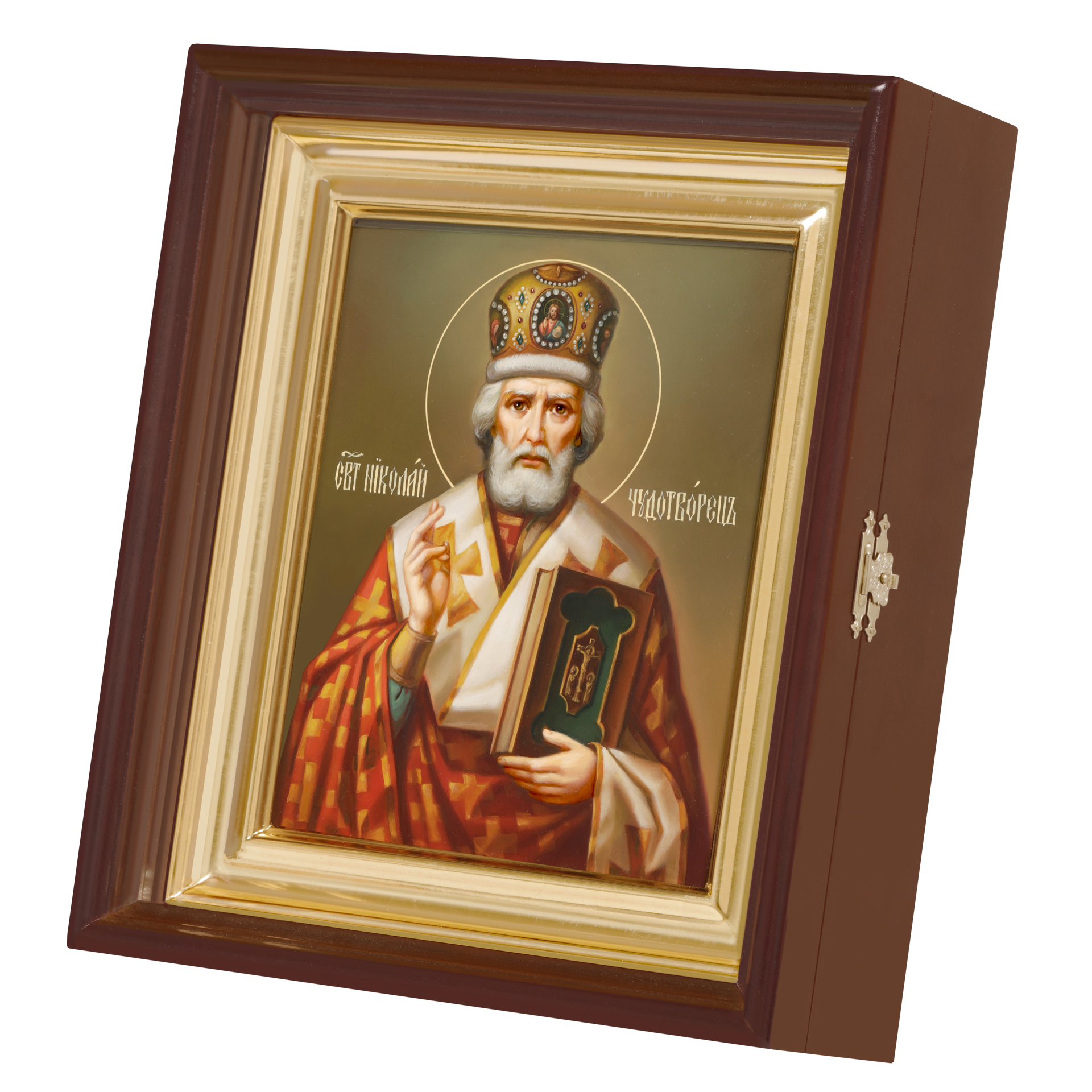 Икона живописная на доске в киоте 18х24 масло, киот №1 Николай Чудотворец, 05222