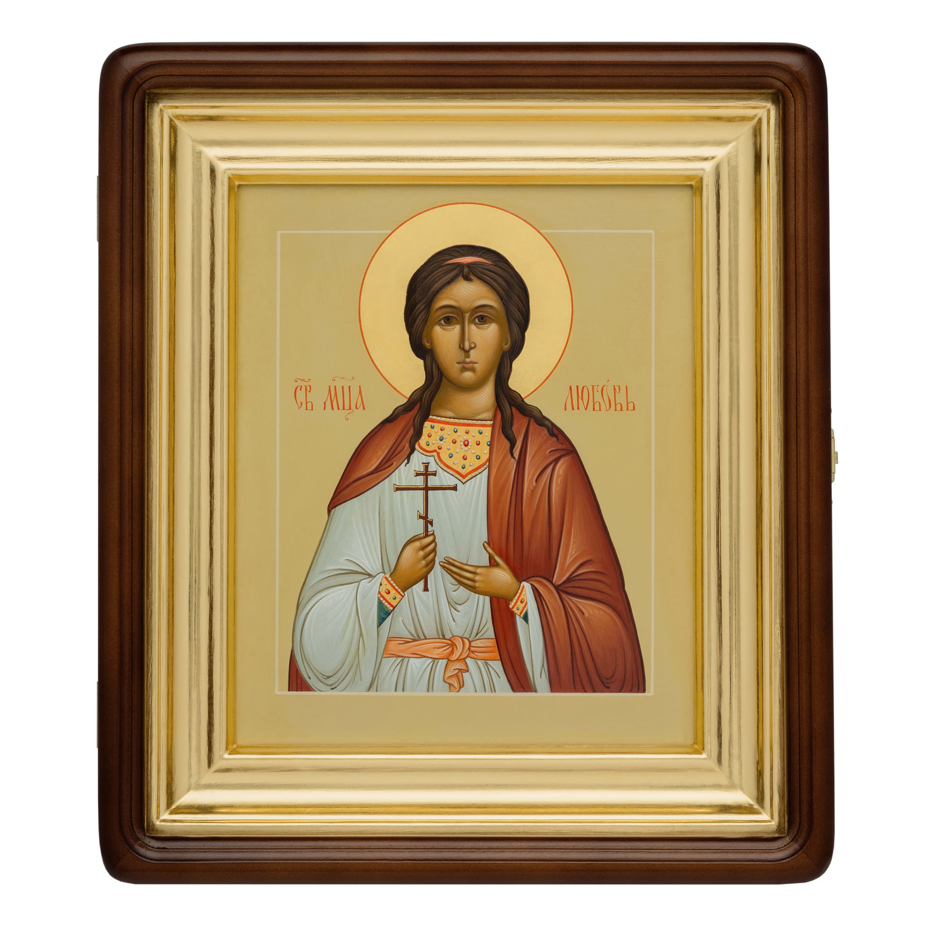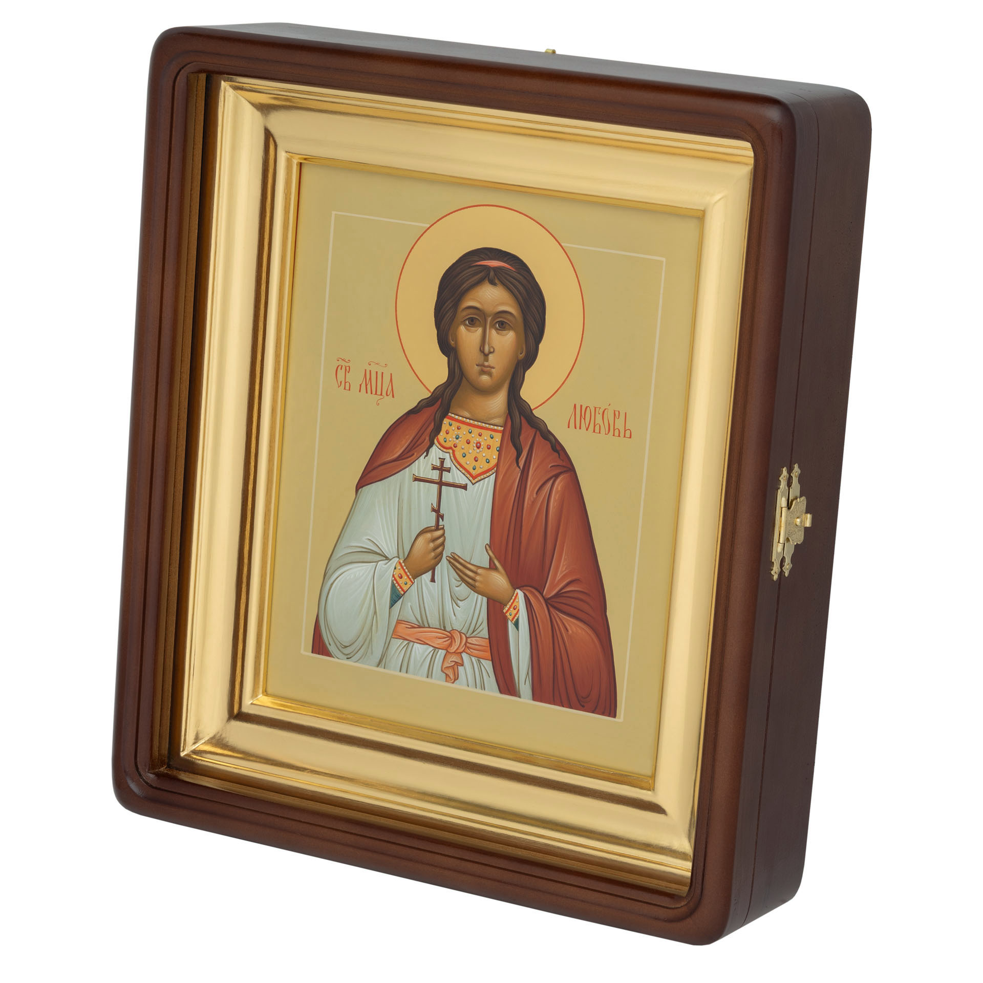 Икона живописная на доске в киоте 18х24 масло, золоченый нимб, киот №1 Любовь, 03930