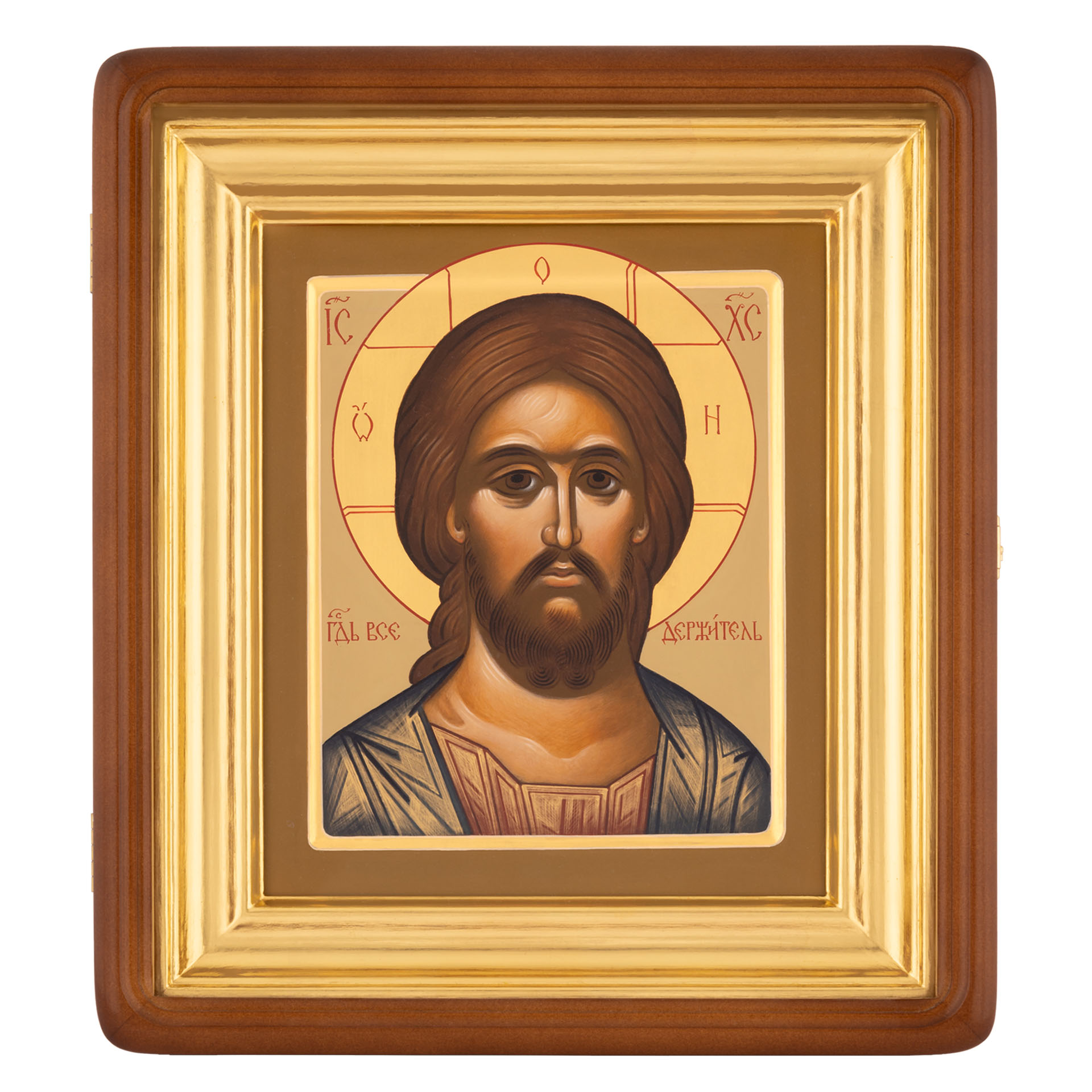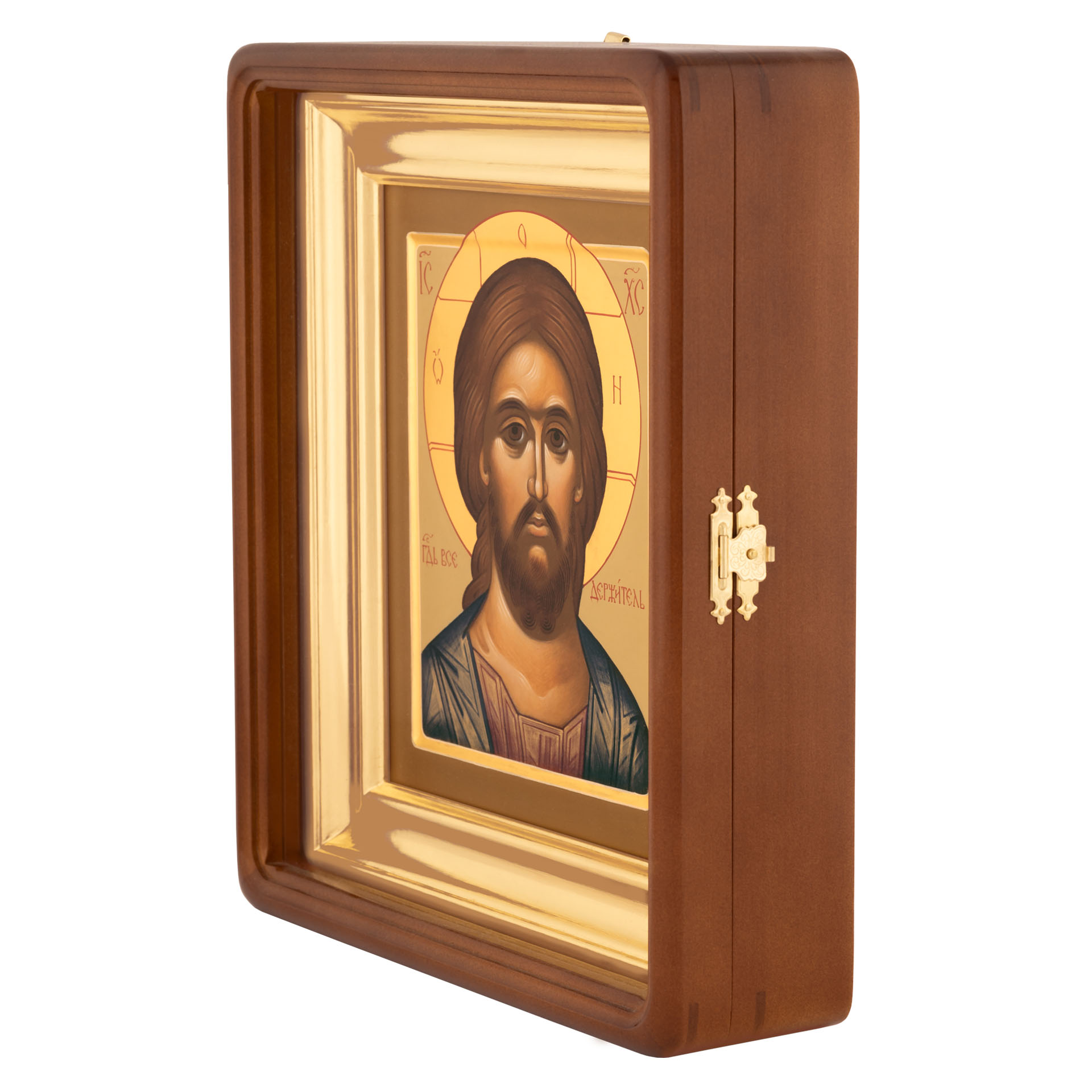 Икона живописная на доске в киоте 18х24 масло, золоченый нимб, киот №1 Спаситель, 03935