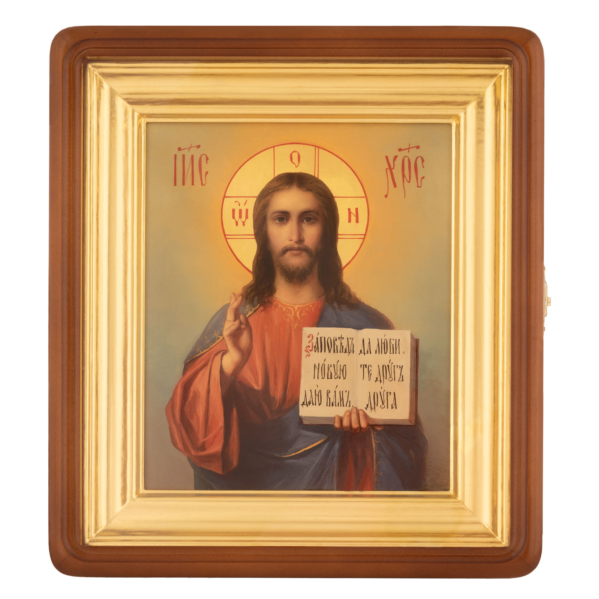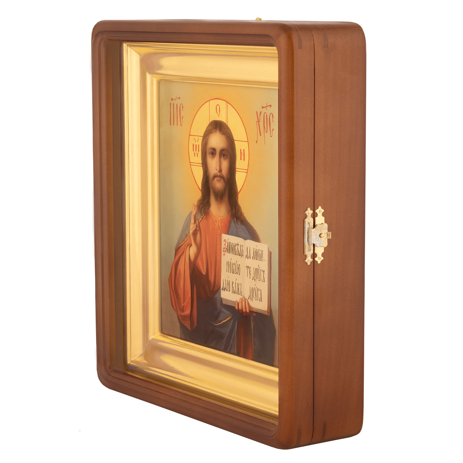 Икона живописная на доске в киоте 18х24 масло, золоченый нимб, киот №1 Спаситель, 03937