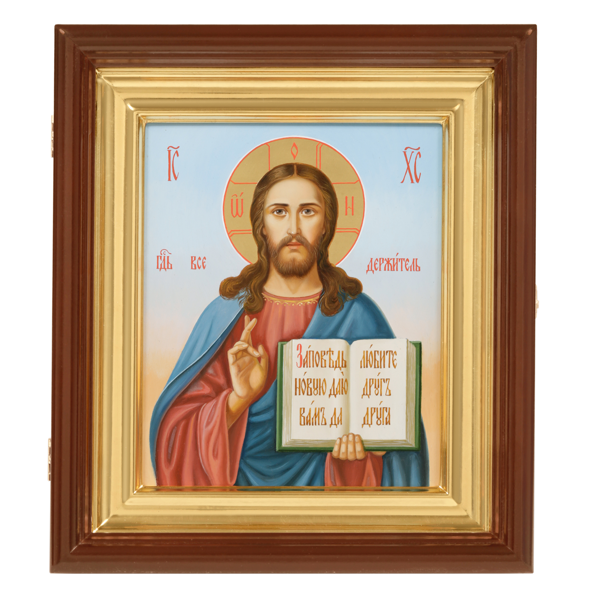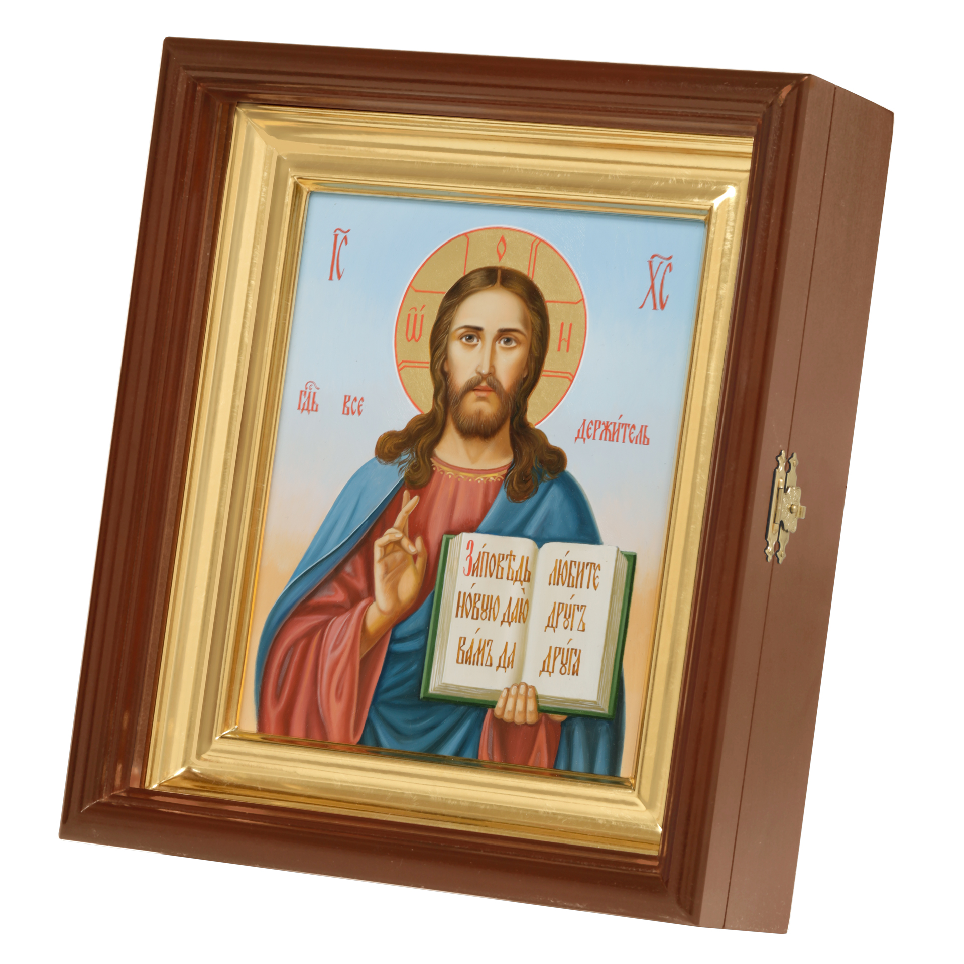 Икона живописная на доске в киоте 18х24 масло, золоченый нимб, киот №1 Спаситель, 05618