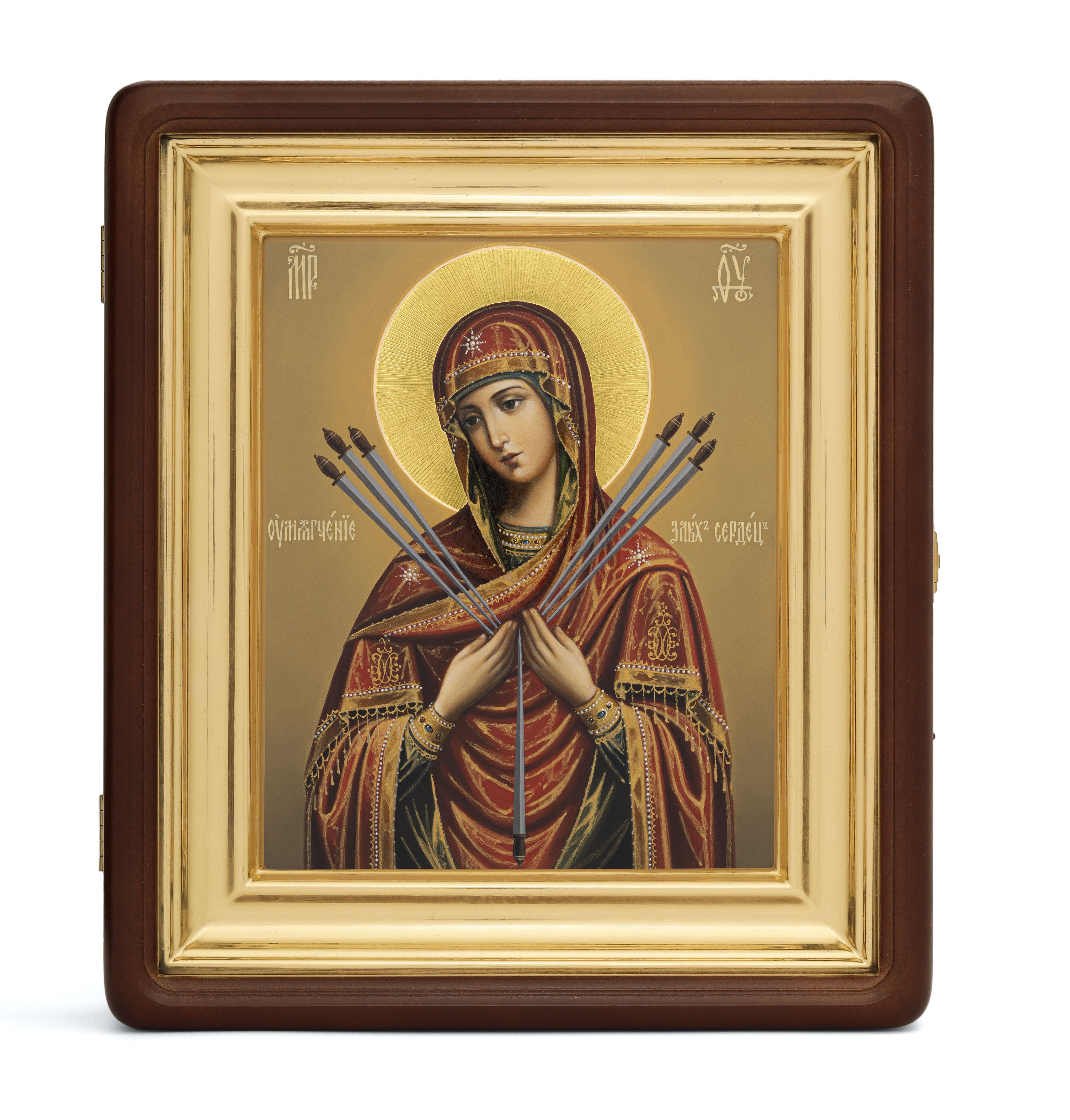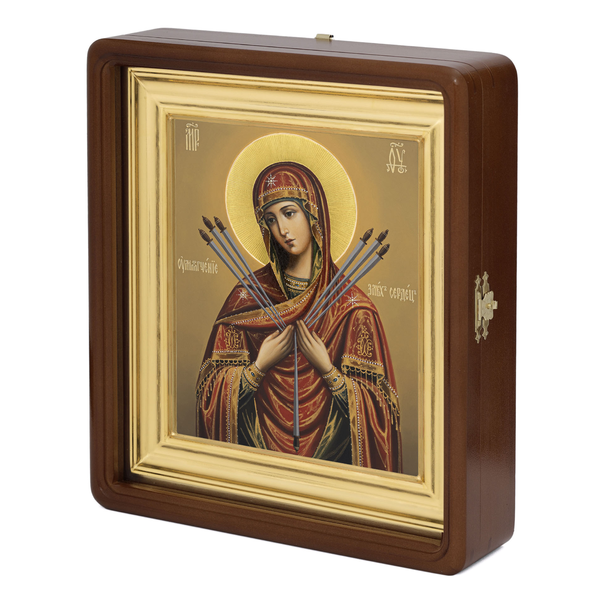 Икона живописная на доске в киоте 18х24 масло, золоченый нимб, киот №1 Умягчение злых сердец