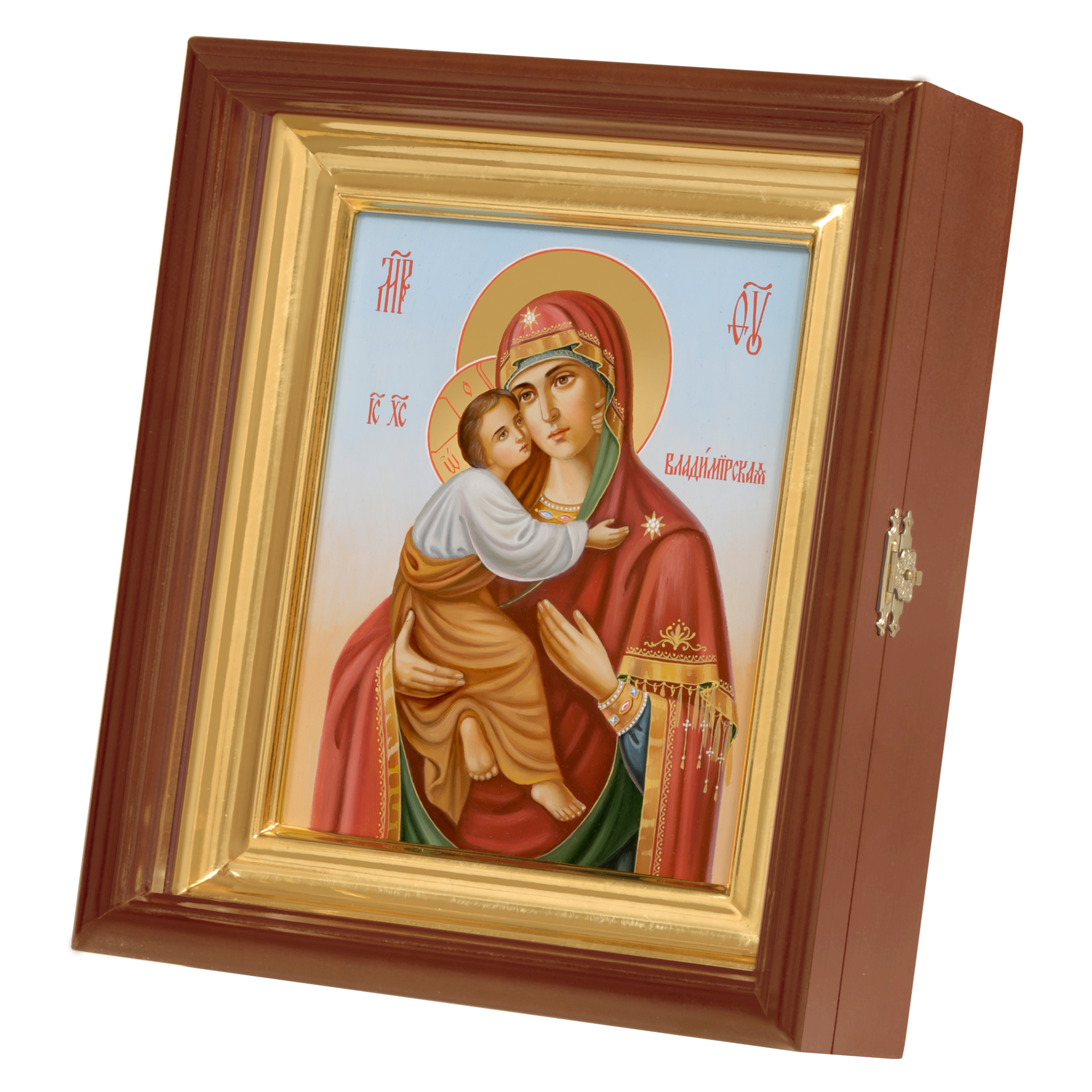 Икона живописная на доске в киоте 18х24 масло, золоченый нимб, киот №1 Владимирская БМ, 05614
