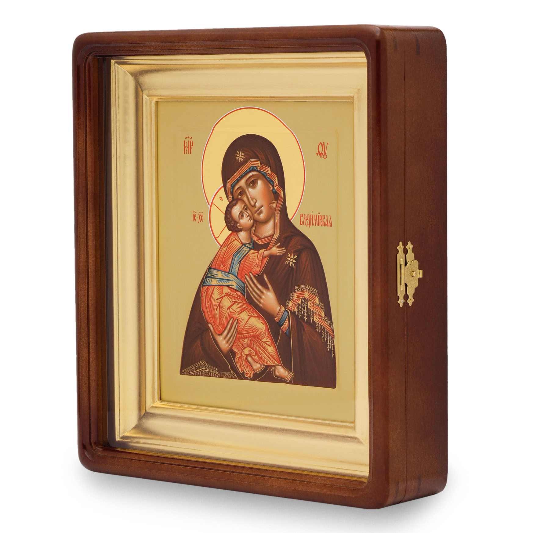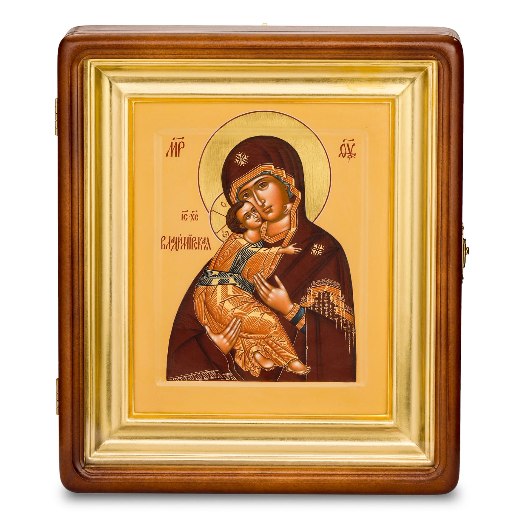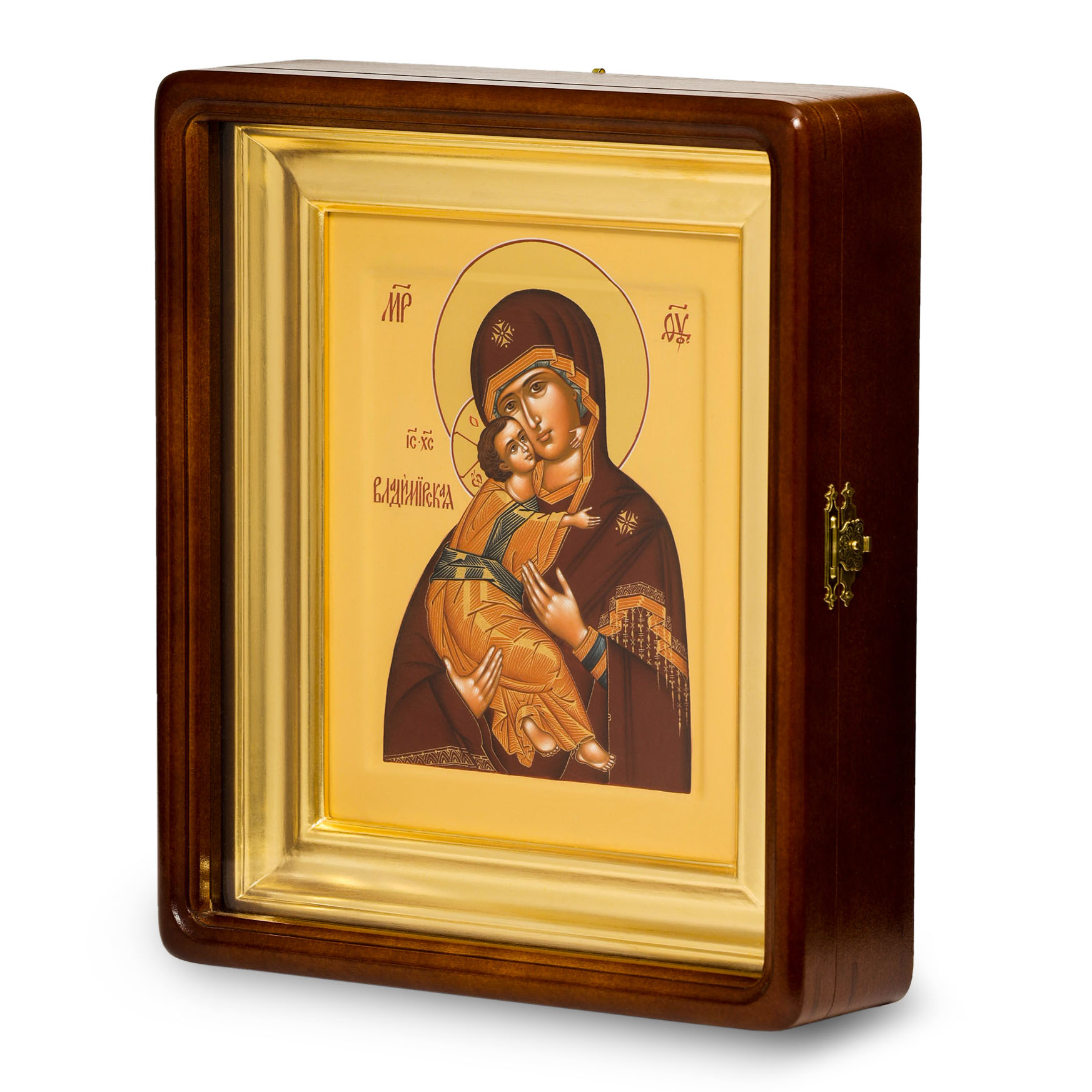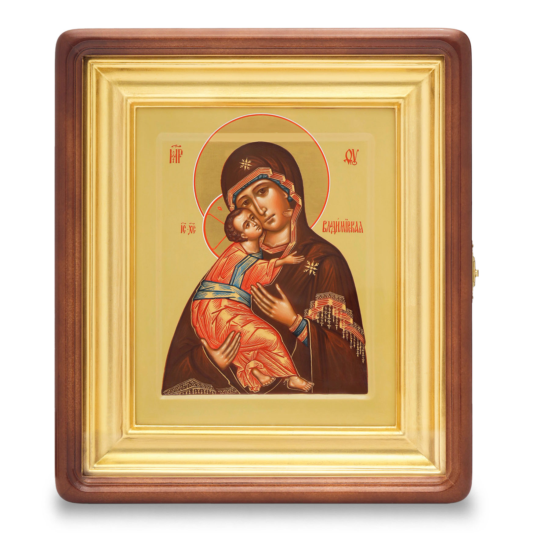 Икона живописная на доске в киоте 18х24 масло, золоченый нимб, киот №1 Владимирская БМ