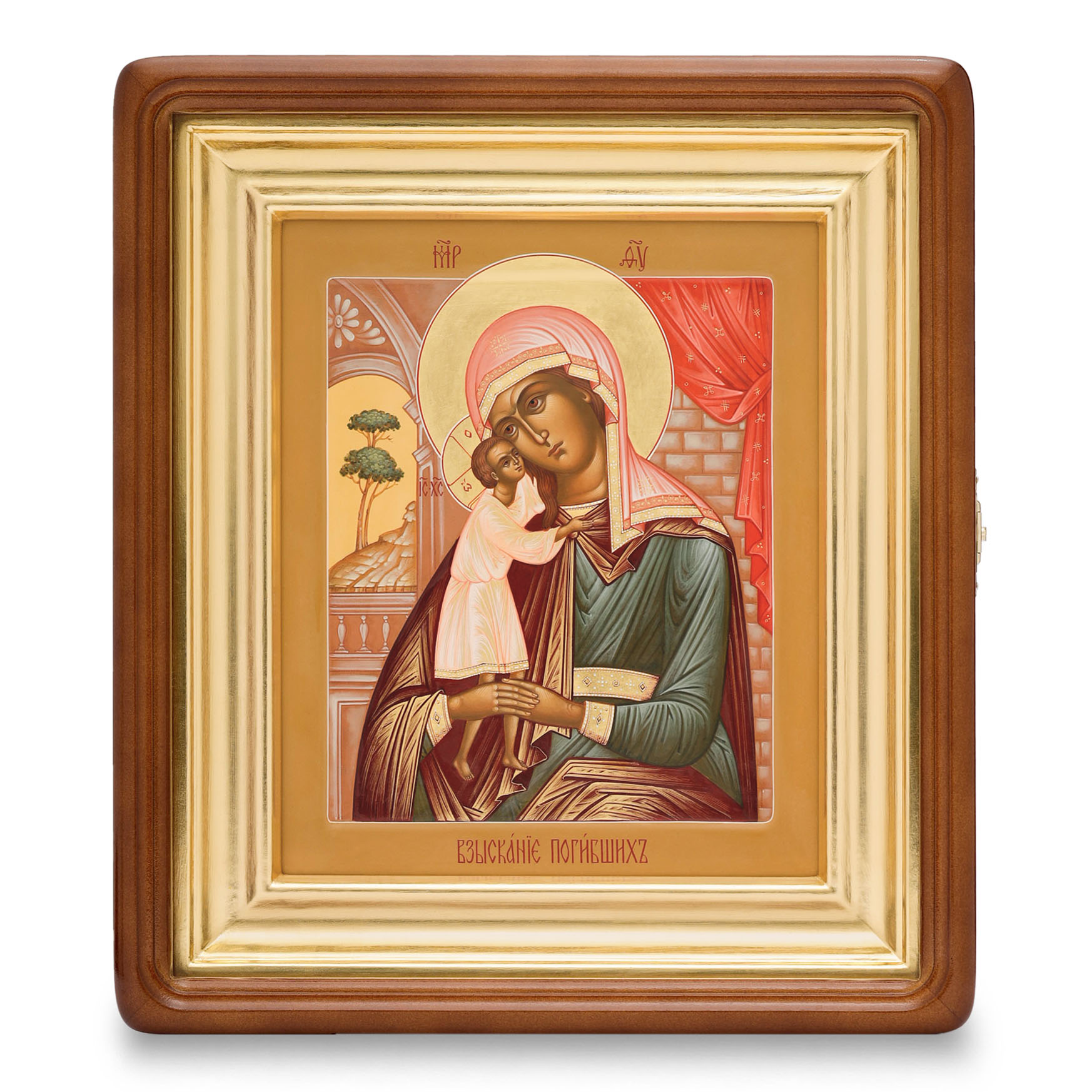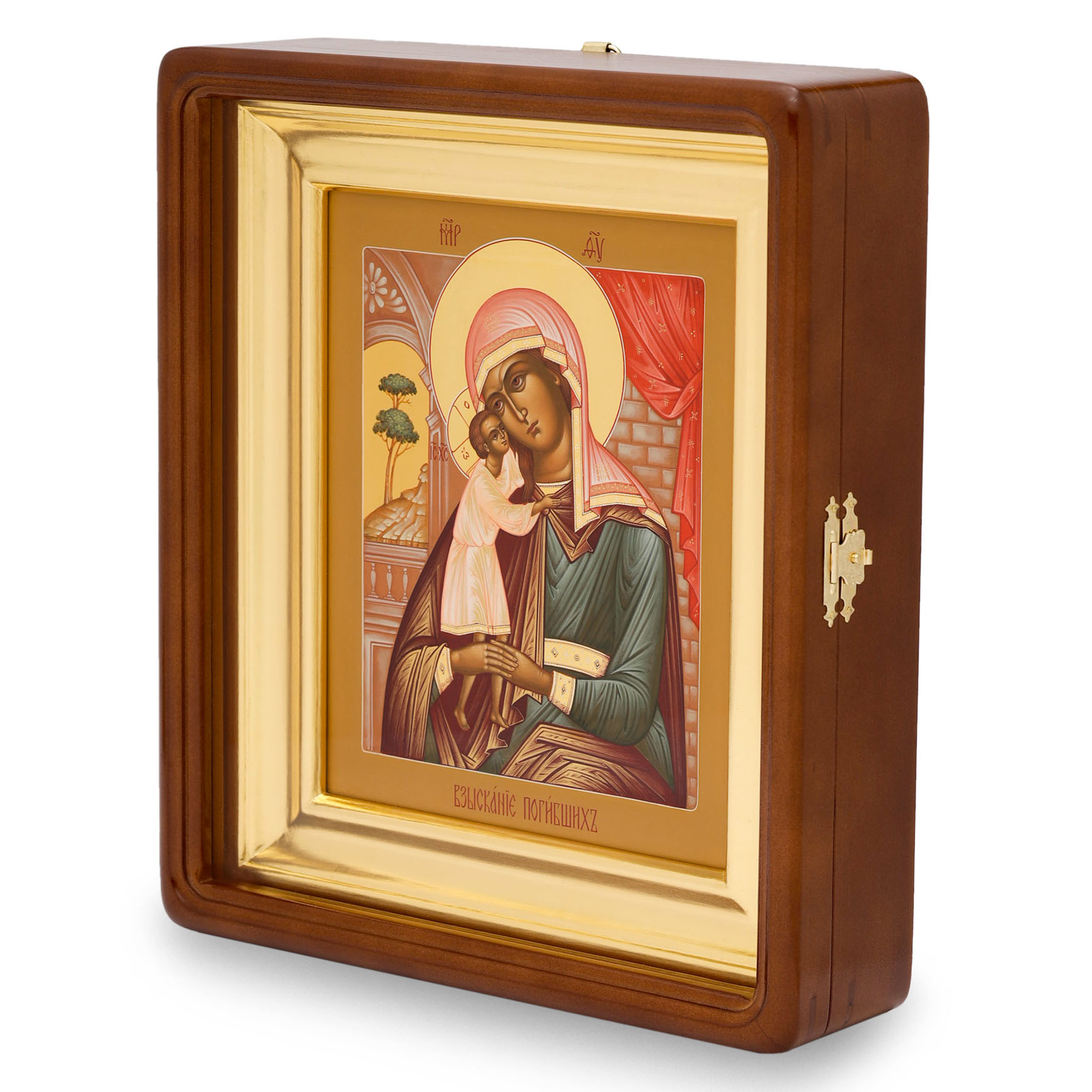 Икона живописная на доске в киоте 18х24 масло, золоченый нимб, киот №1 Взыскание Погибших