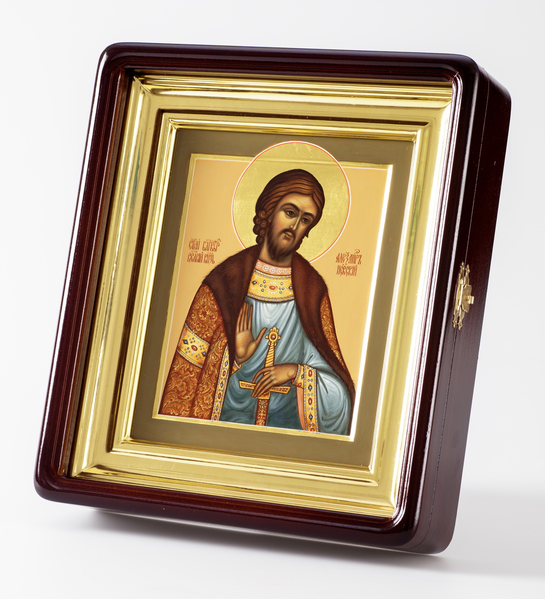 Икона живописная на доске в киоте 18х24 темпера, золоченый нимб, ковчег, киот №1 Александр Невский 1