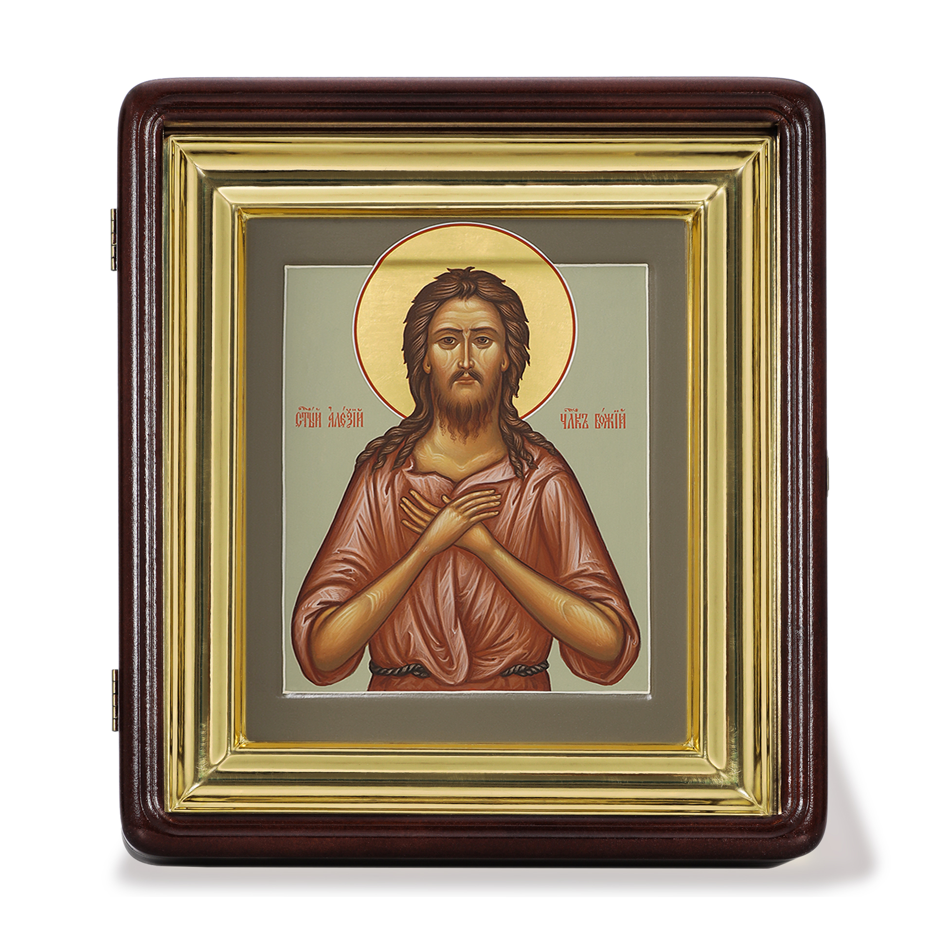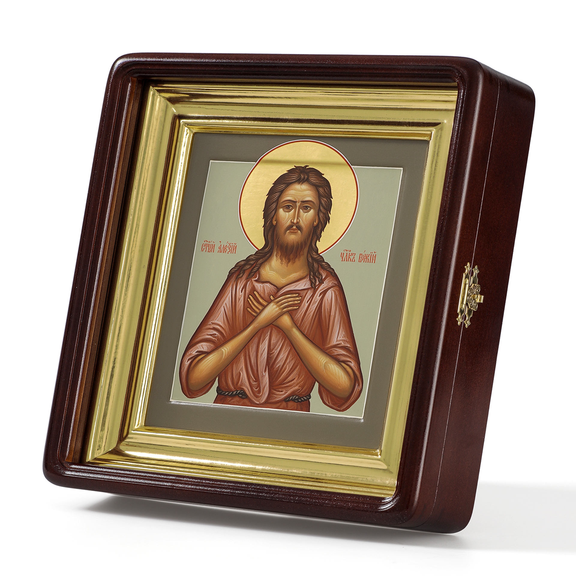 Икона живописная на доске в киоте 18х24 темпера, золоченый нимб, ковчег, киот №1 Алексий человек Божий