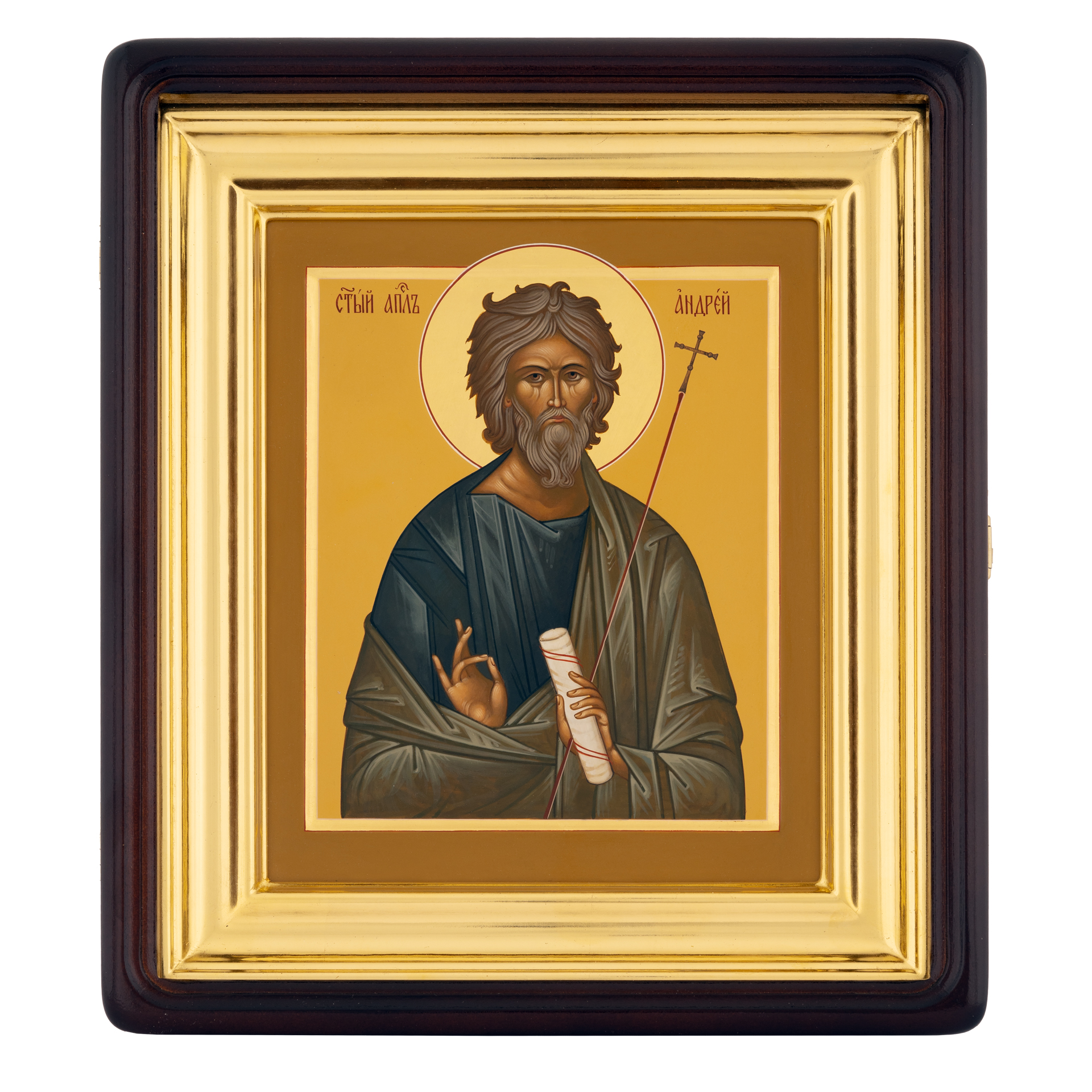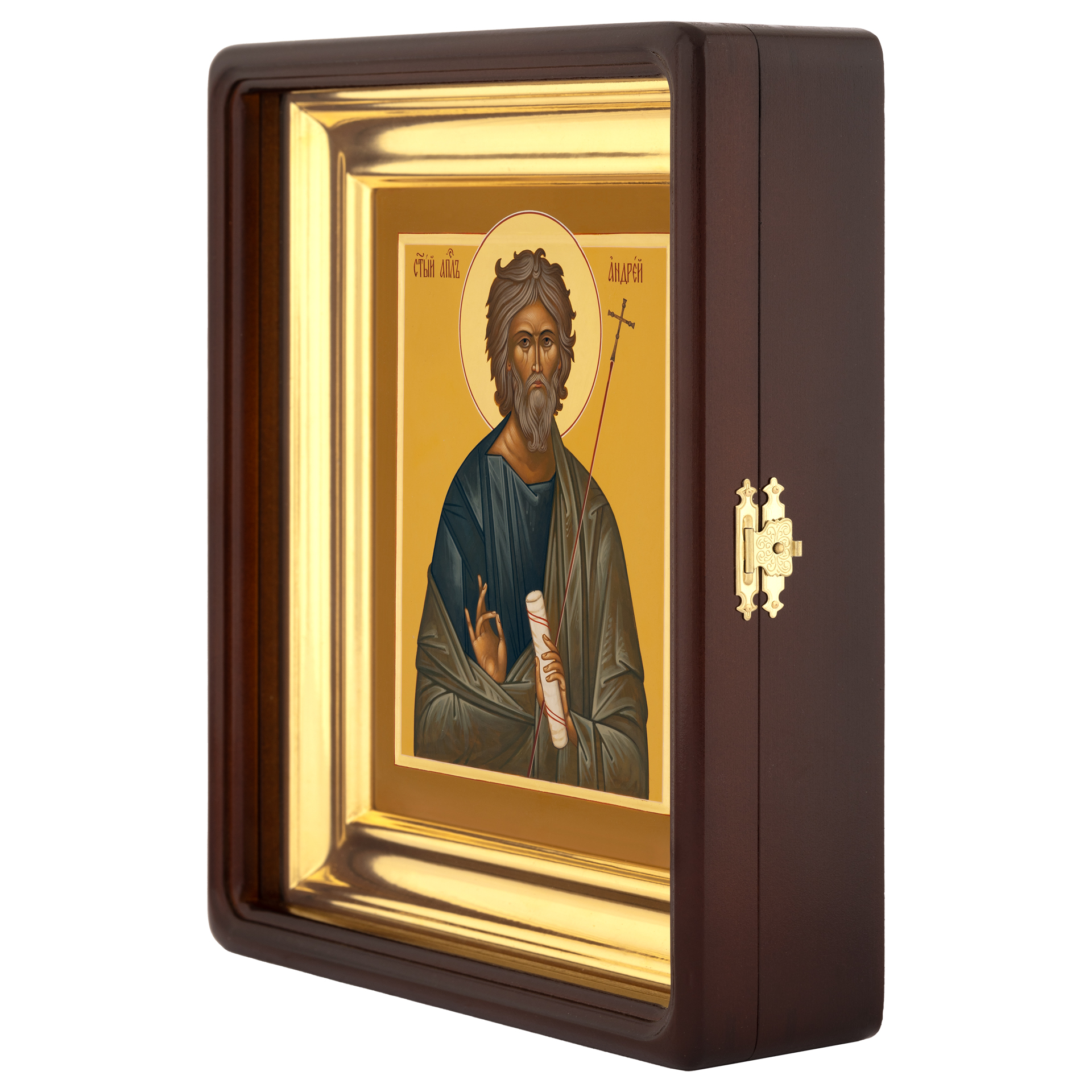 Икона живописная на доске в киоте 18х24 темпера, золоченый нимб, ковчег, киот №1 Андрей Первозванный, 04533