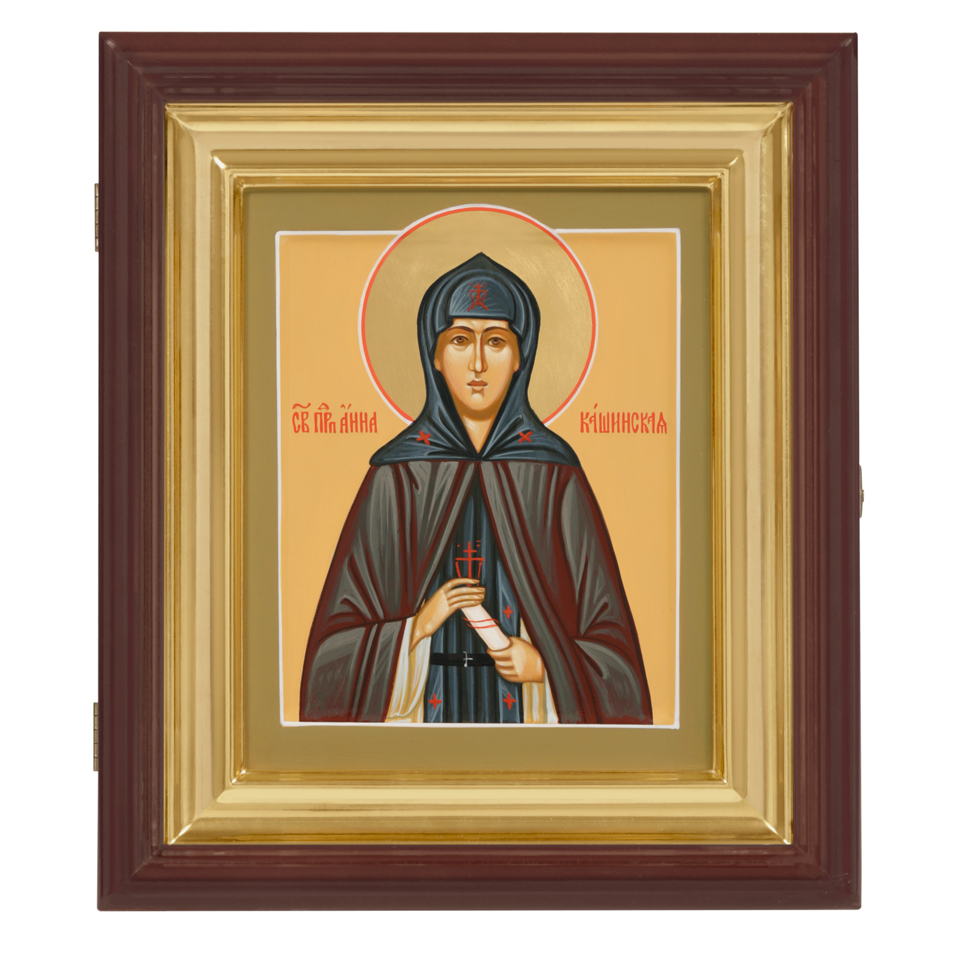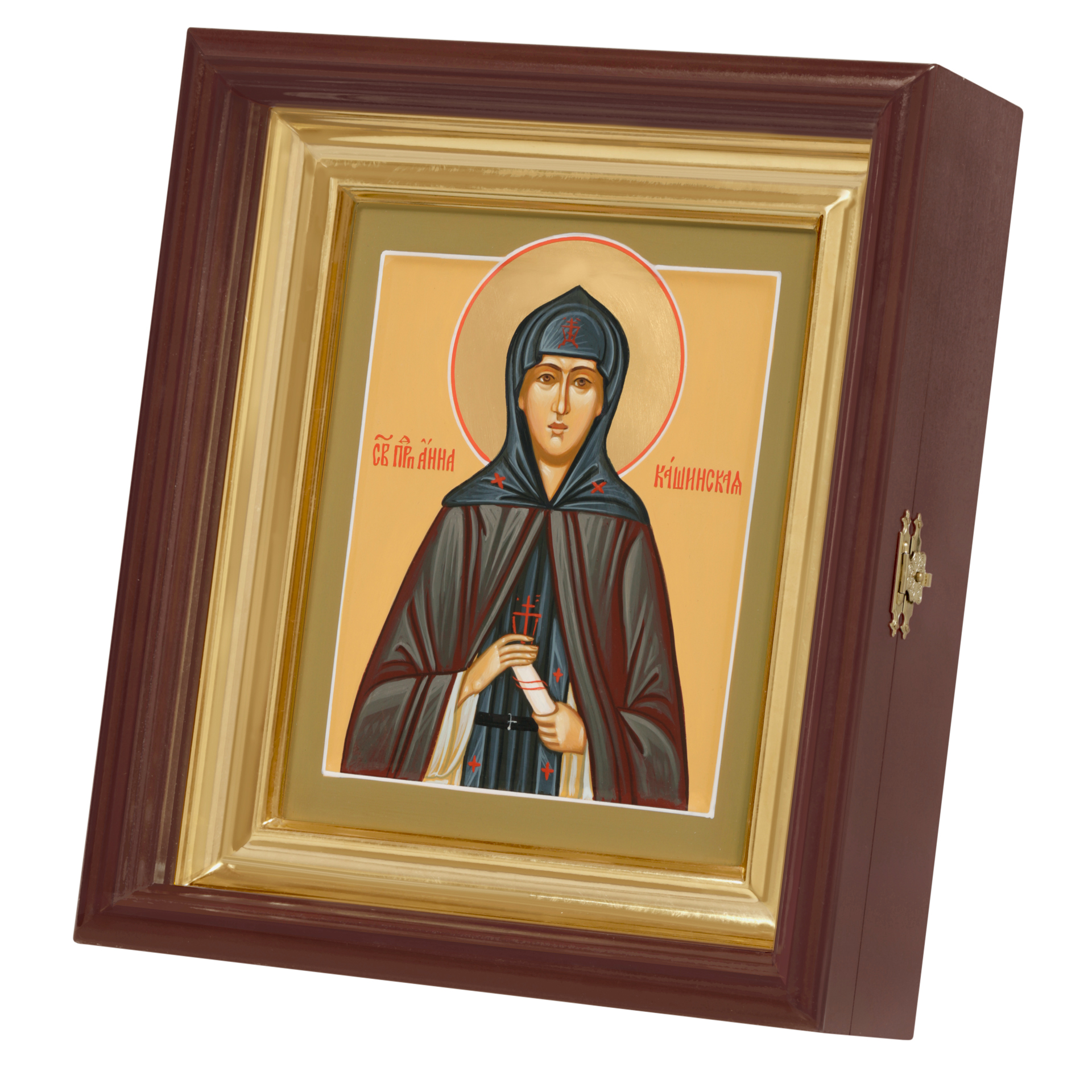 Икона живописная на доске в киоте 18х24 темпера, золоченый нимб, ковчег, киот №1 Анна Кашинская, 05292