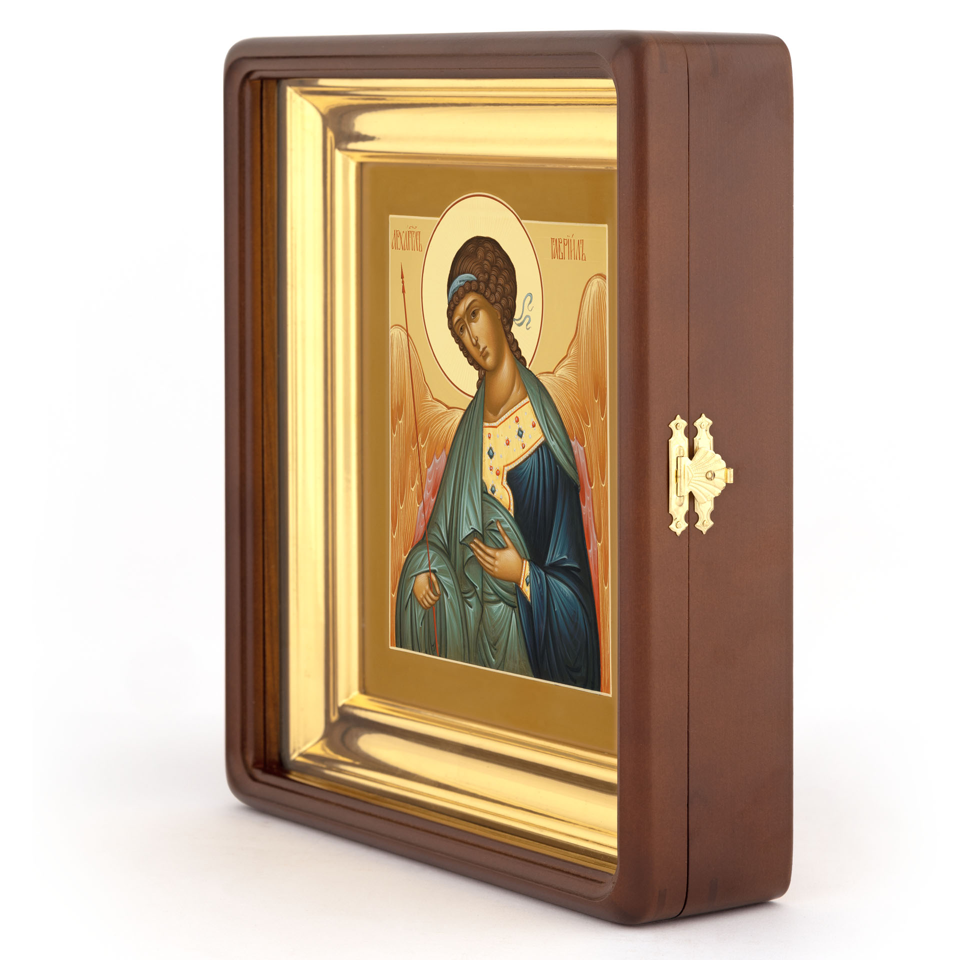 Икона живописная на доске в киоте 18х24 темпера, золоченый нимб, ковчег, киот №1 Архангел Гавриил, 01425