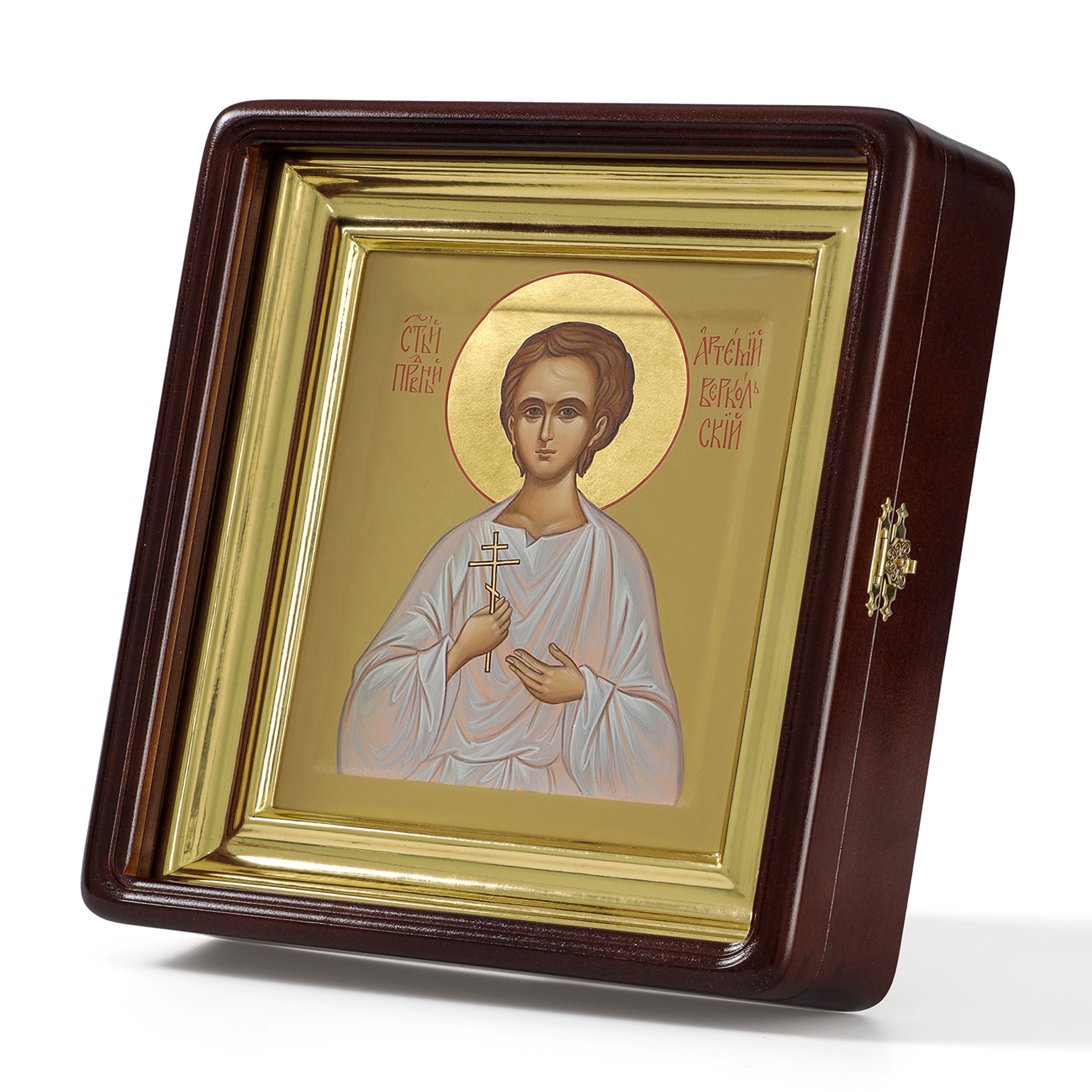 Икона живописная на доске в киоте 18х24 темпера, золоченый нимб, ковчег, киот №1 Артемий Веркольский