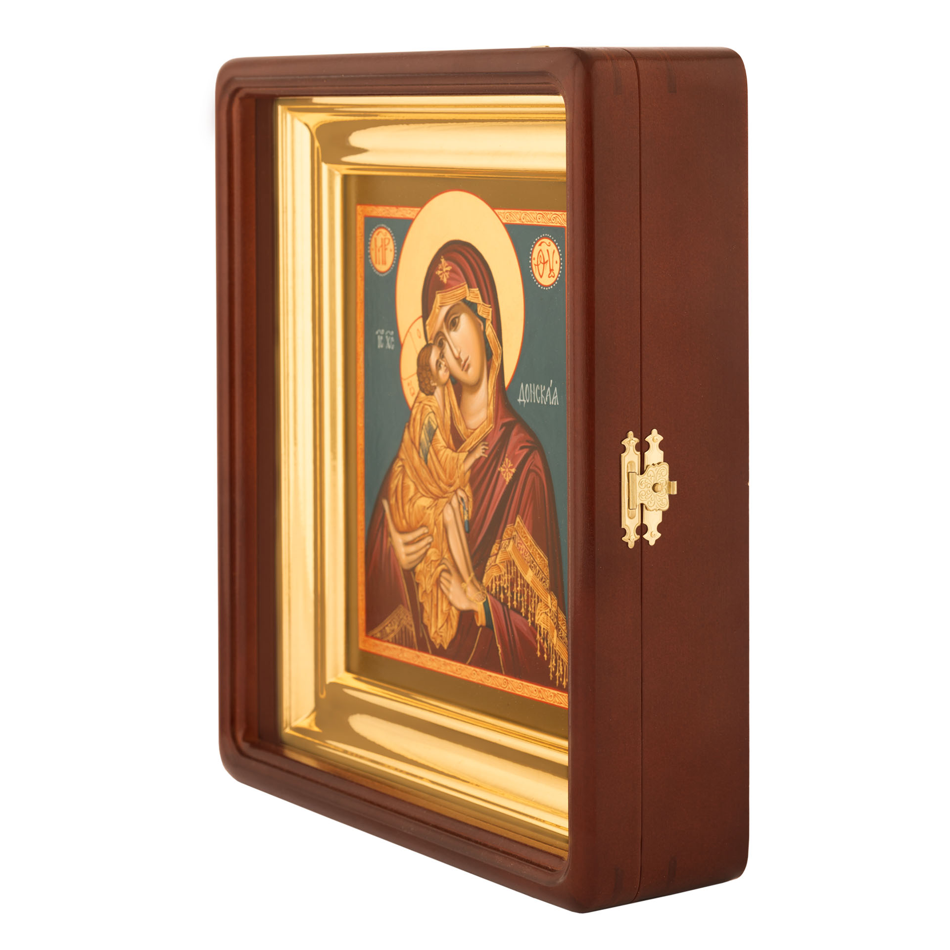 Икона живописная на доске в киоте 18х24 темпера, золоченый нимб, ковчег, киот №1 Донская БМ, 03053