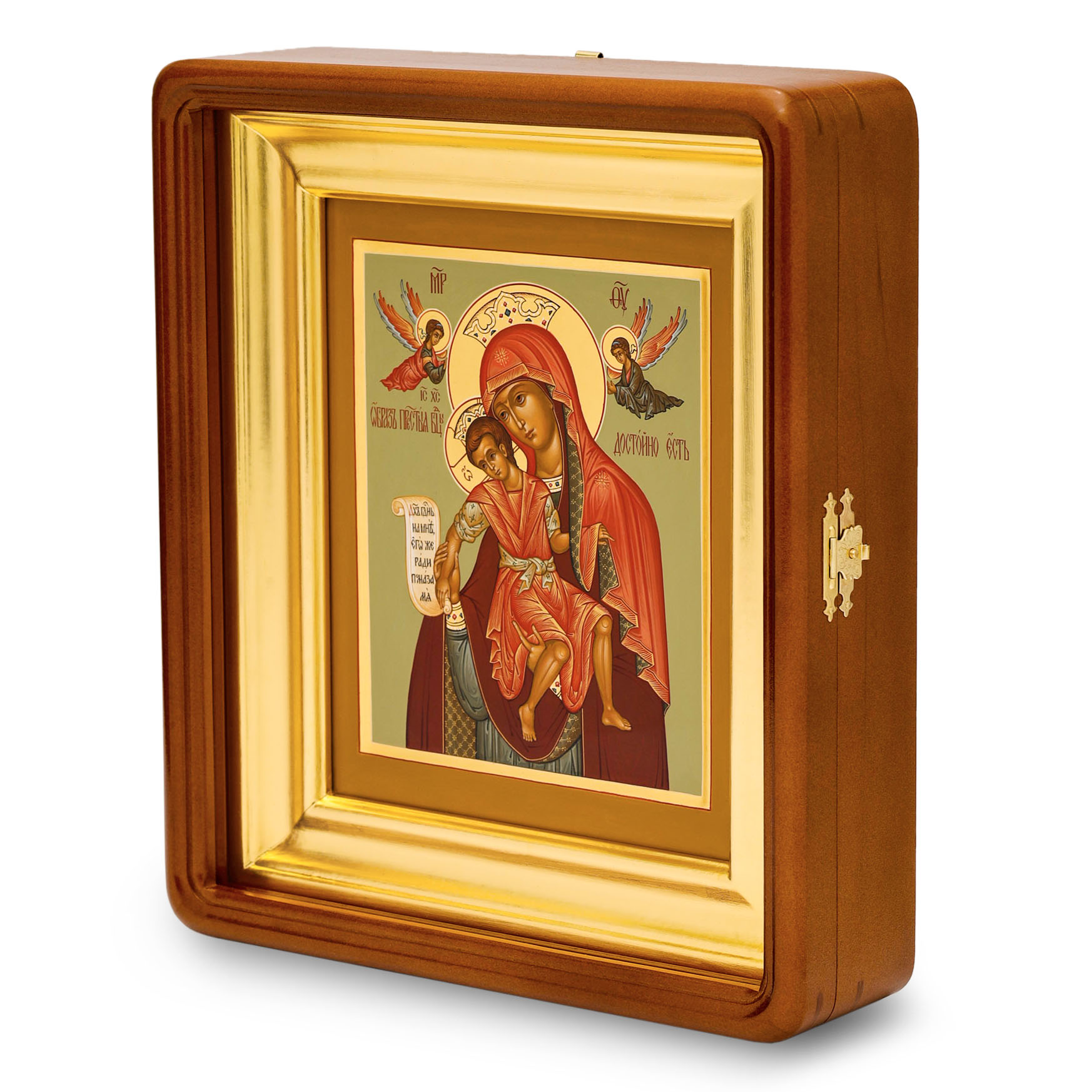 Икона живописная на доске в киоте 18х24 темпера, золоченый нимб, ковчег, киот №1 Достойно Есть