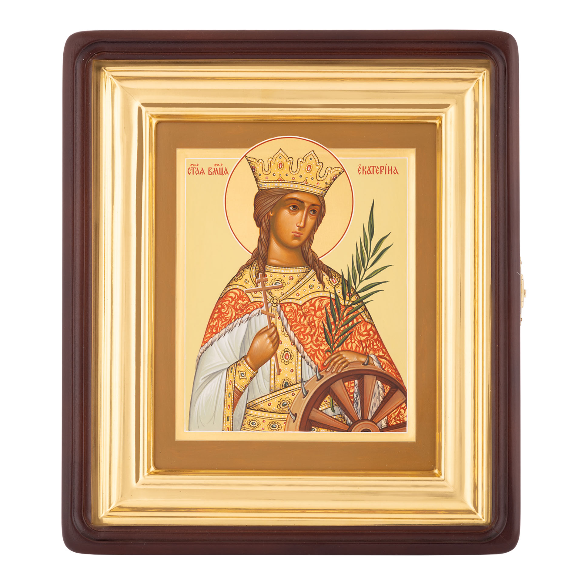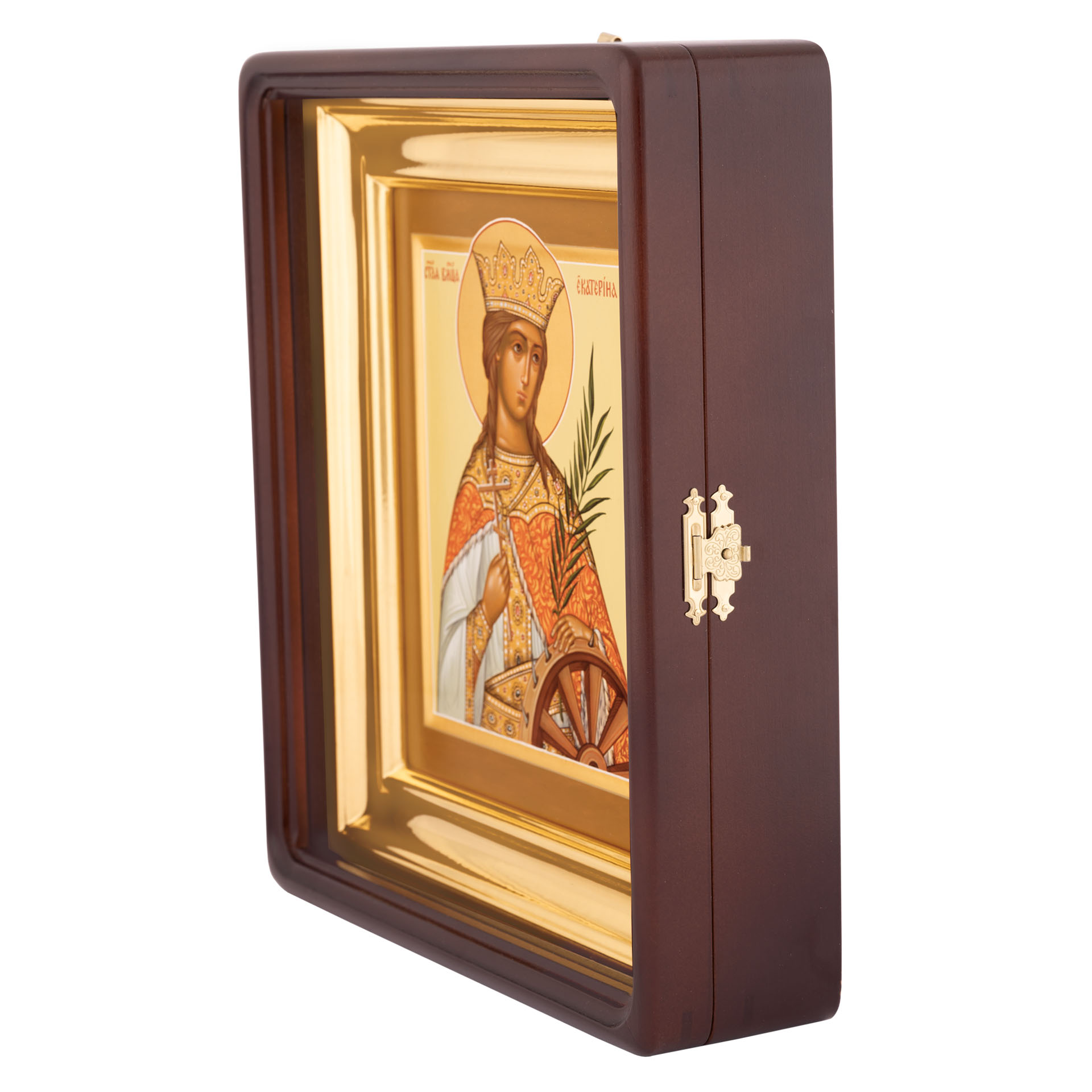 Икона живописная на доске в киоте 18х24 темпера, золоченый нимб, ковчег, киот №1 Екатерина, 02904
