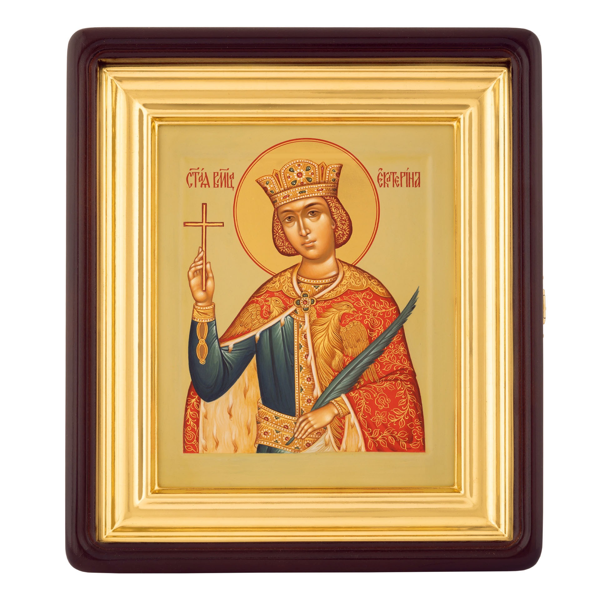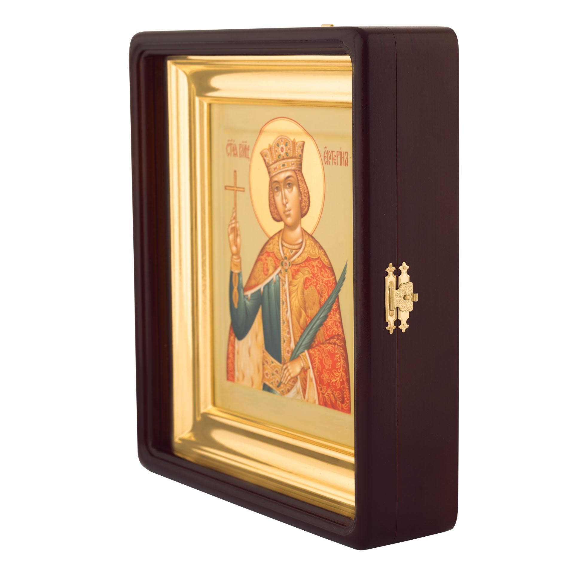 Икона живописная на доске в киоте 18х24 темпера, золоченый нимб, ковчег, киот №1 Екатерина, 03411