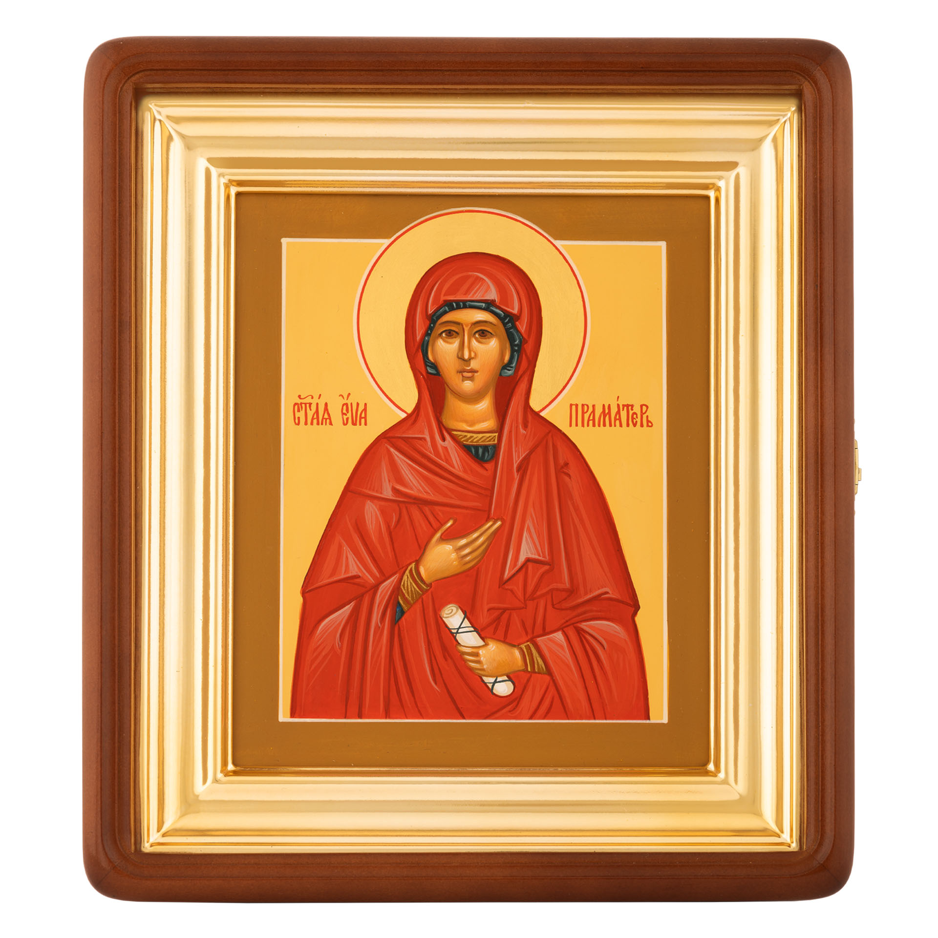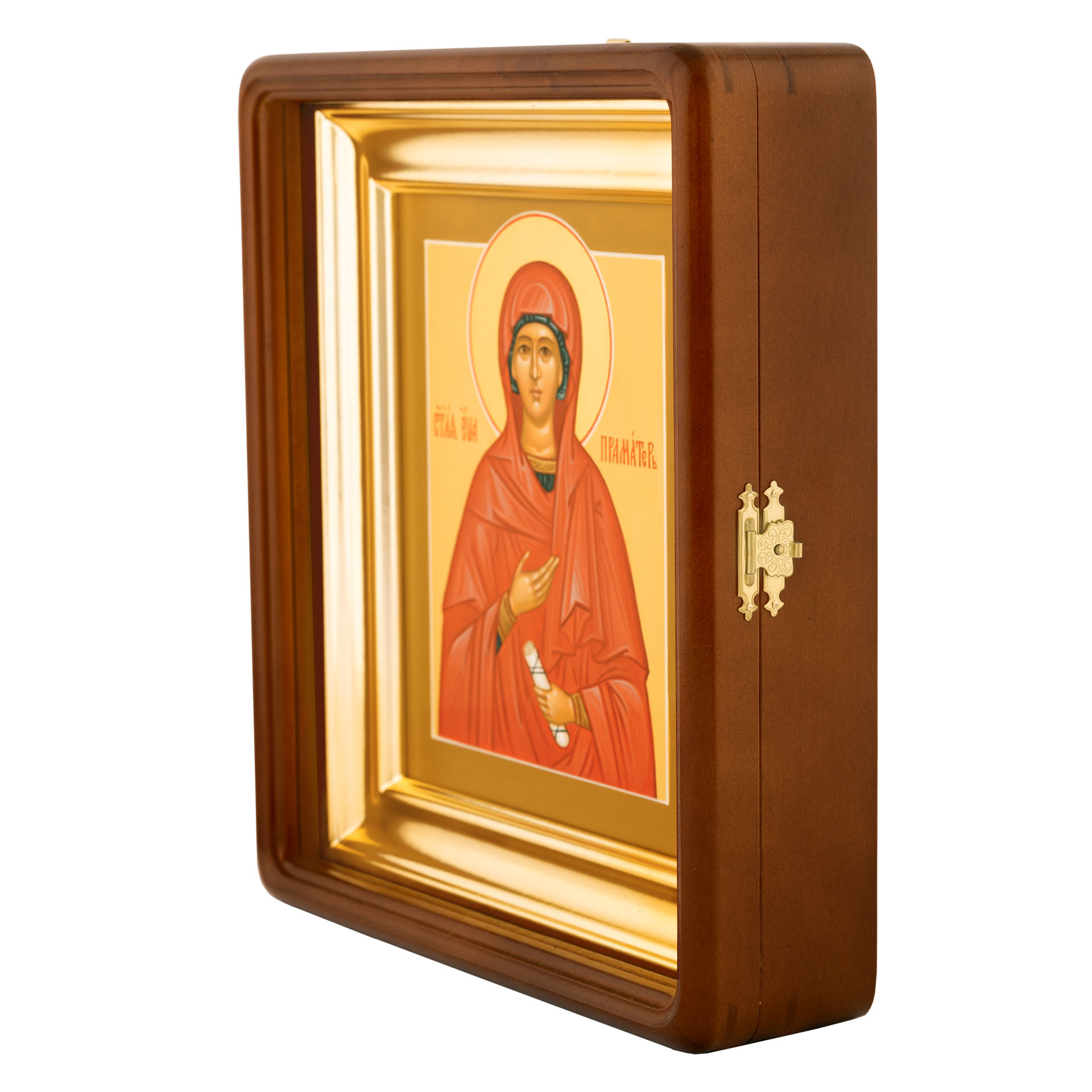 Икона живописная на доске в киоте 18х24 темпера, золоченый нимб, ковчег, киот №1 Ева, 00117