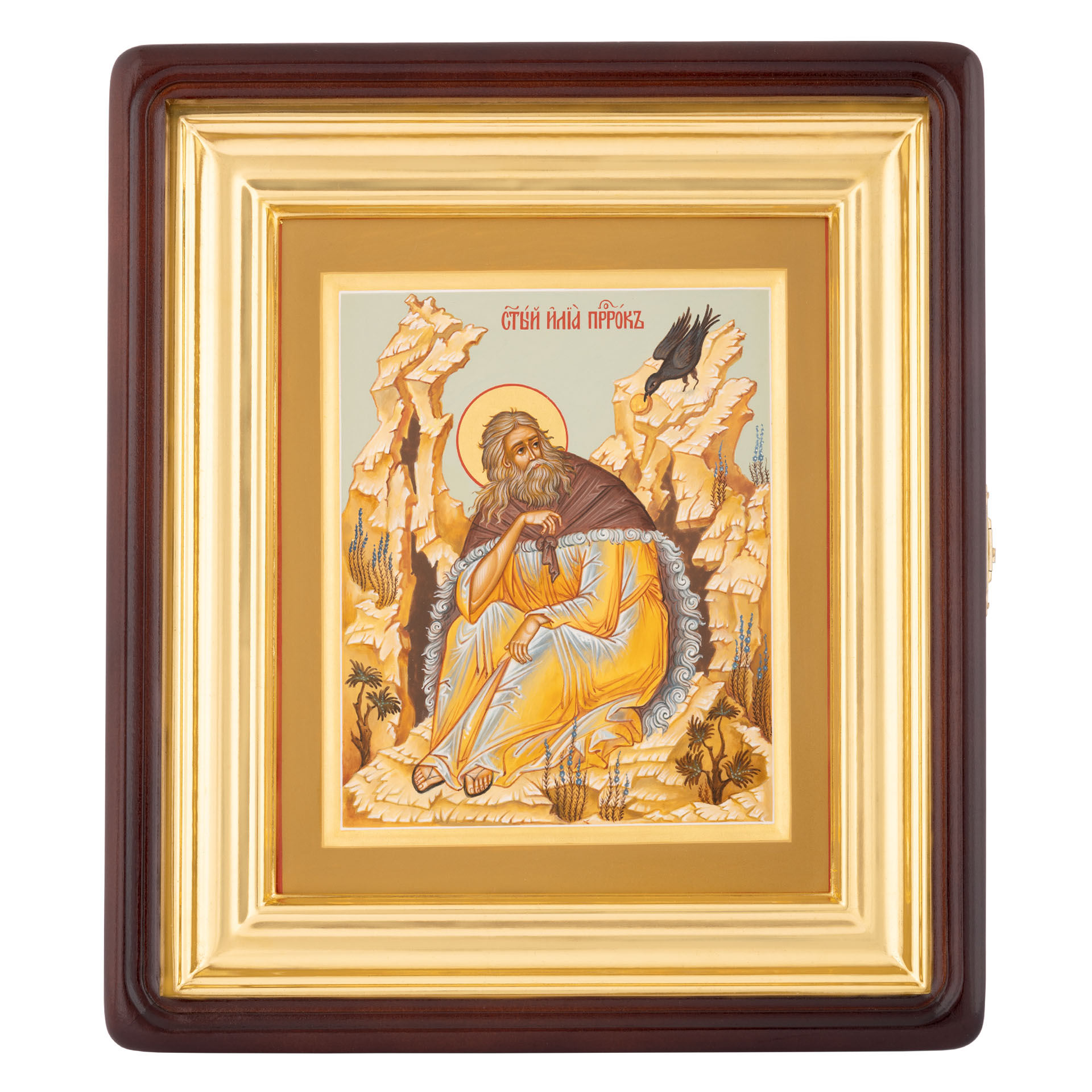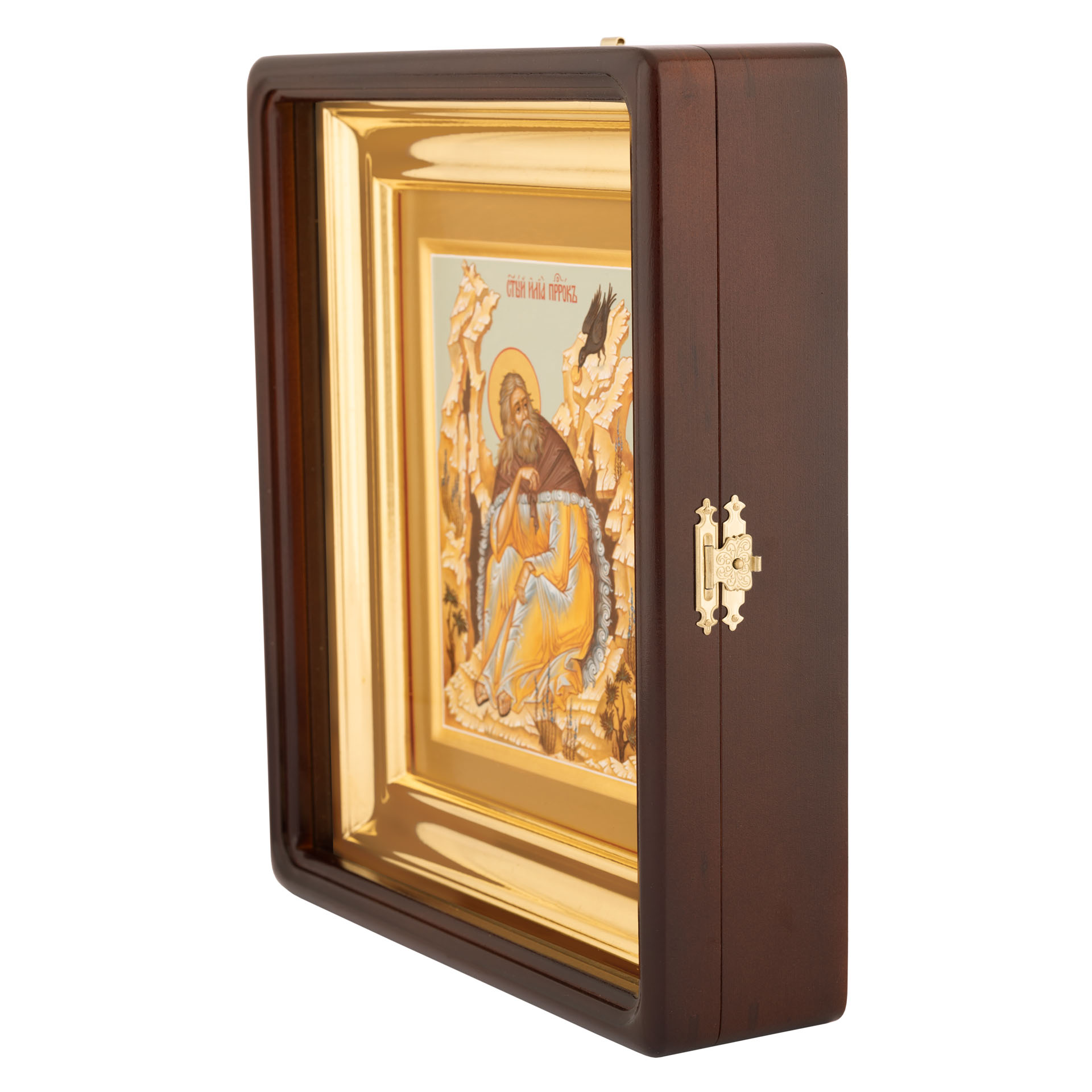 Икона живописная на доске в киоте 18х24 темпера, золоченый нимб, ковчег, киот №1 Илия Пророк, 04621