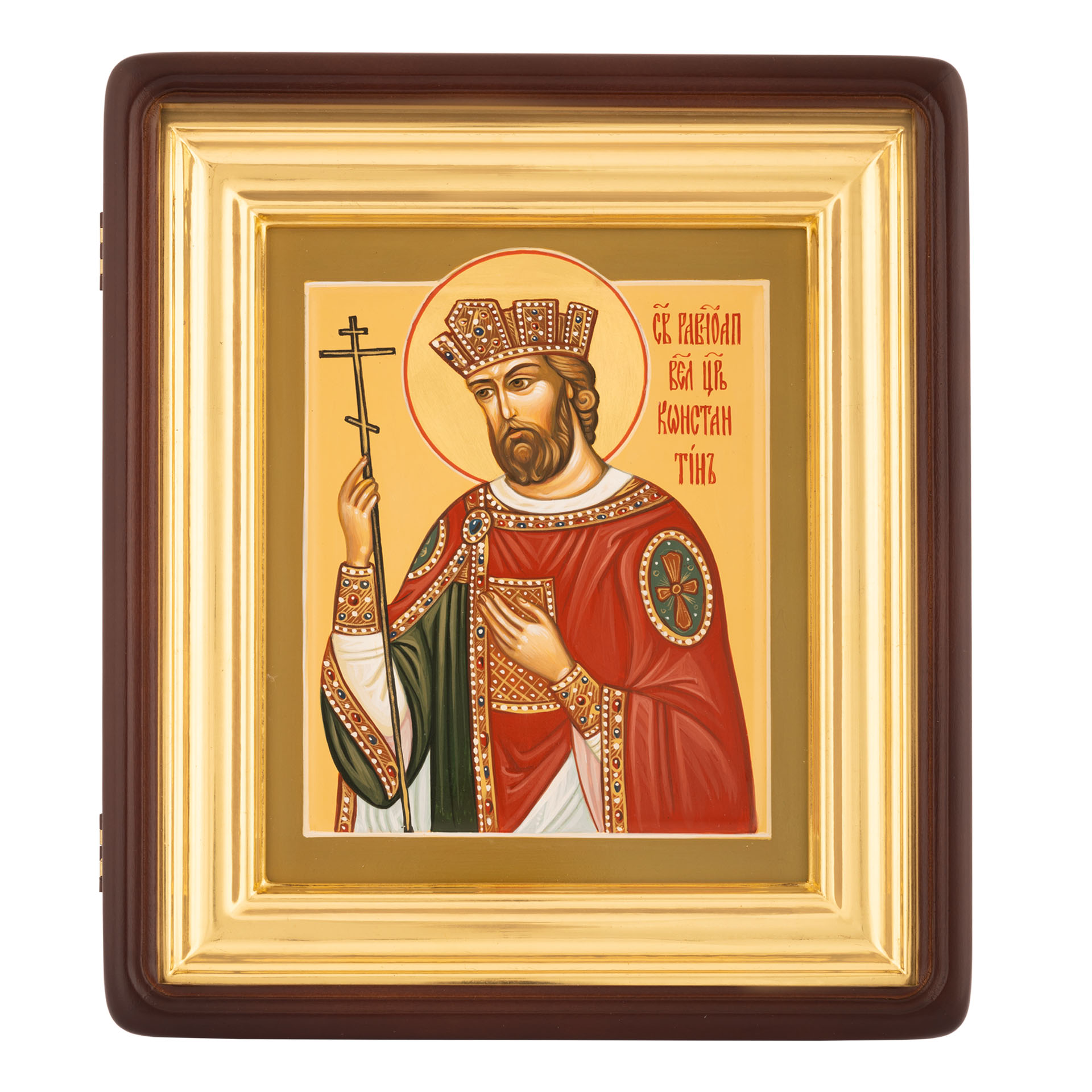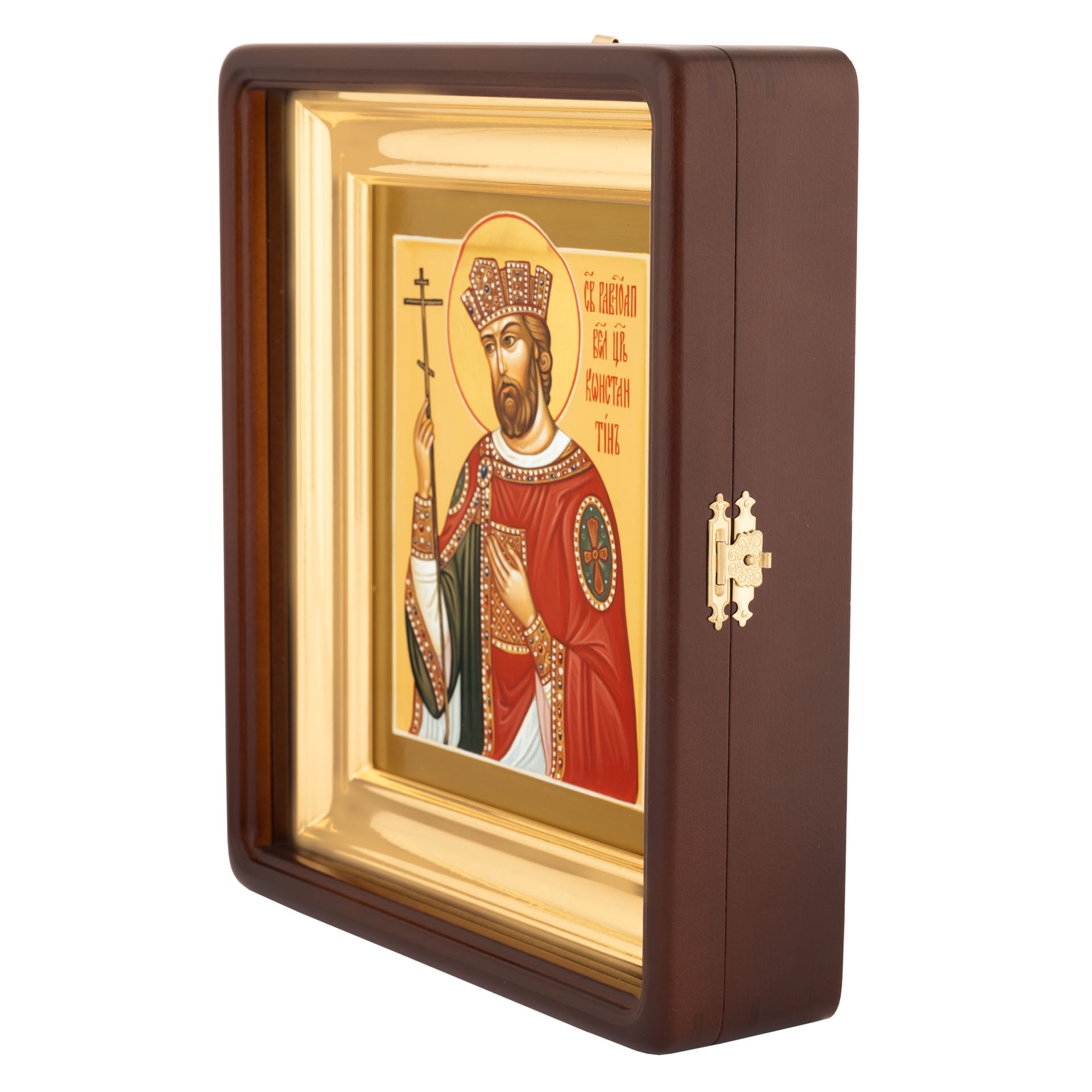 Икона живописная на доске в киоте 18х24 темпера, золоченый нимб, ковчег, киот №1 Константин, 02838