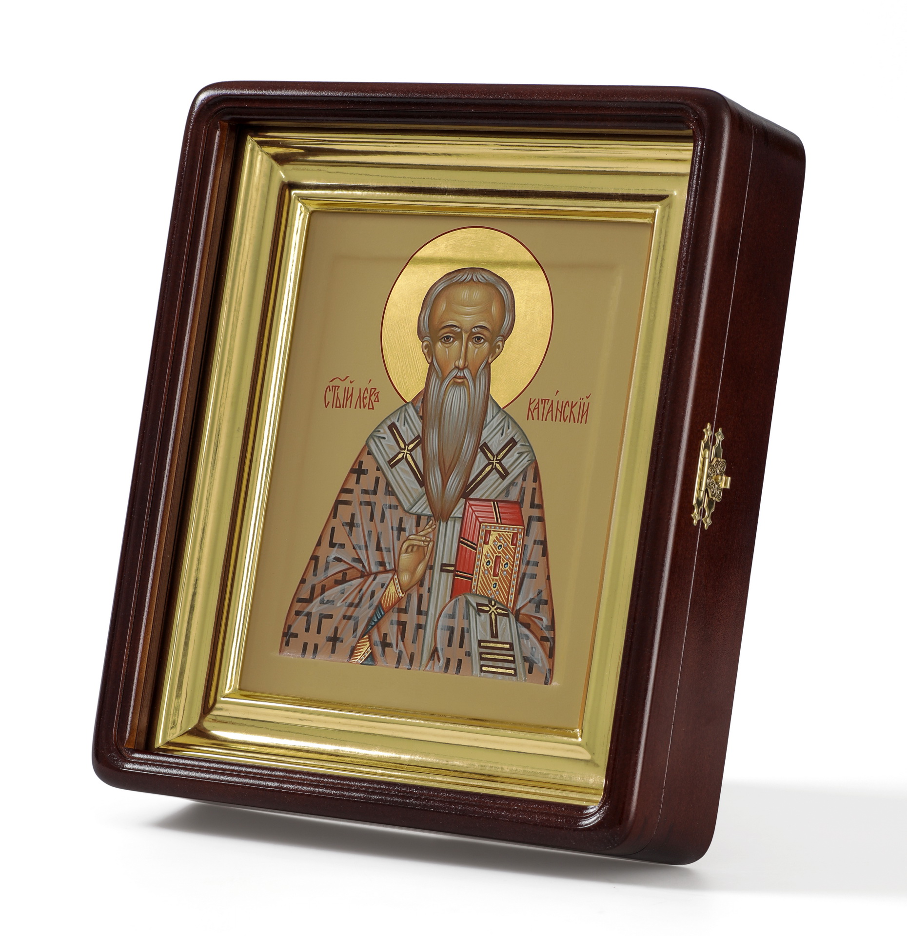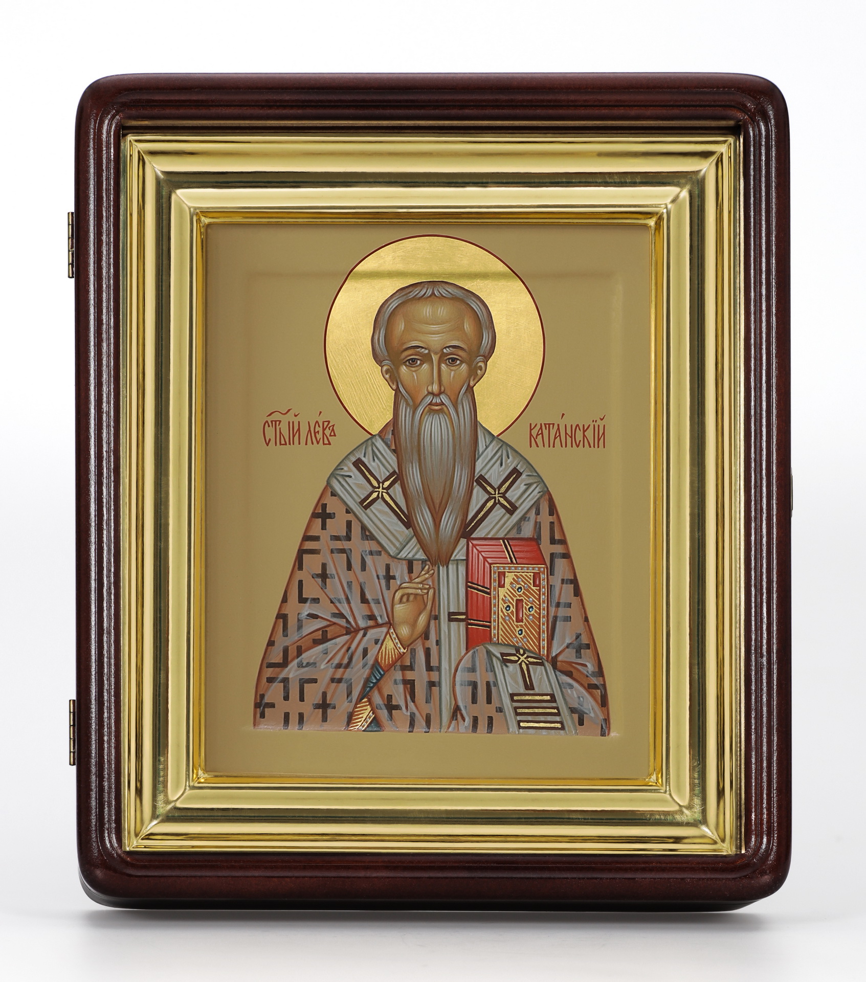 Икона живописная на доске в киоте 18х24 темпера, золоченый нимб, ковчег, киот №1 Лев