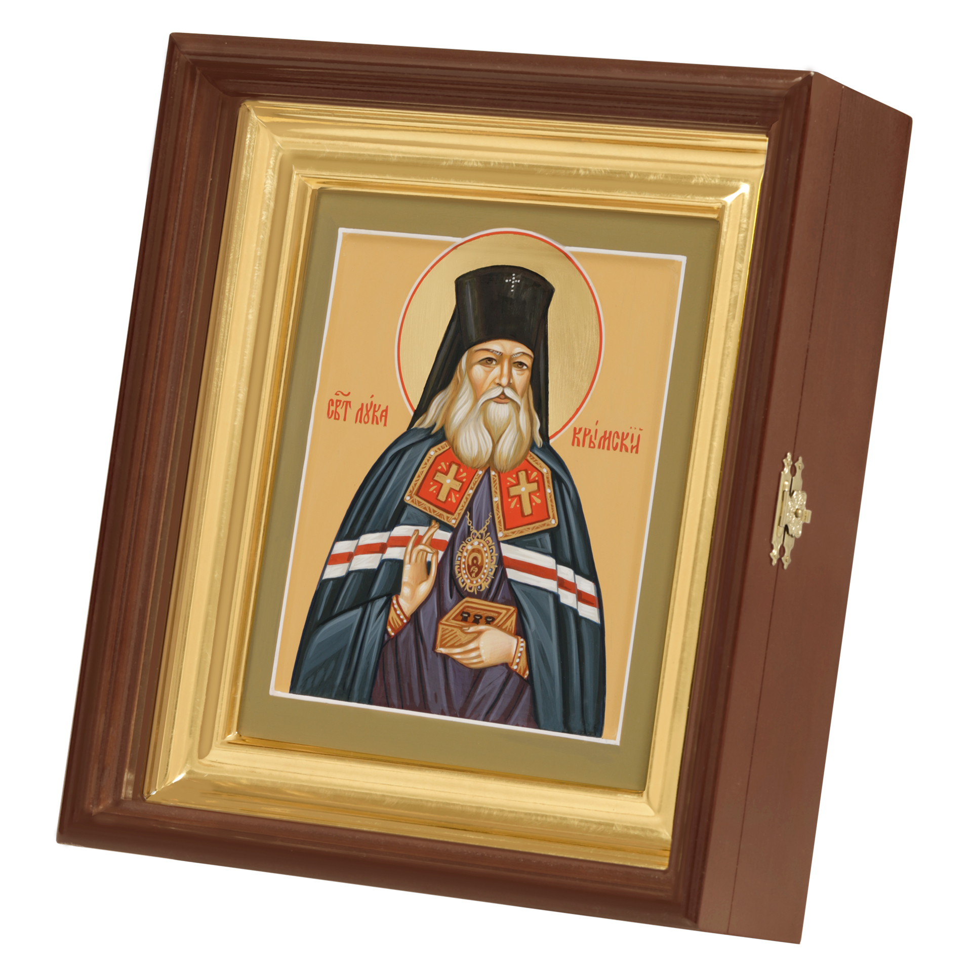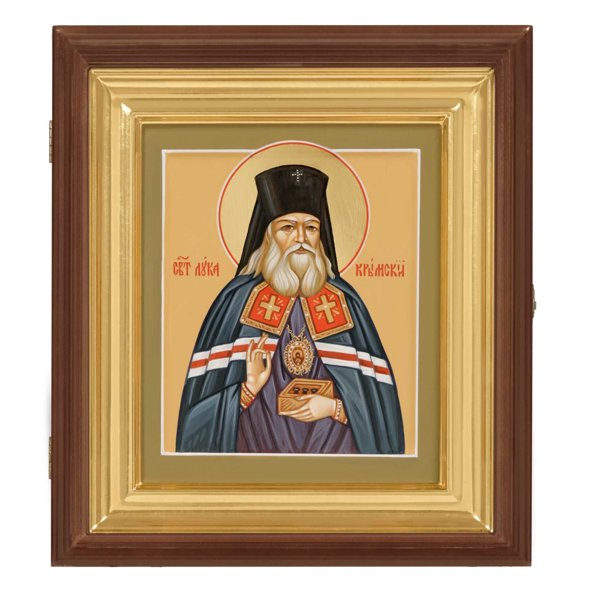Икона живописная на доске в киоте 18х24 темпера, золоченый нимб, ковчег, киот №1 Лука Войно-Ясенецкий, 05299