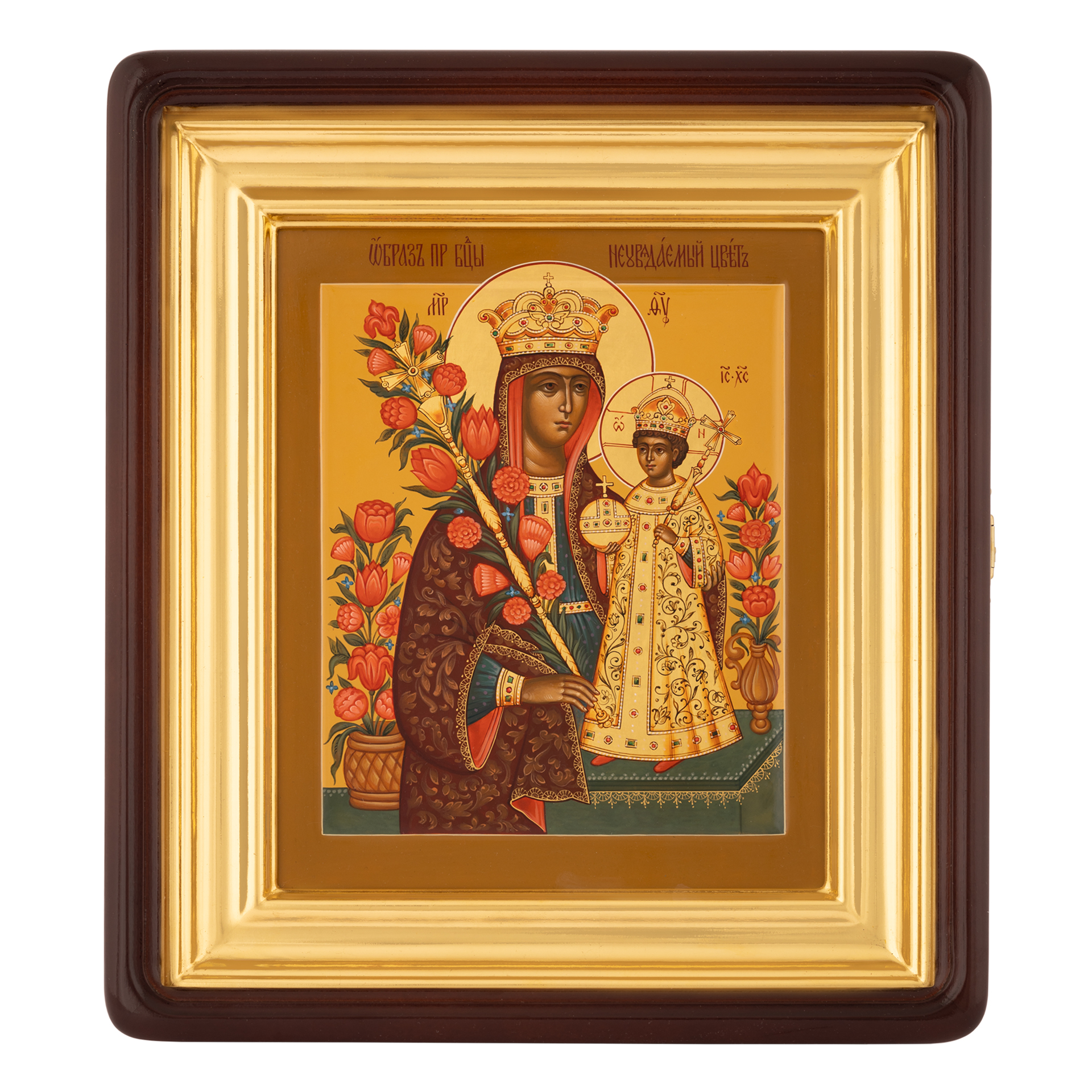 Икона живописная на доске в киоте 18х24 темпера, золоченый нимб, ковчег, киот №1 Неувядаемый Цвет, 04439