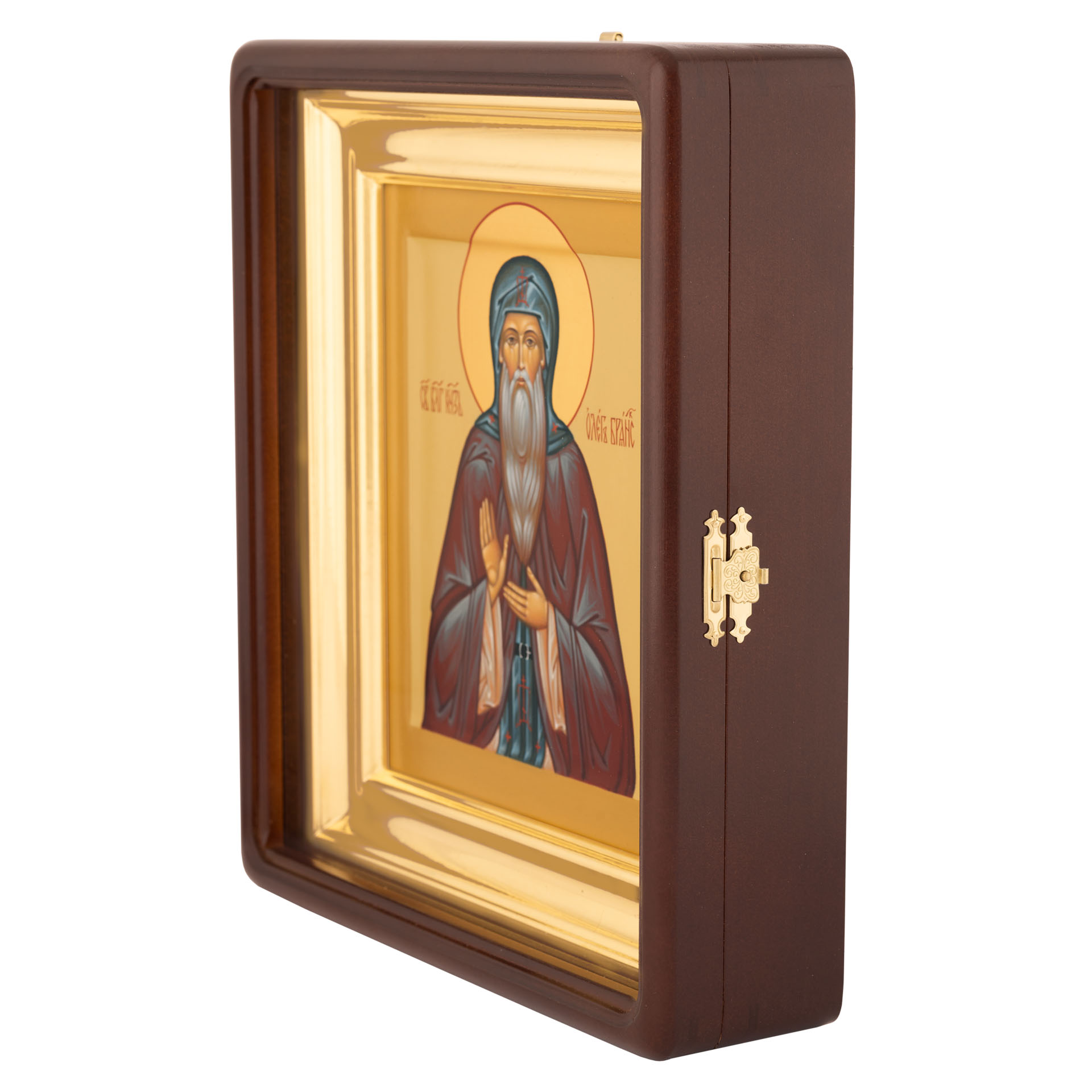 Икона живописная на доске в киоте 18х24 темпера, золоченый нимб, ковчег, киот №1 Олег Брянский, 02894