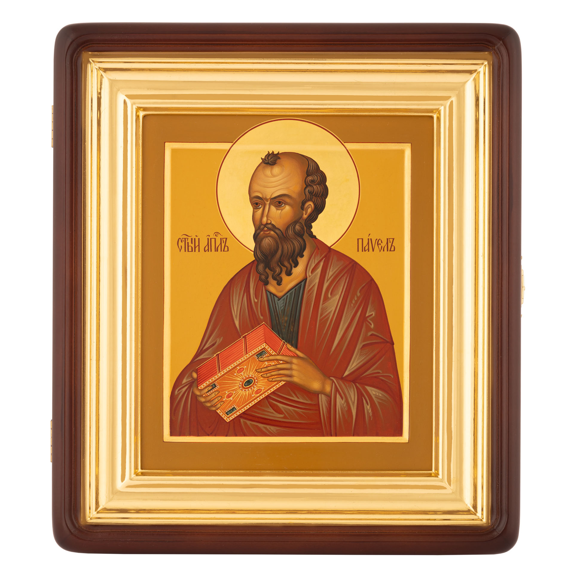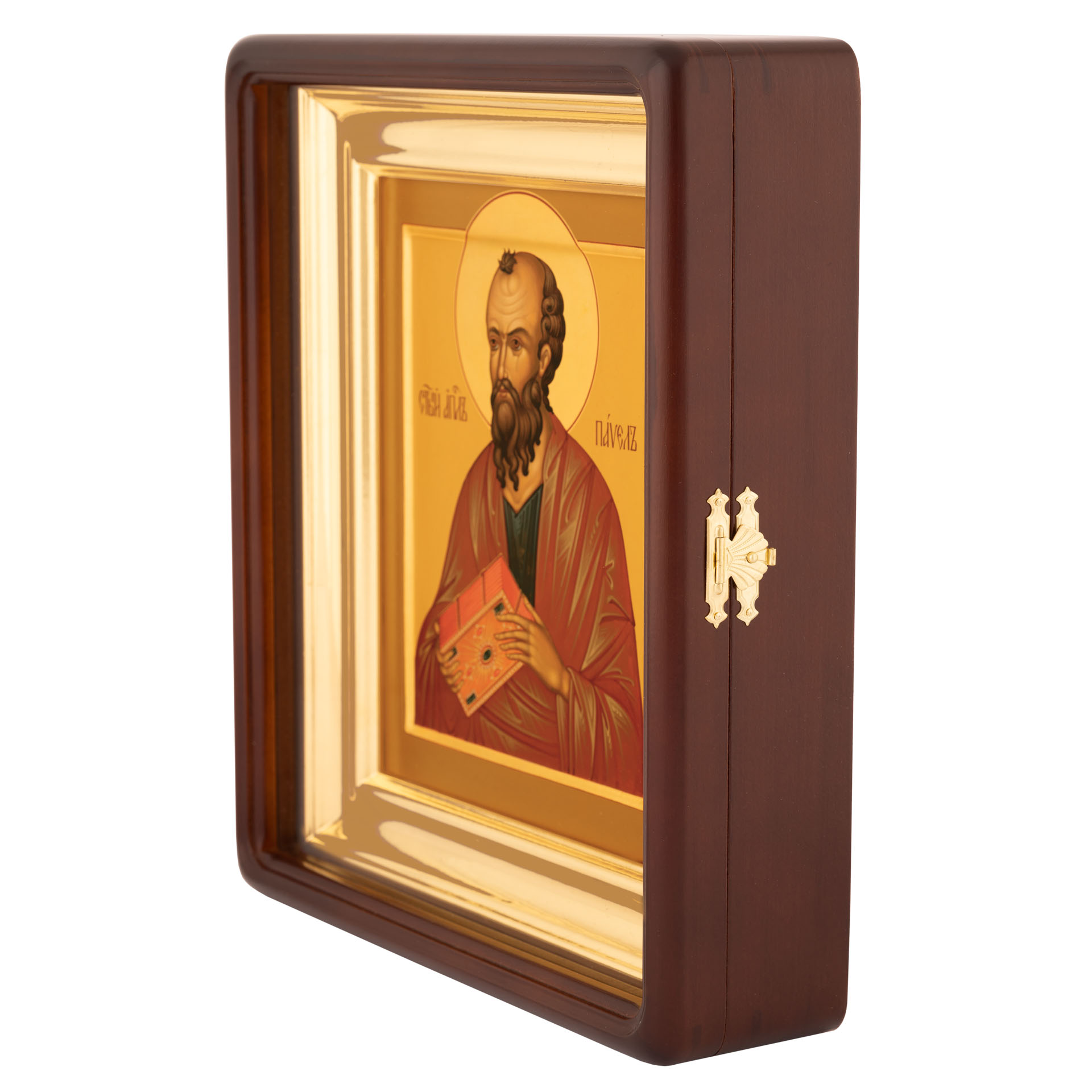 Икона живописная на доске в киоте 18х24 темпера, золоченый нимб, ковчег, киот №1 Павел, 01867