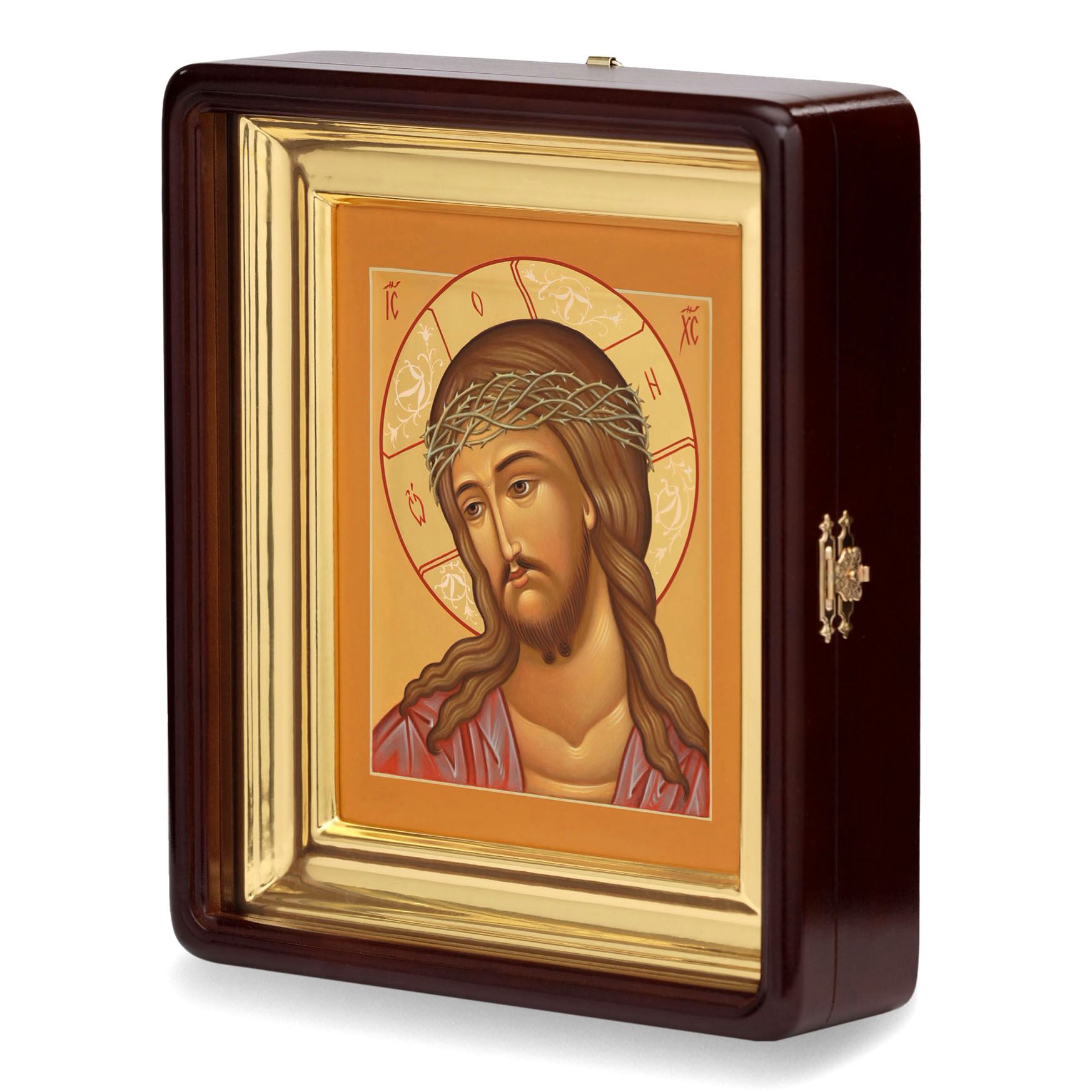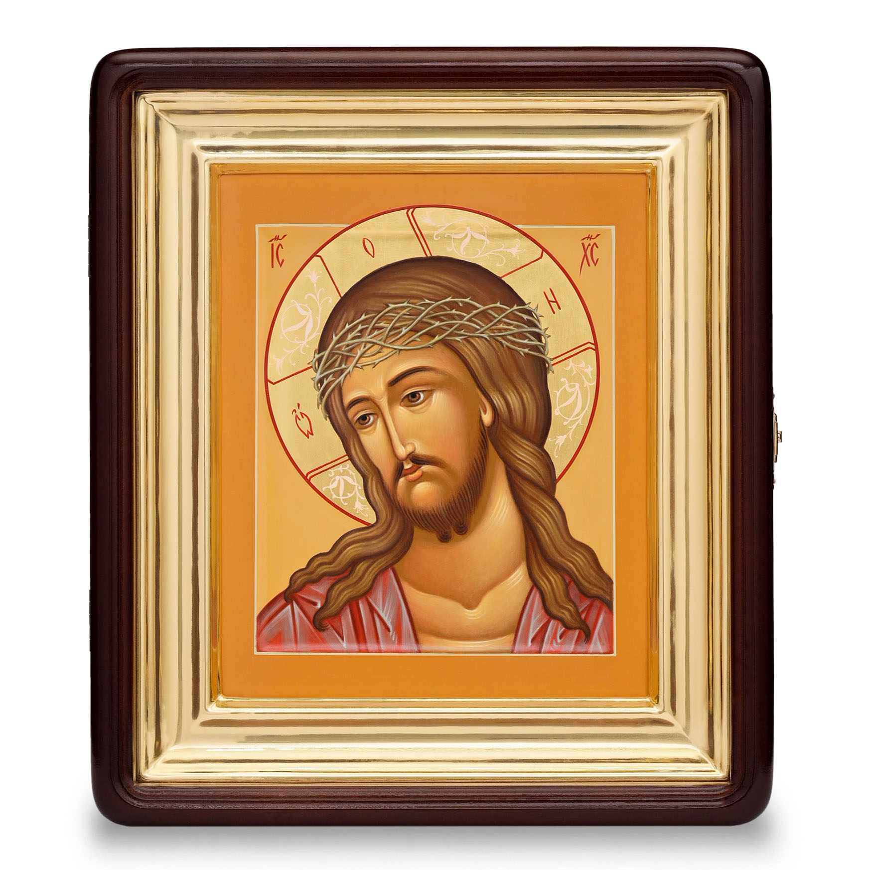 Икона живописная на доске в киоте 18х24 темпера, золоченый нимб, ковчег, киот №1 Спас в терновом венце