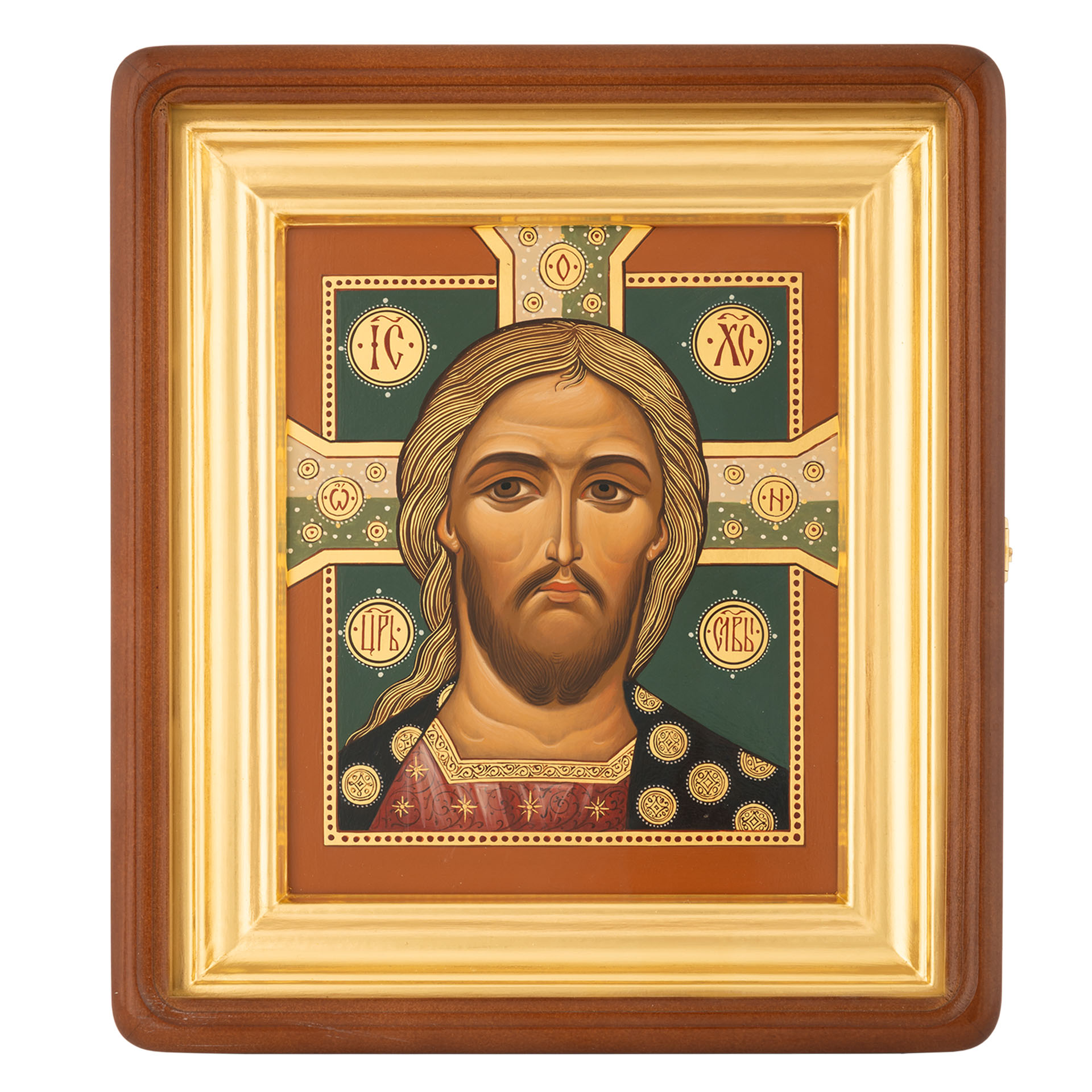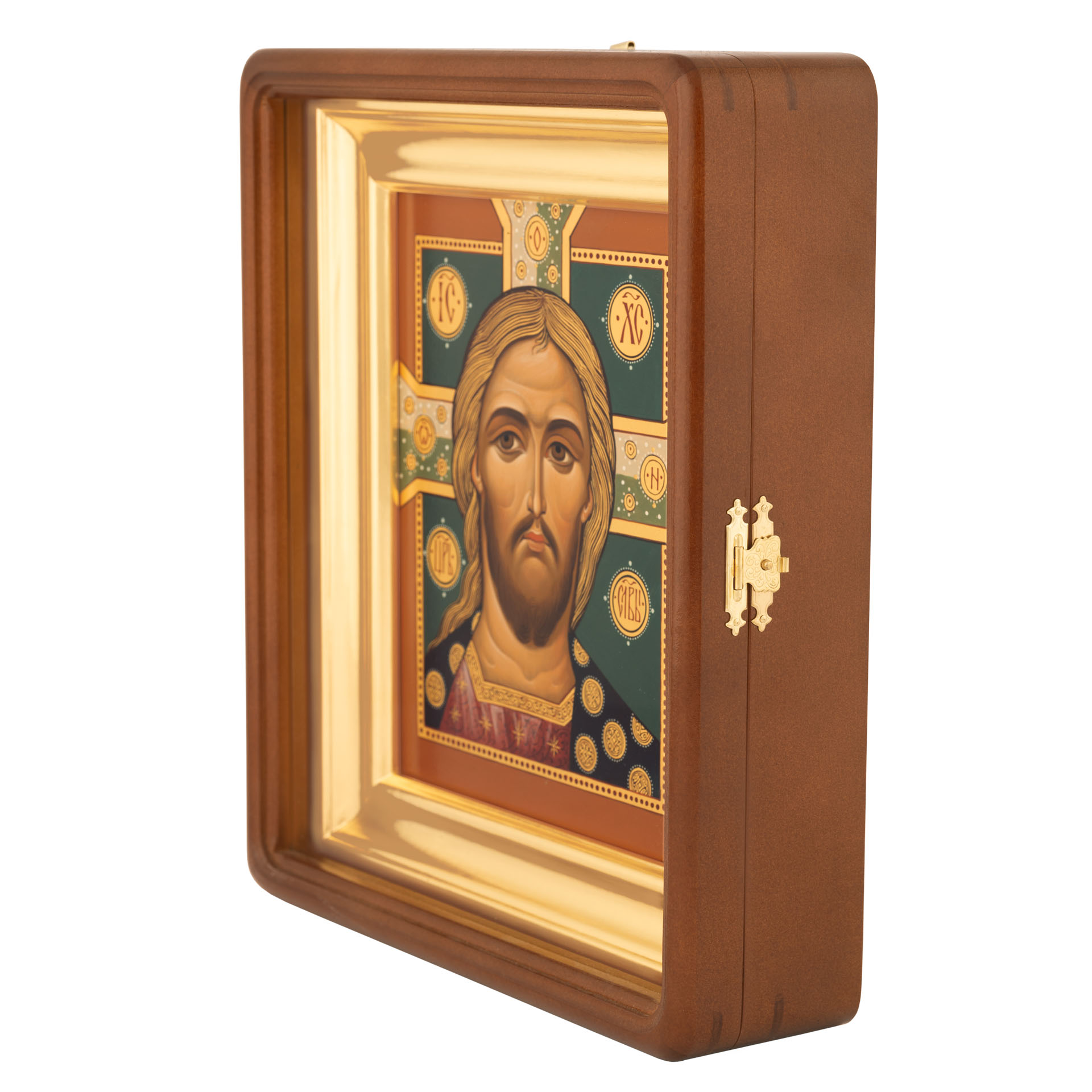 Икона живописная на доске в киоте 18х24 темпера, золоченый нимб, ковчег, киот №1 Спас-Златые власа, 03995