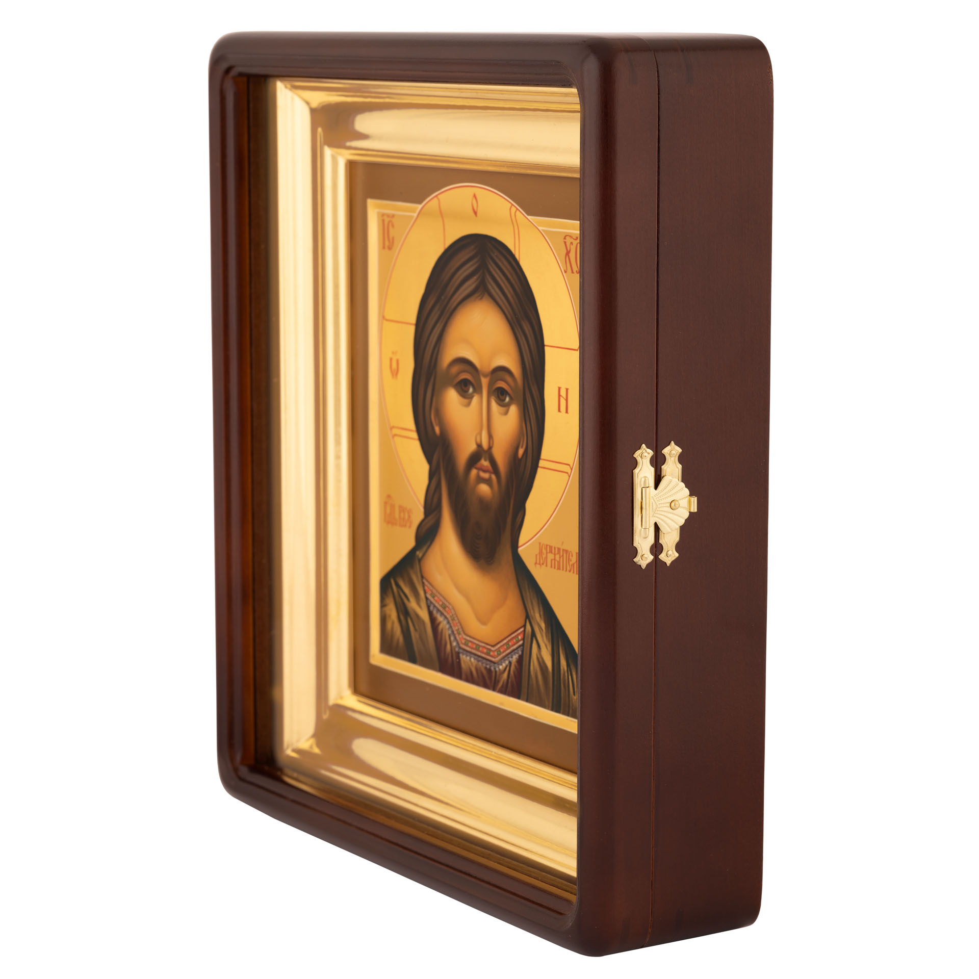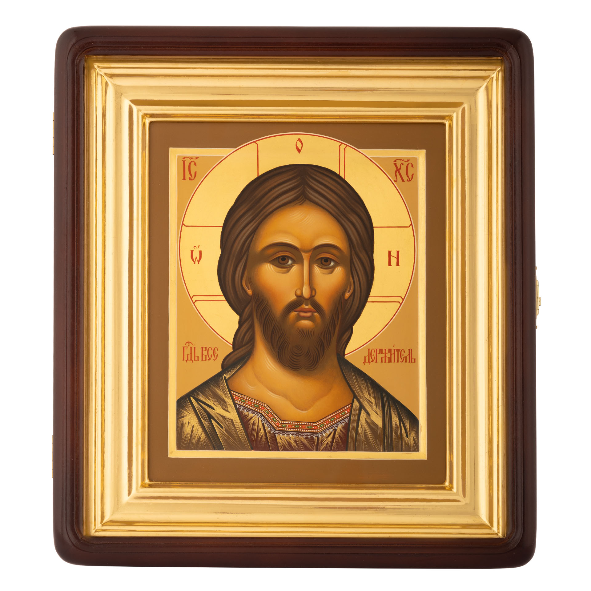 Икона живописная на доске в киоте 18х24 темпера, золоченый нимб, ковчег, киот №1 Спаситель, 01554