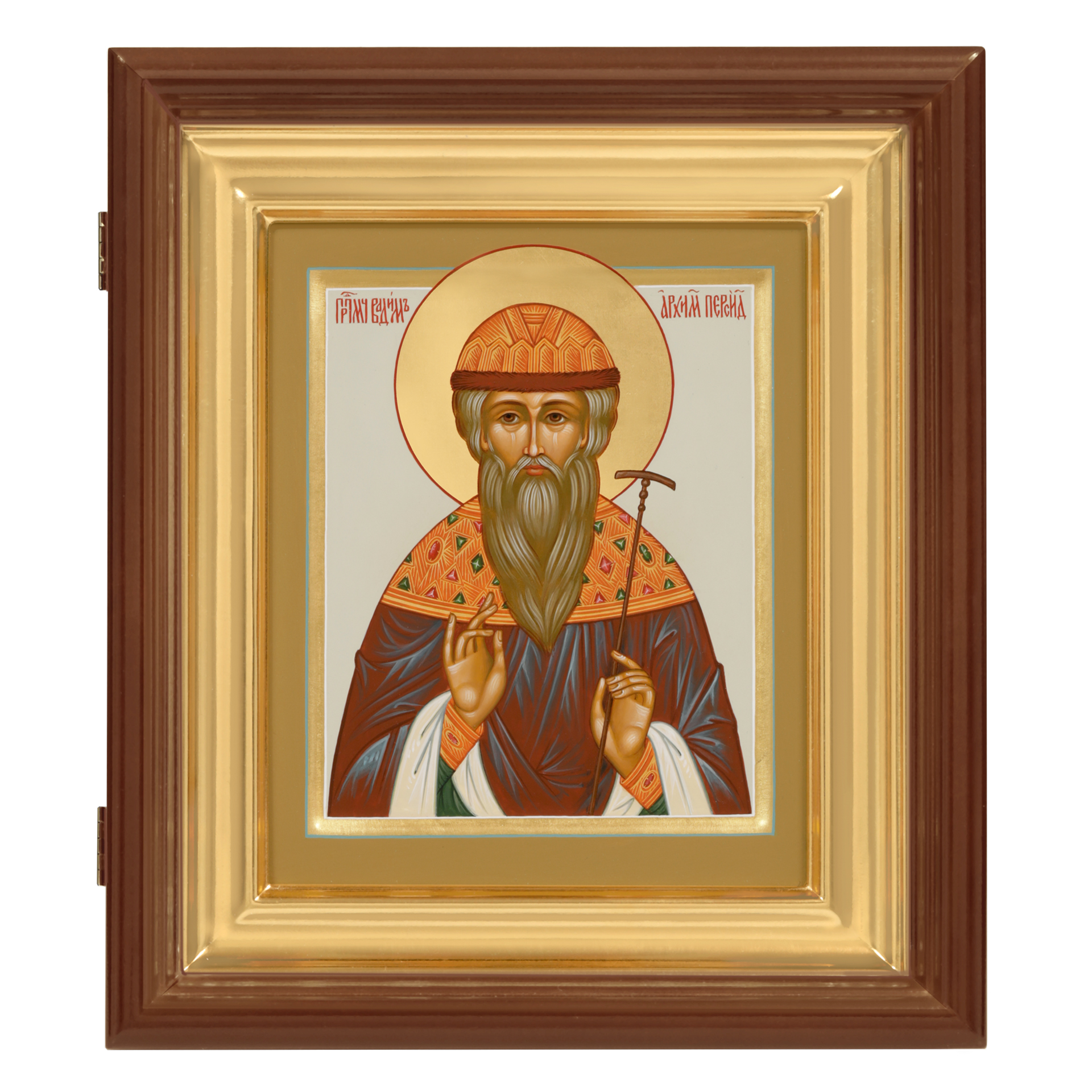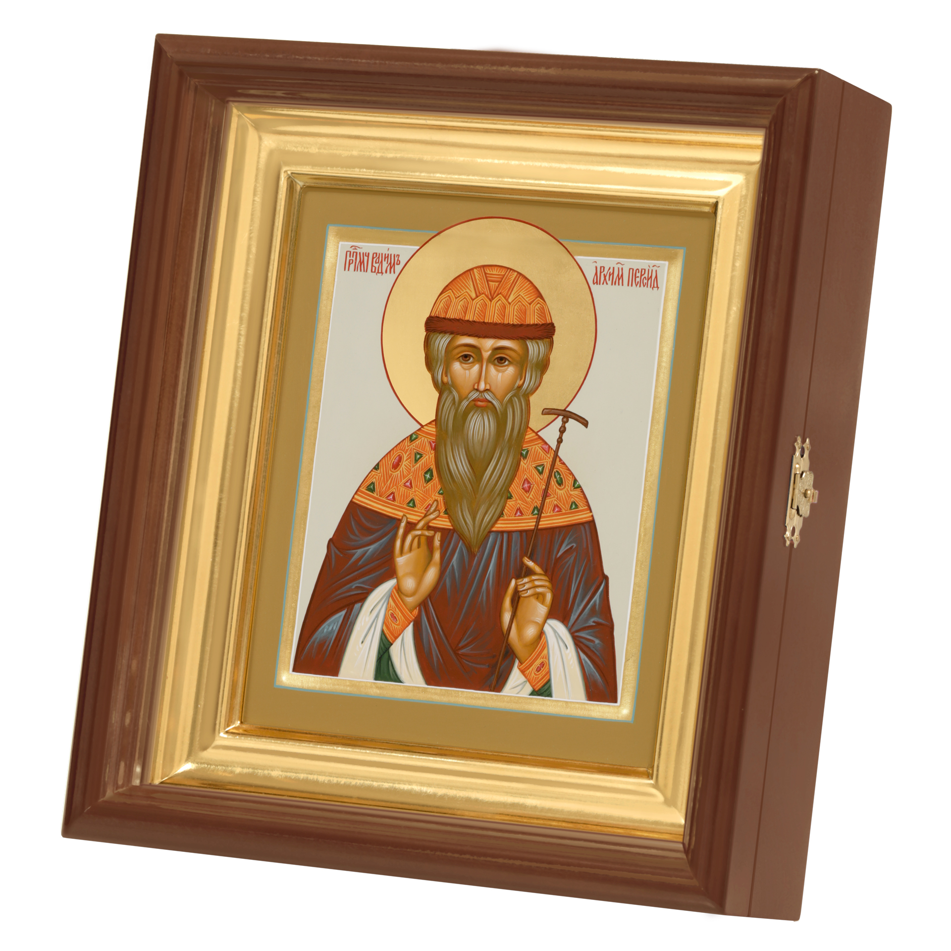 Икона живописная на доске в киоте 18х24 темпера, золоченый нимб, ковчег, киот №1 Вадим, 05428