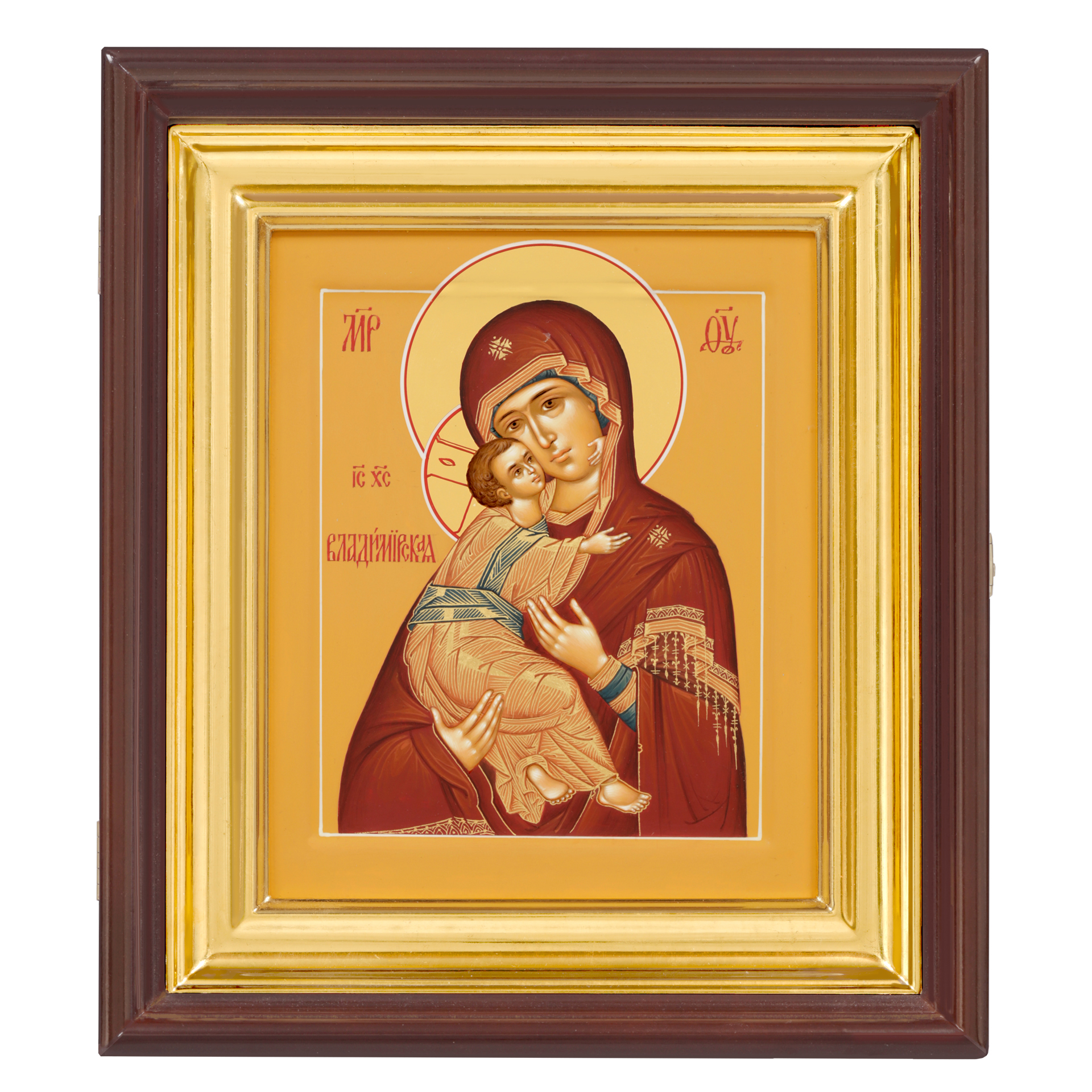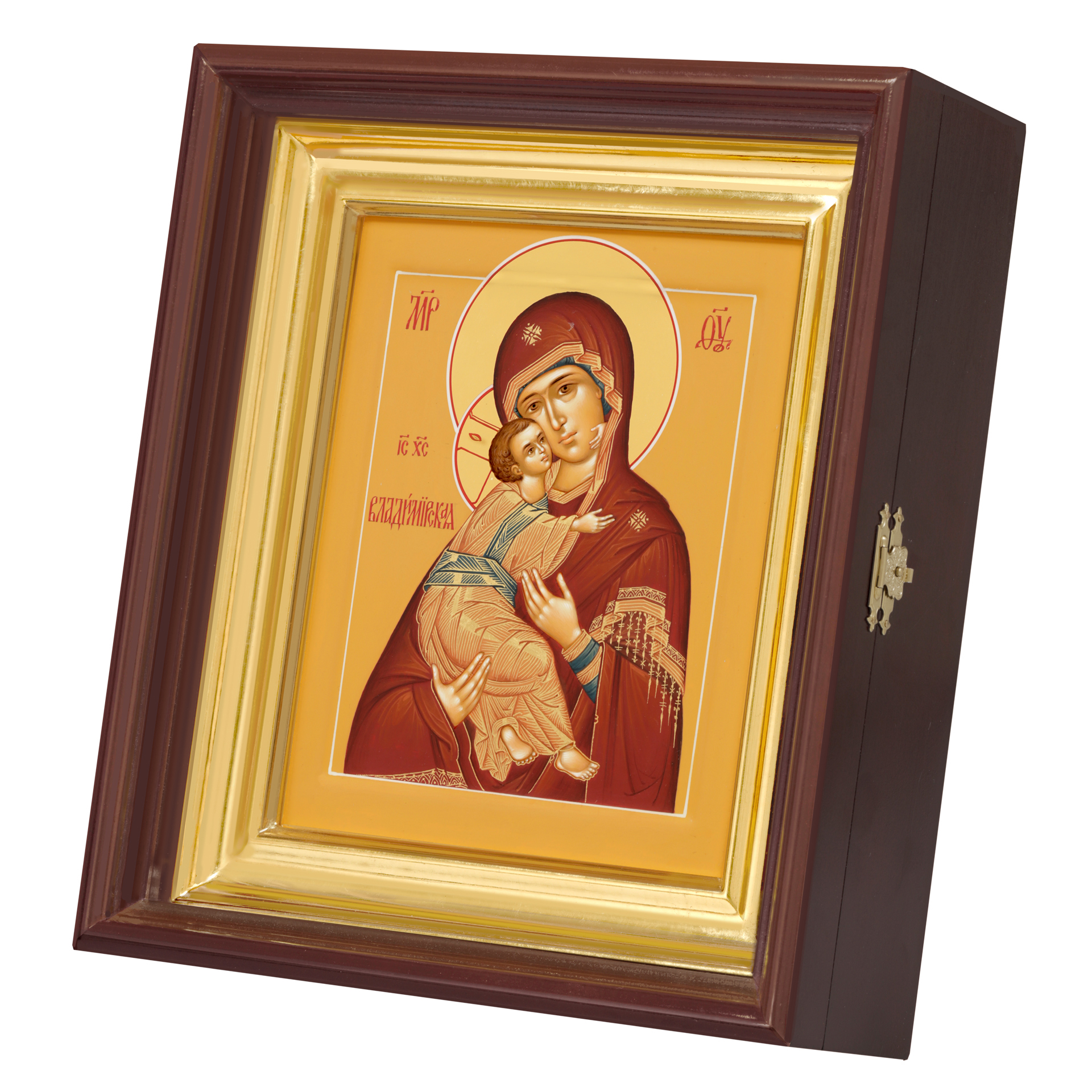 Икона живописная на доске в киоте 18х24 темпера, золоченый нимб, ковчег, киот №1 Владимирская БМ, 05027