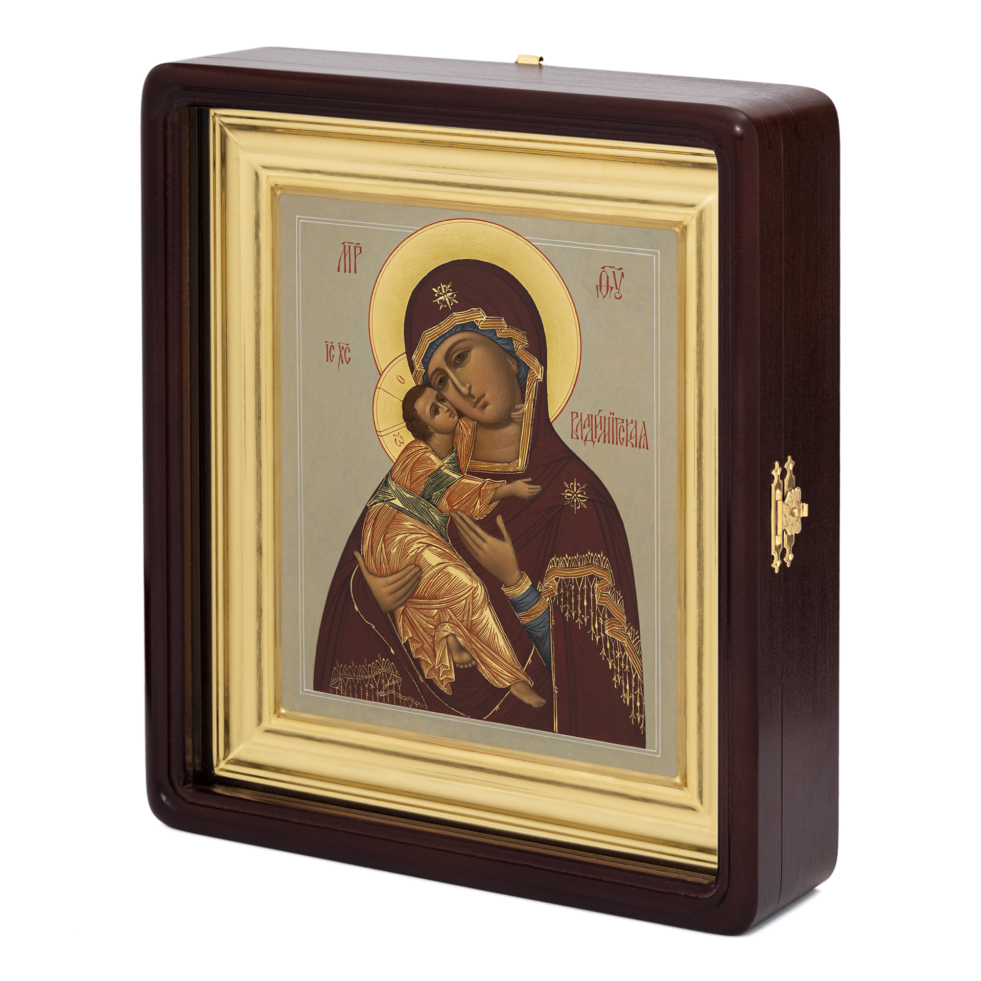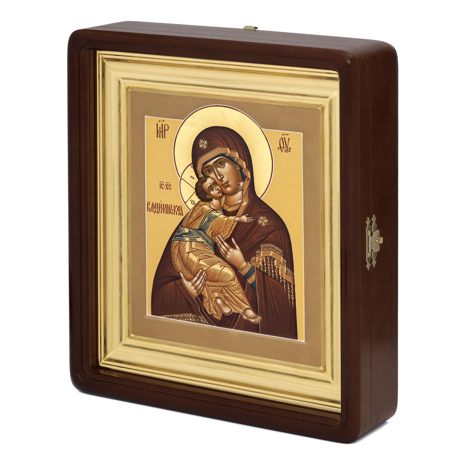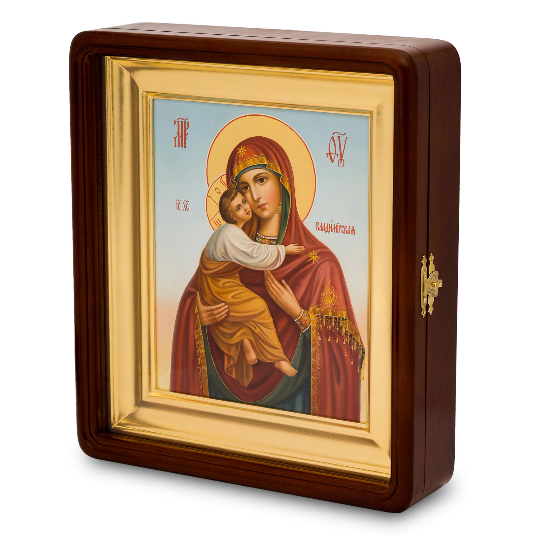 Икона живописная на доске в киоте 18х24 темпера, золоченый нимб, ковчег, киот №1 Владимирская БМ