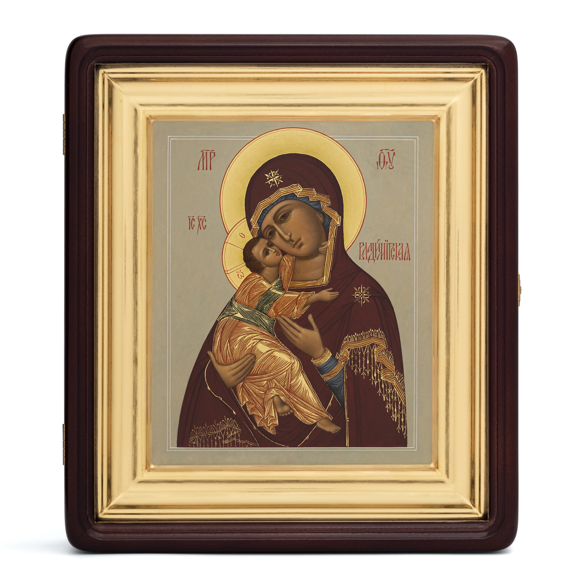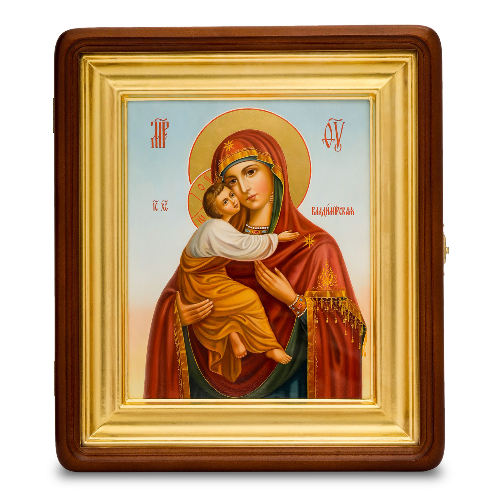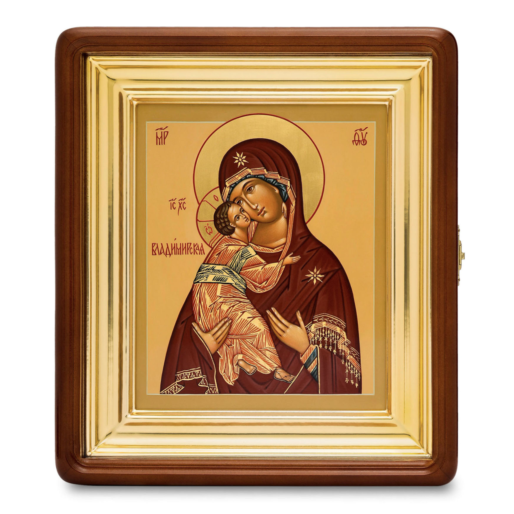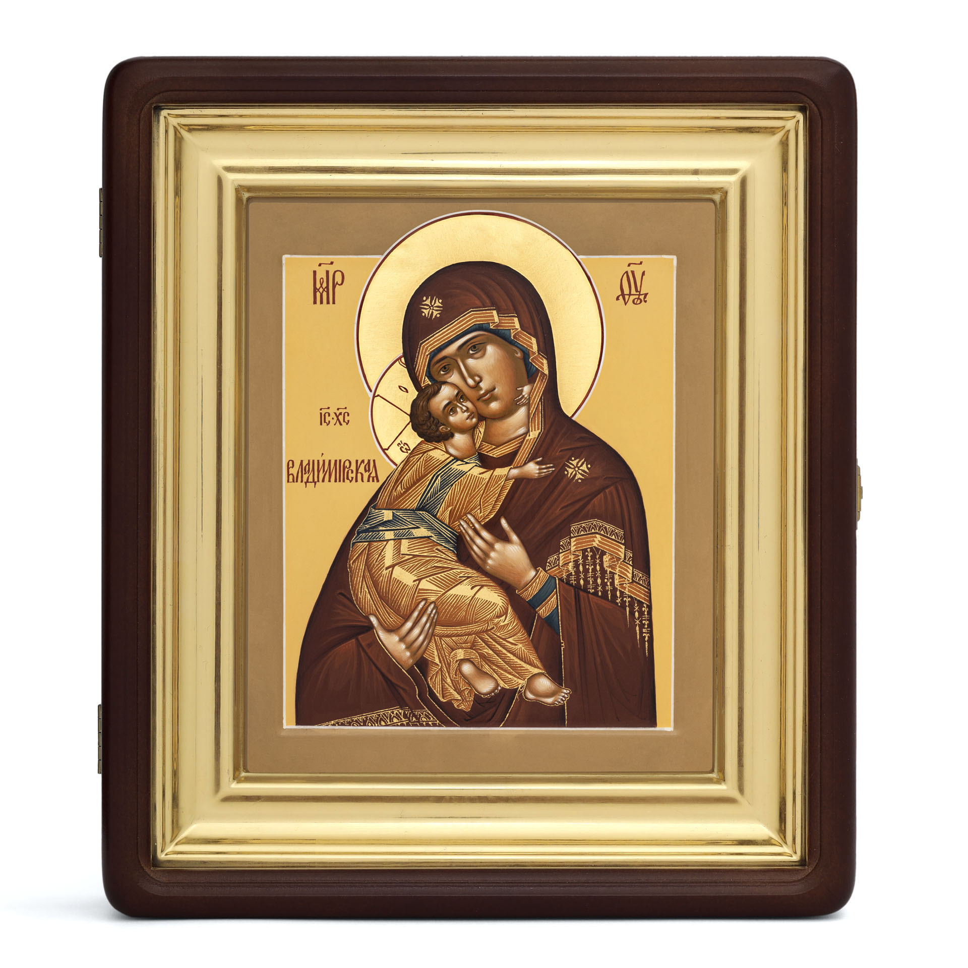 Икона живописная на доске в киоте 18х24 темпера, золоченый нимб, ковчег, киот №1 Владимирская БМ