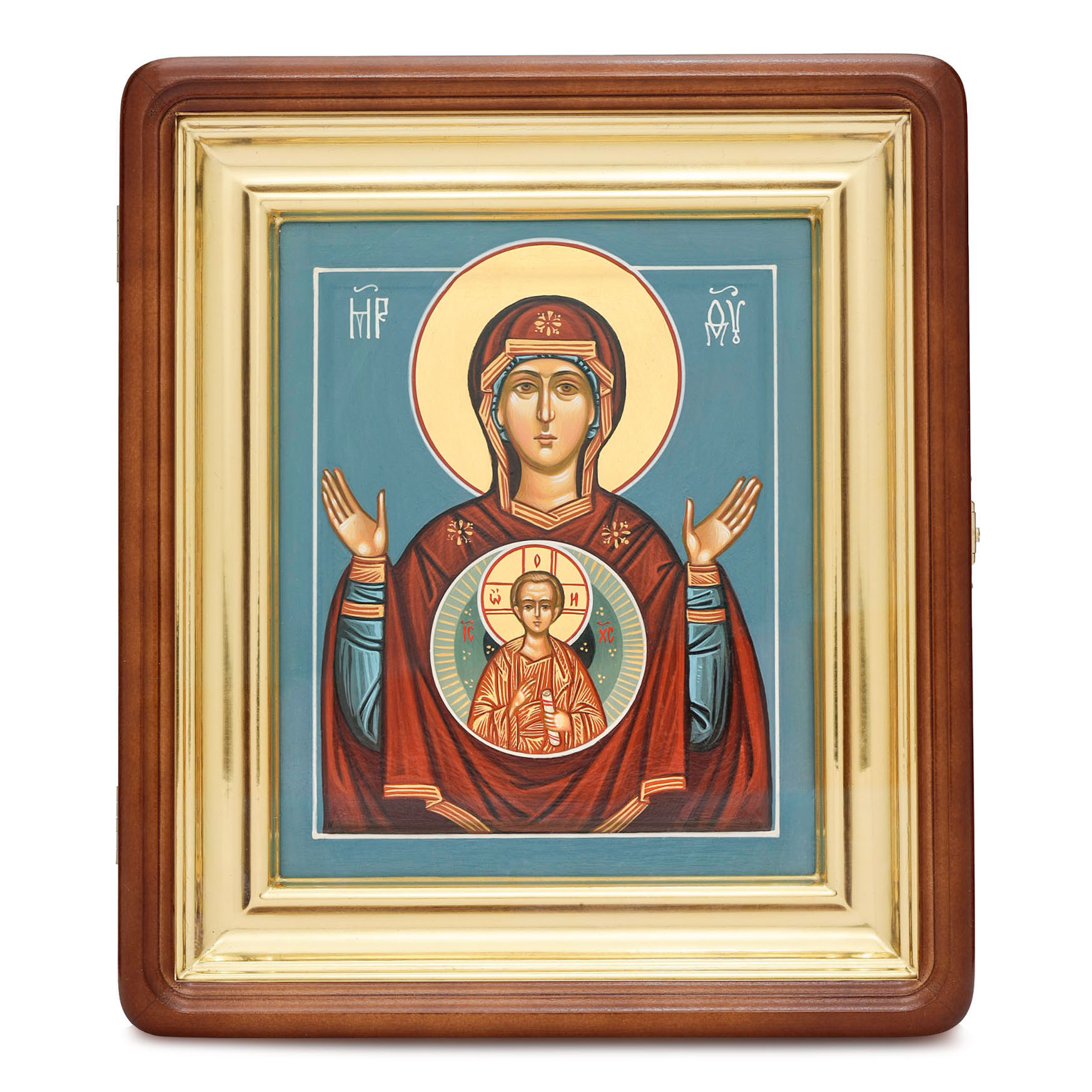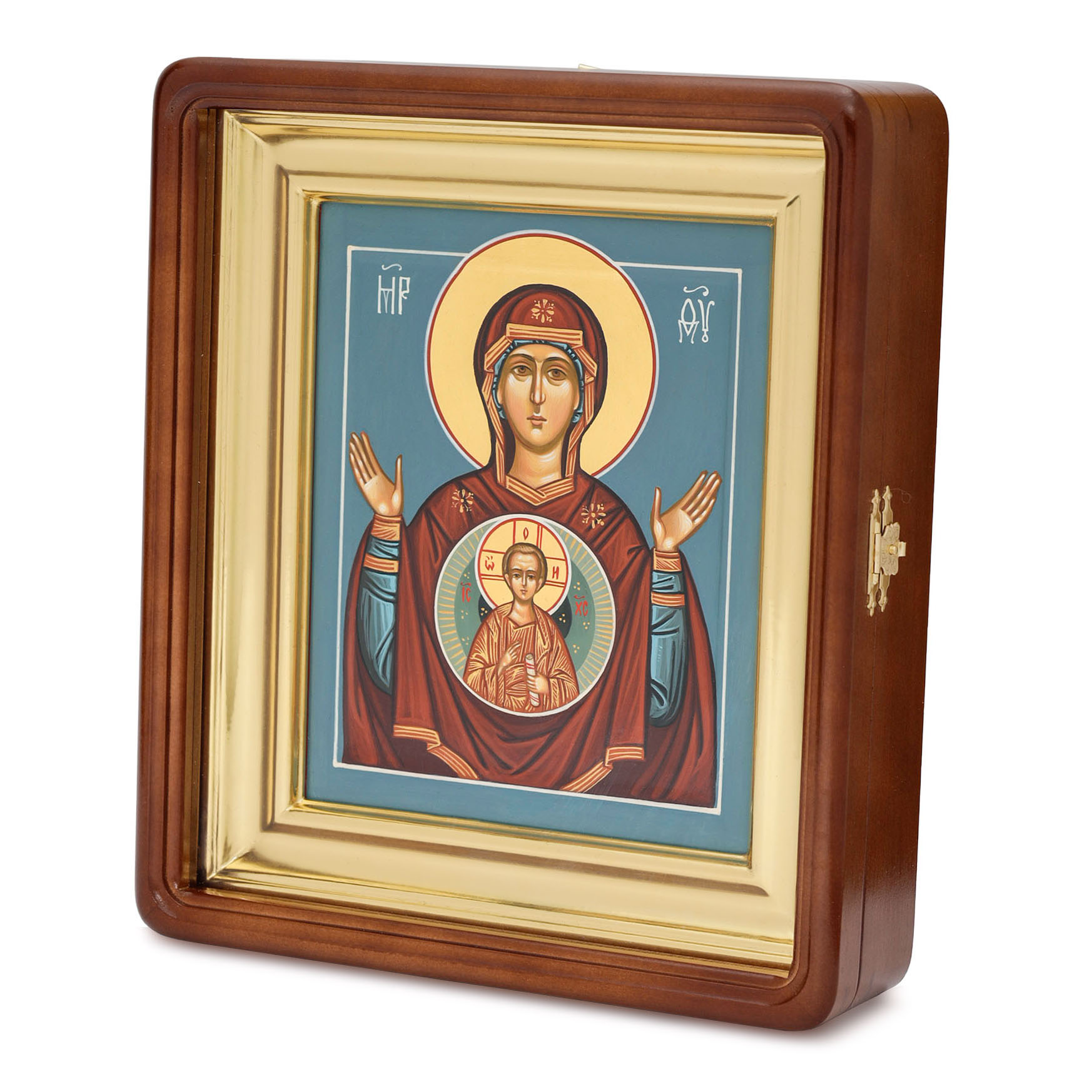 Икона живописная на доске в киоте 18х24 темпера, золоченый нимб, ковчег, киот №1 Знамение