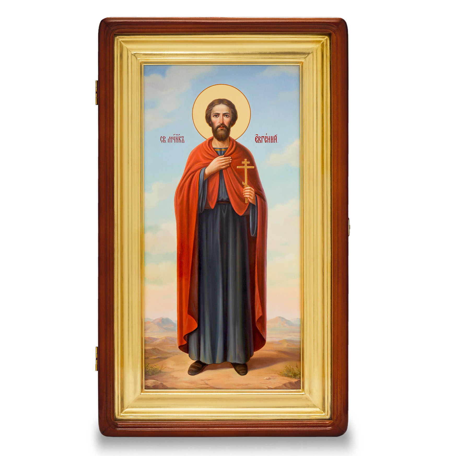 Икона живописная на доске в киоте 18х36 масло, киот №1 Евгений