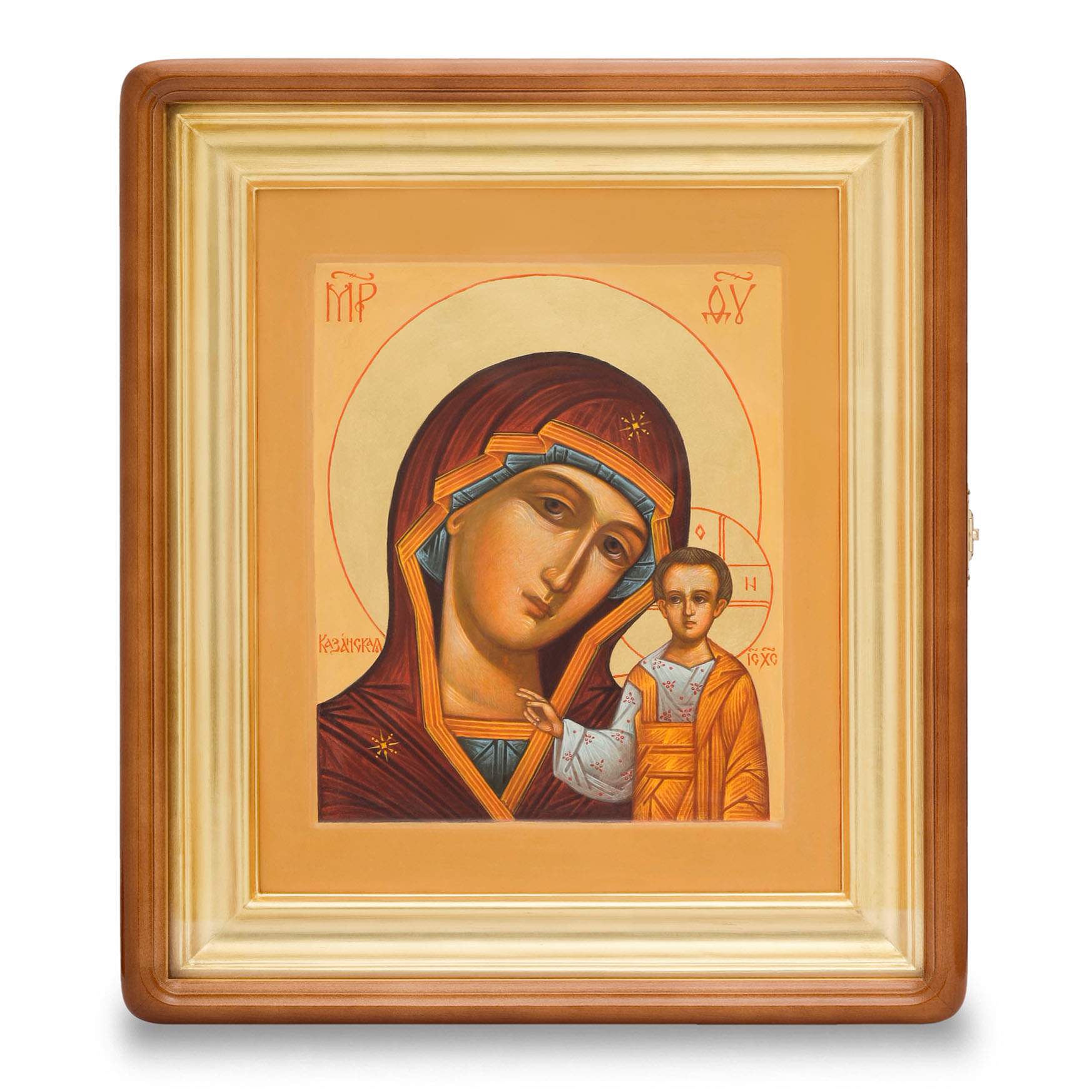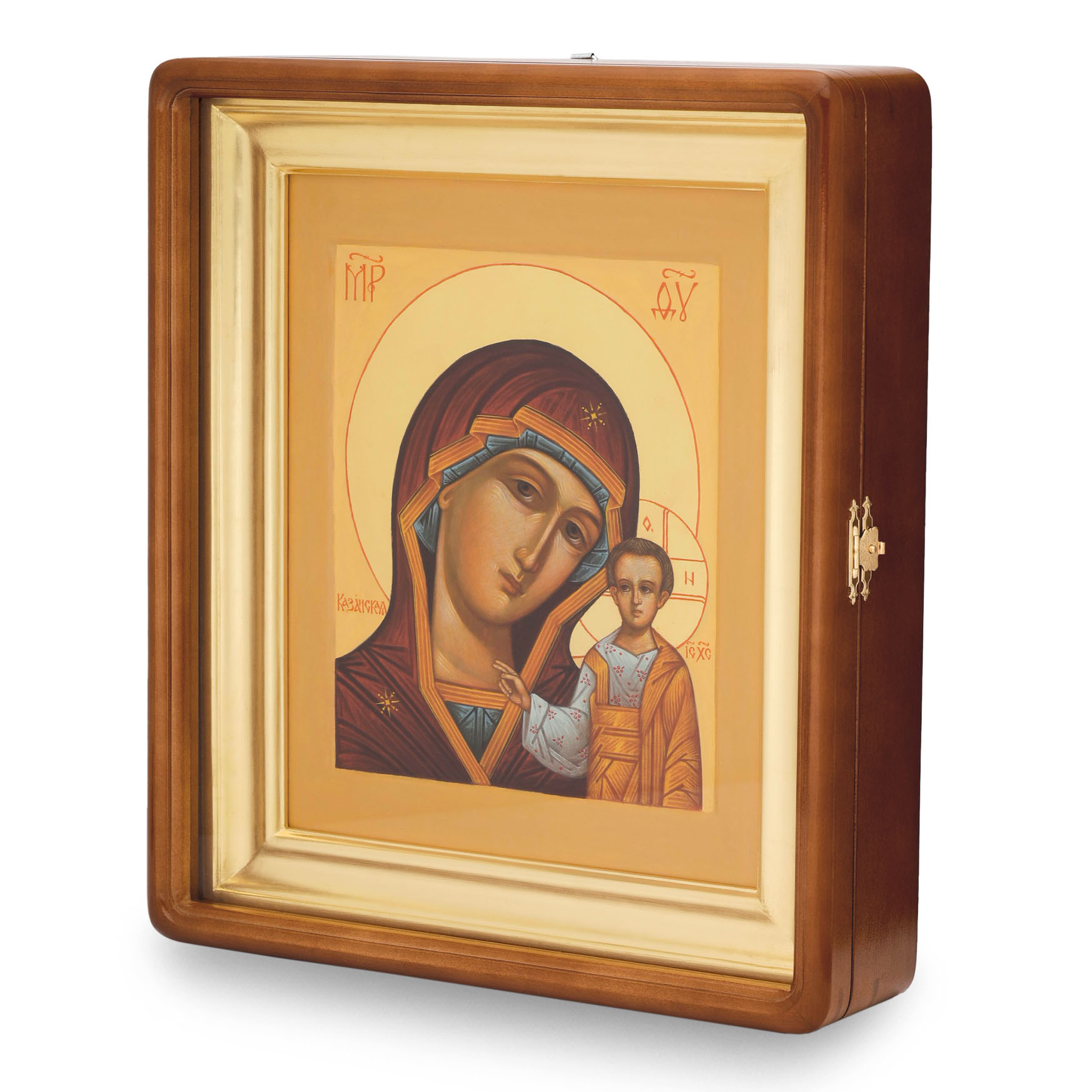 Икона живописная на доске в киоте 24х30 масло, золоченый нимб, киот №1 Казанская БМ