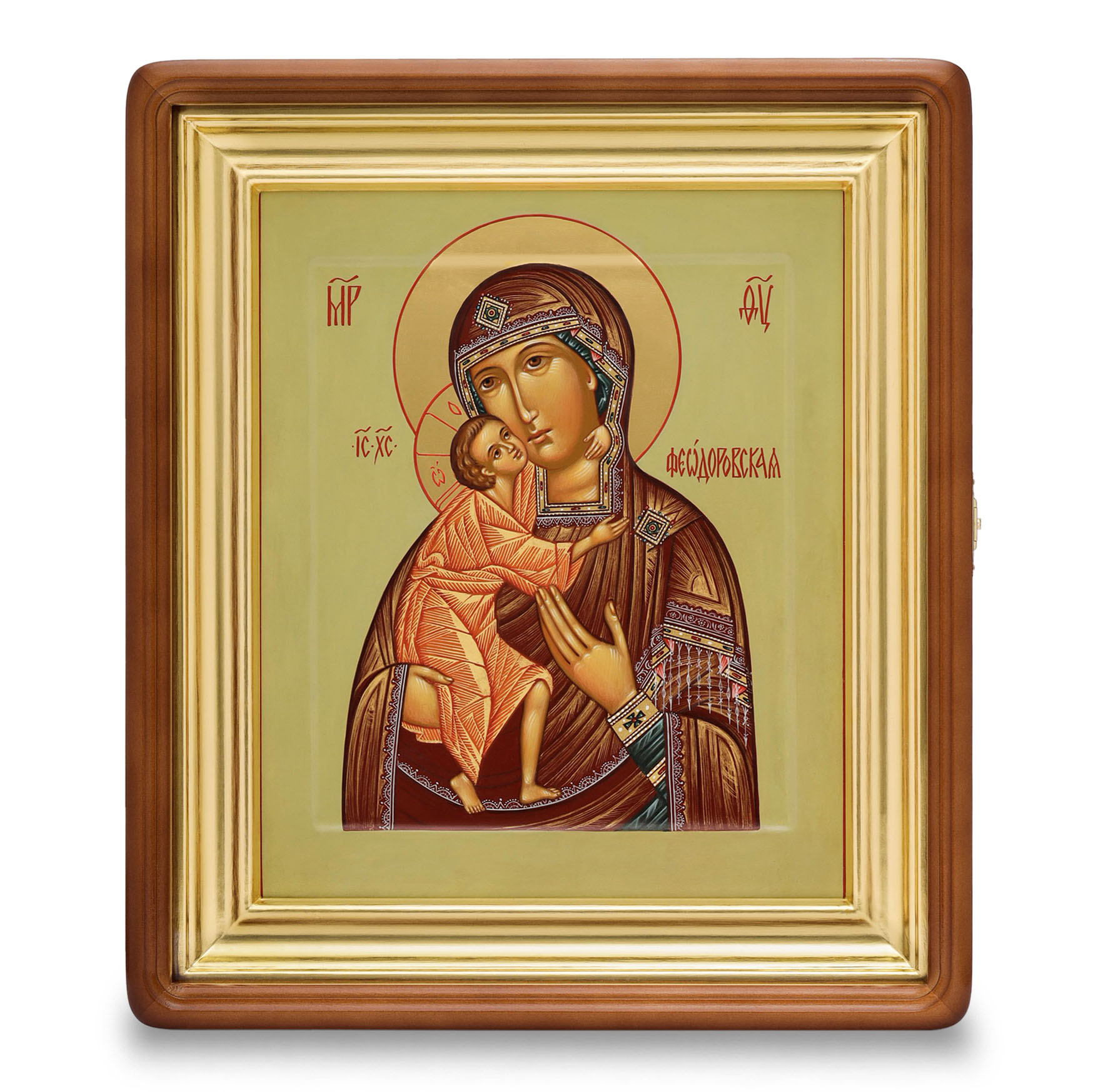 Икона живописная на доске в киоте 24х30 темпера, золоченый нимб, ковчег, киот №1 Феодоровская БМ