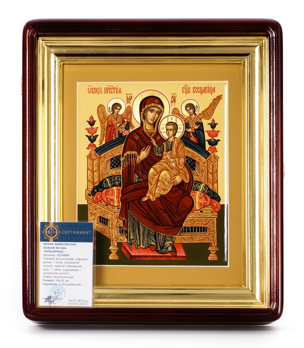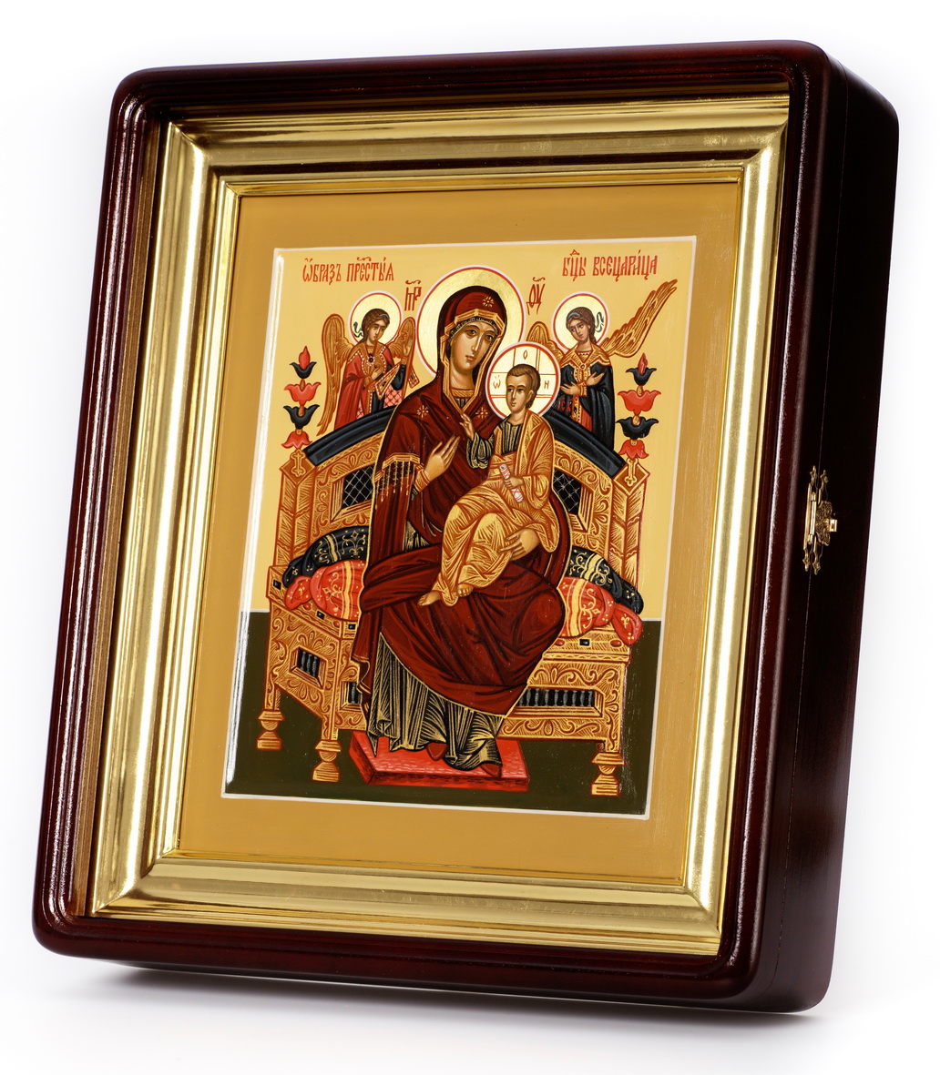 Икона живописная на доске в киоте 24х30 темпера, золоченый нимб, ковчег, киот №1 Всецарица