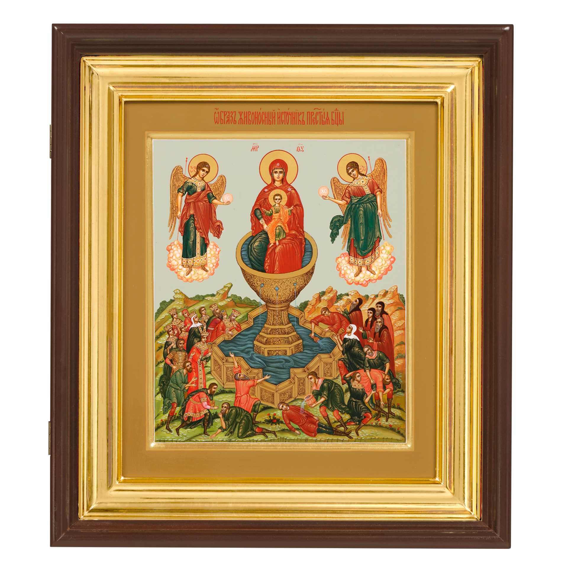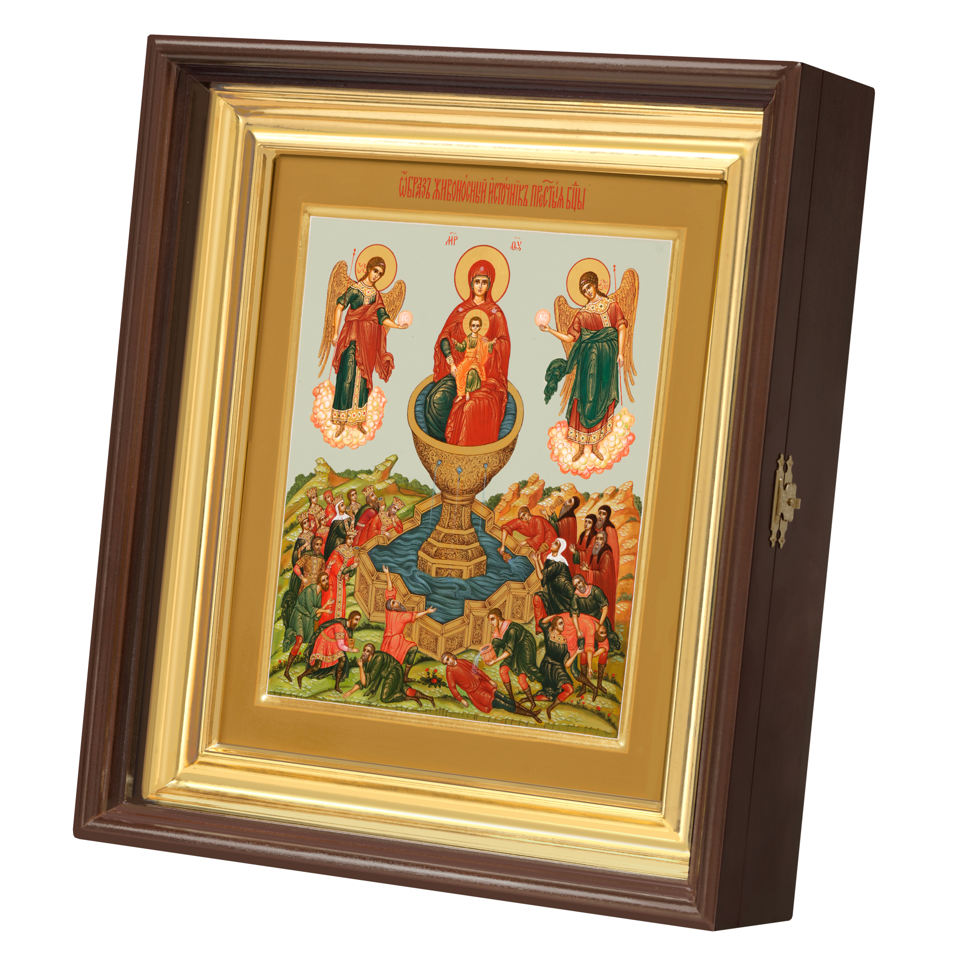 Икона живописная на доске в киоте 24х30 темпера, золоченый нимб, ковчег, киот №1 Живоносный Источник, 05477