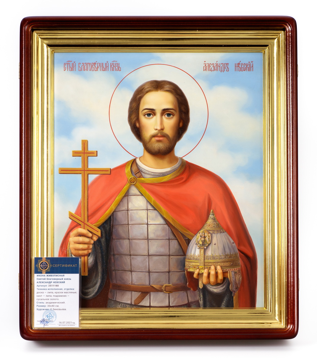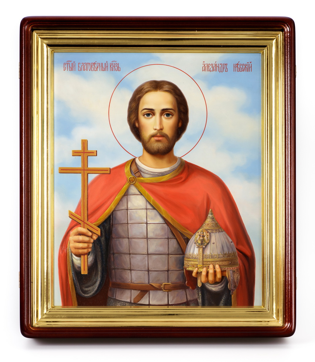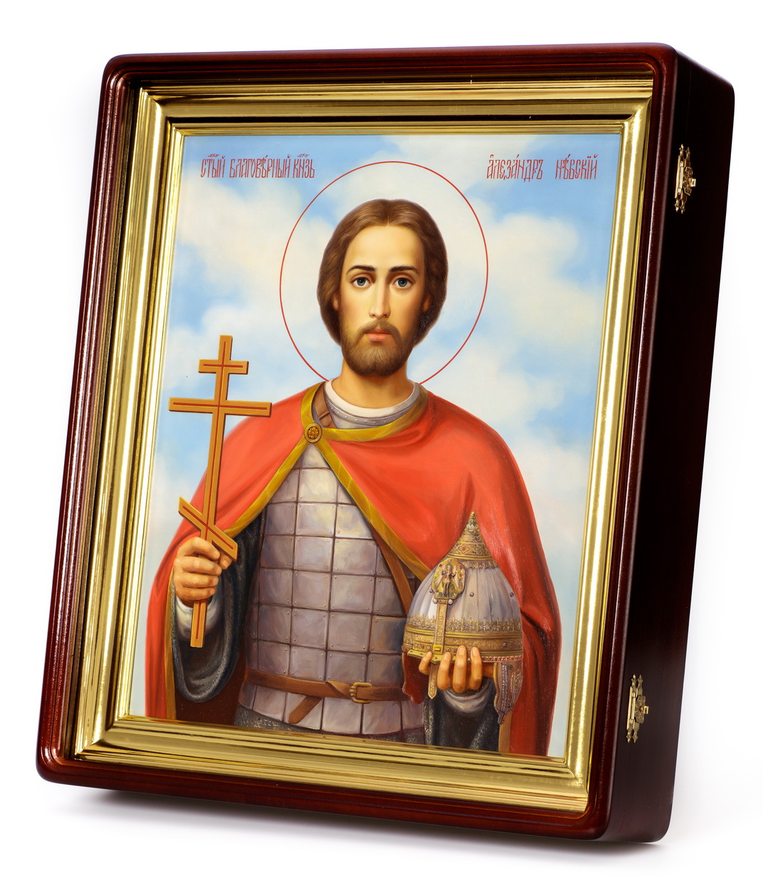 Икона живописная на доске в киоте 30х40 масло, киот №1 Александр Невский