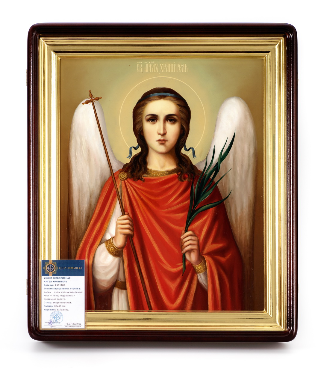 Икона живописная на доске в киоте 30х40 масло, киот №1 Ангел Хранитель