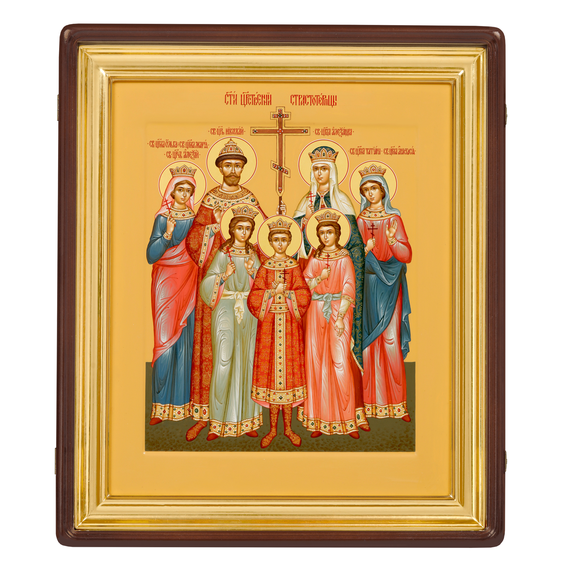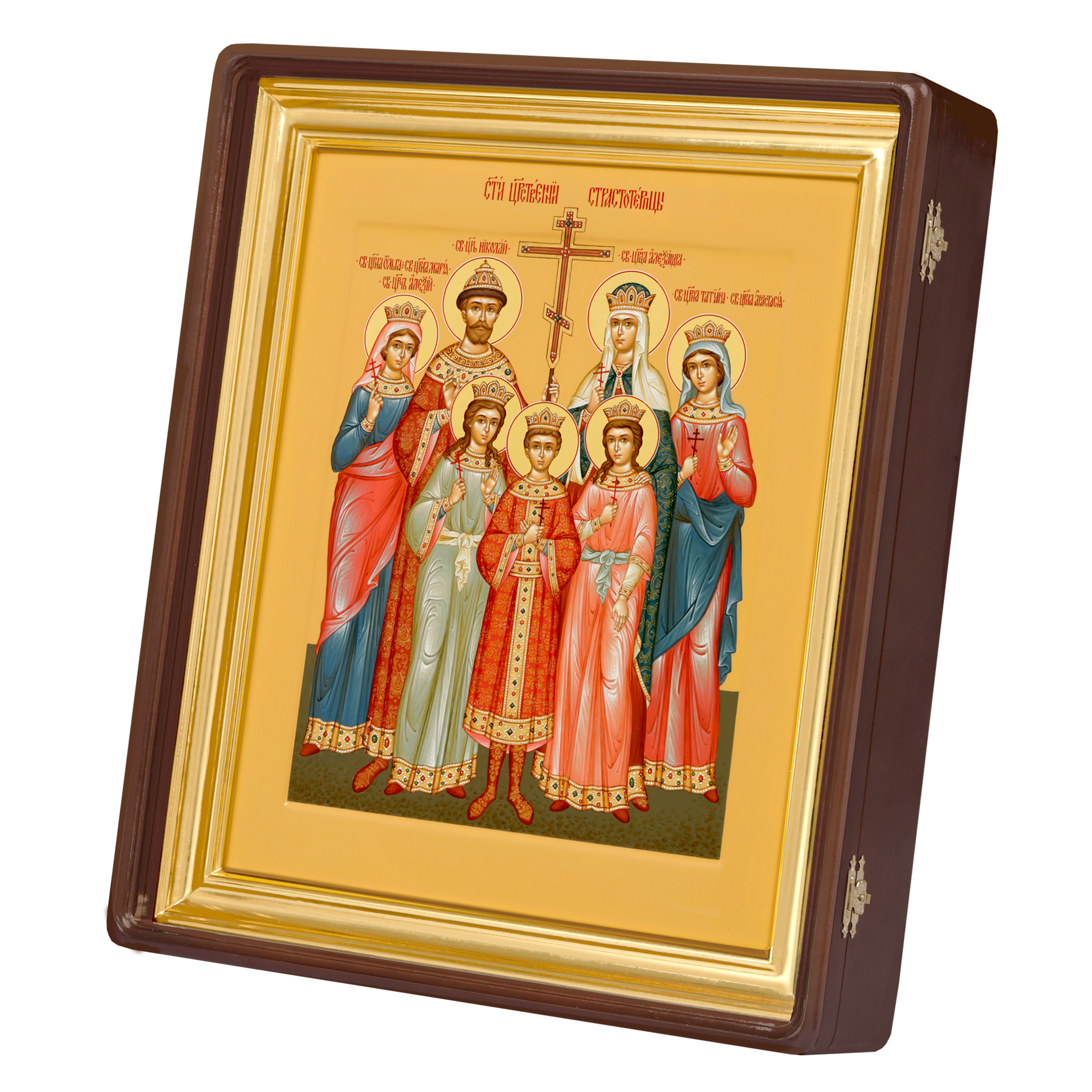 Икона живописная на доске в киоте 30х40 темпера, золоченый нимб, ковчег, киот №1 Царская семья, 05520