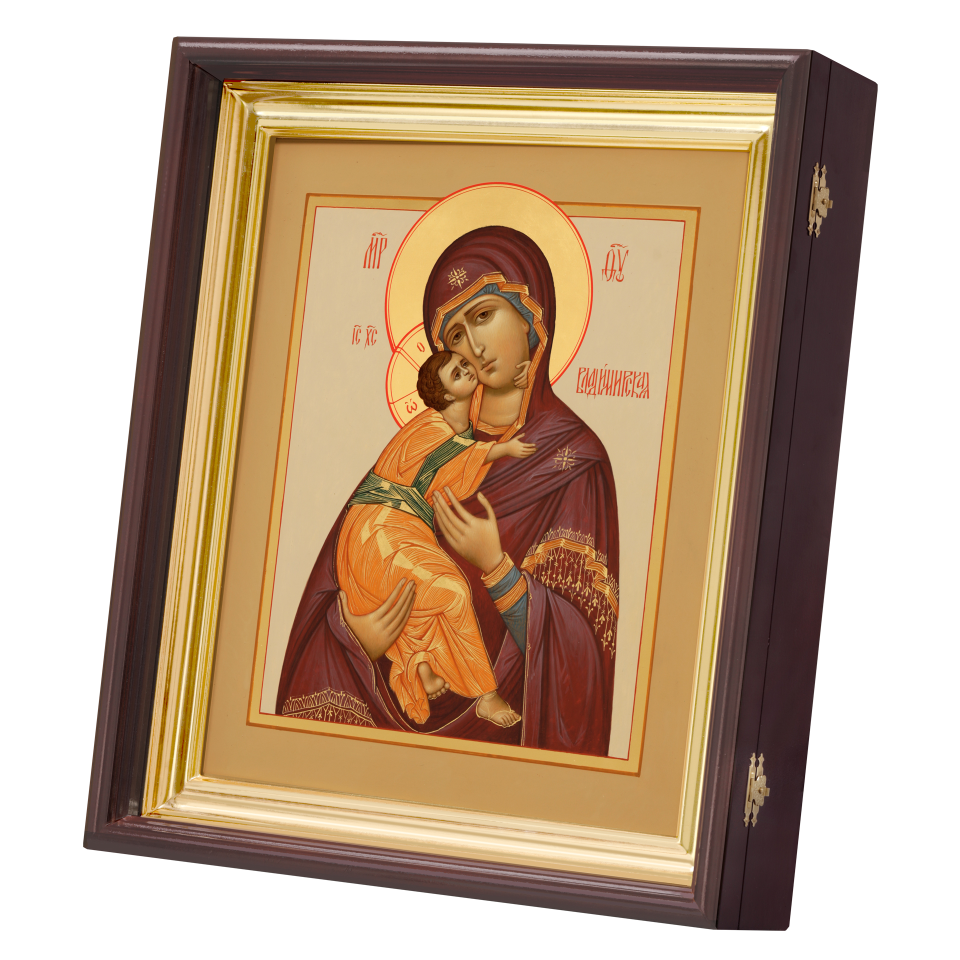 Икона живописная на доске в киоте 30х40 темпера, золоченый нимб, ковчег, киот №1 Владимирская БМ, 05172